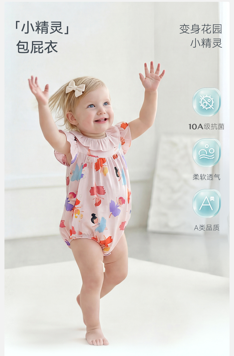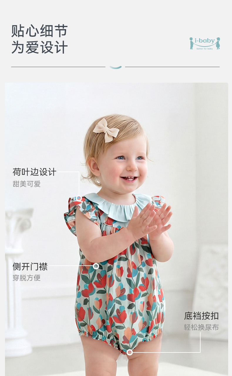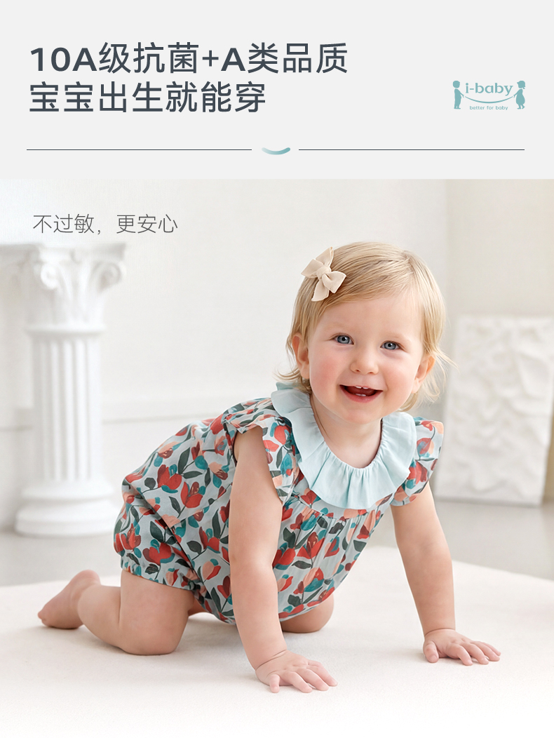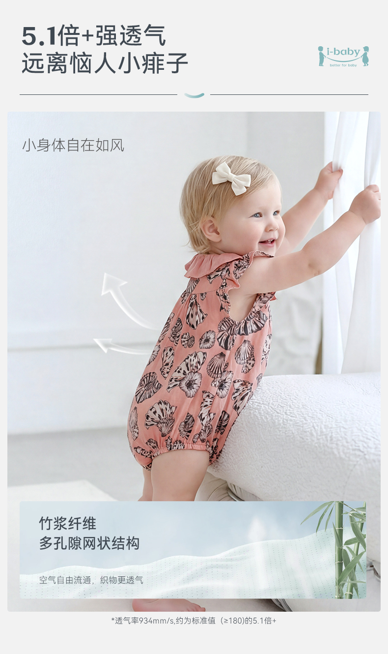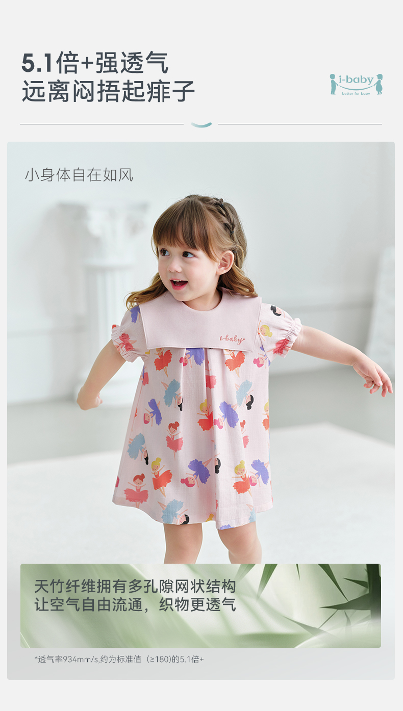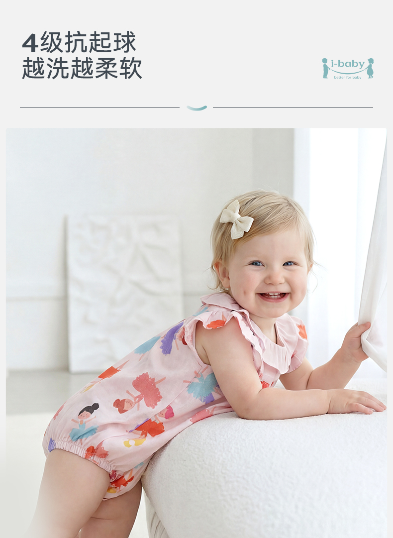 【2026春夏新品】ibaby×outlast太空科技恒温纱布圆领荷叶边包屁衣/纱布小公主裙