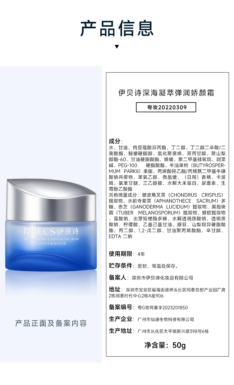【官方】伊贝诗深海凝萃弹润娇颜霜补水保湿滋润修护面霜官方正品女