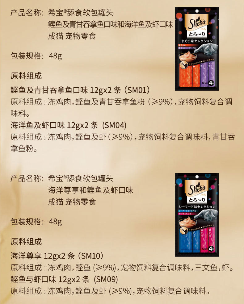 sheba进口希宝湿粮包软包60包猫咪零食成猫幼猫肉粒妙鲜包猫条100支