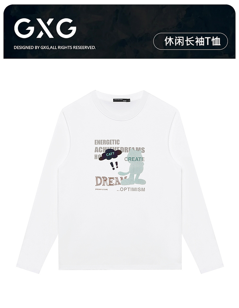 GXG男装【100%棉】25秋季趣味猫咪七彩百搭圆领男式休闲长袖T恤K&C