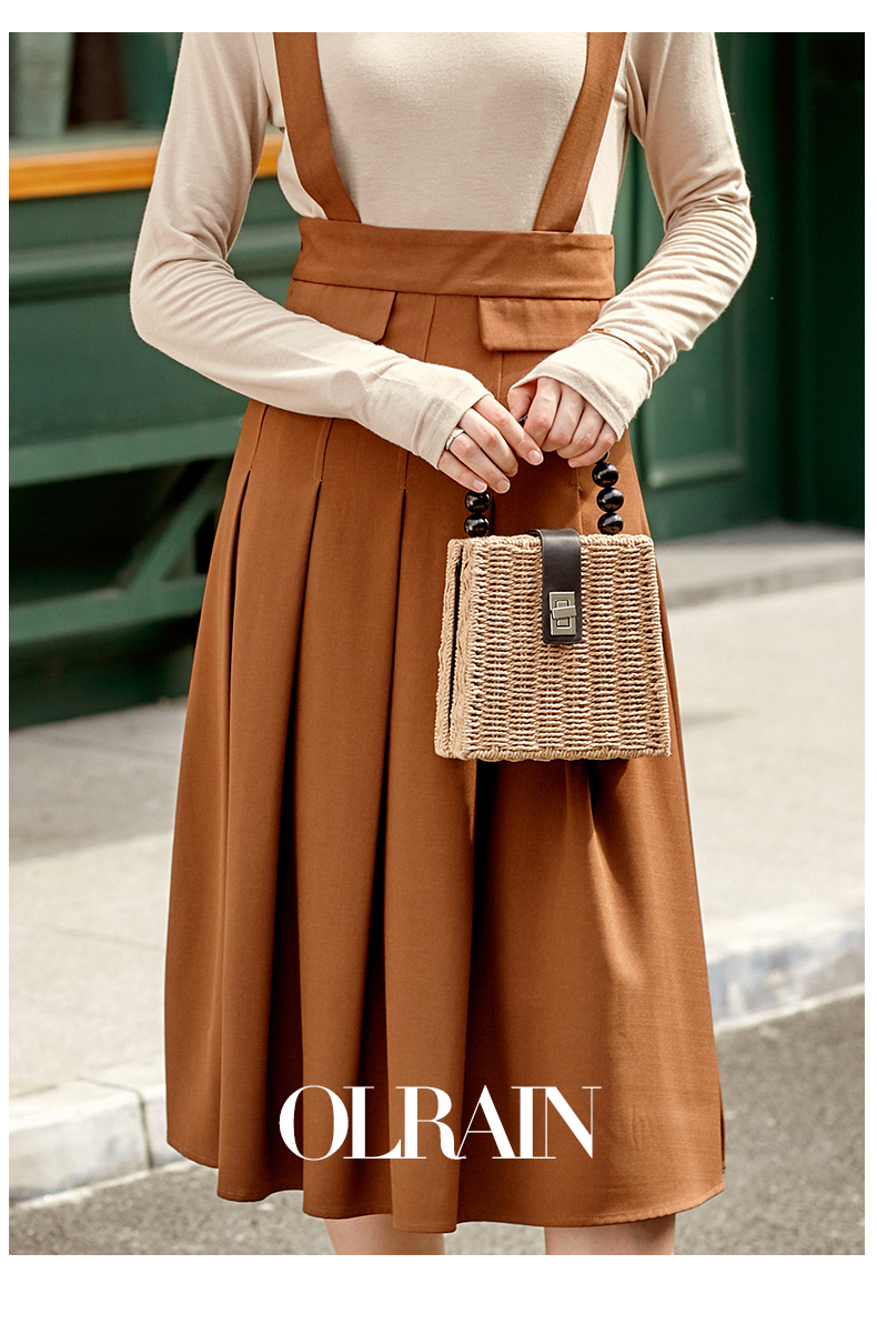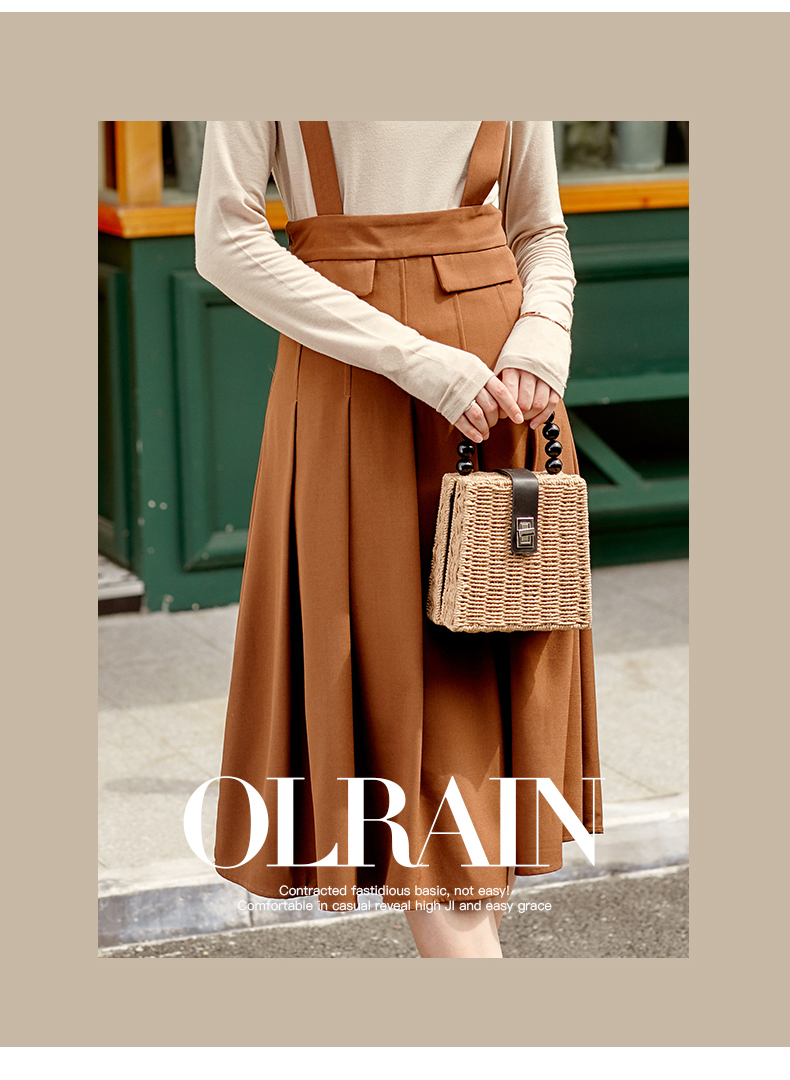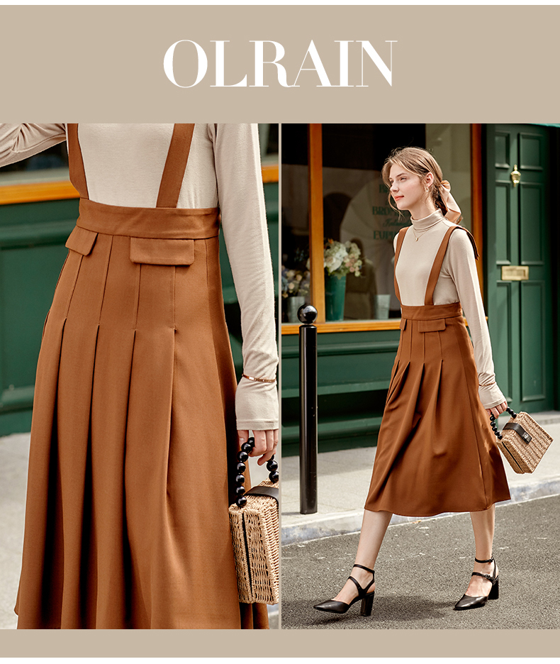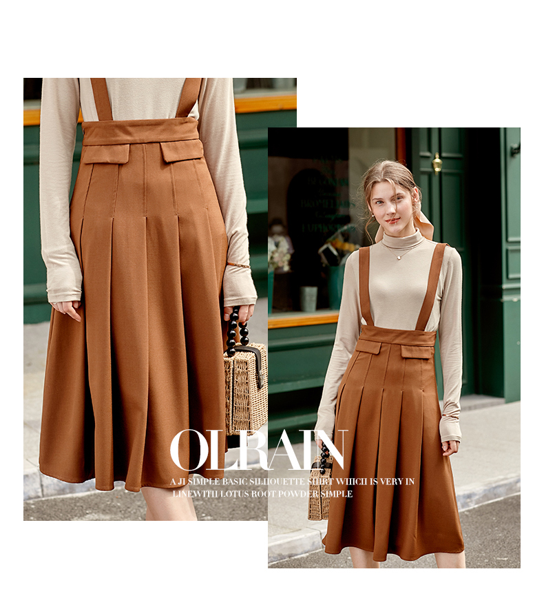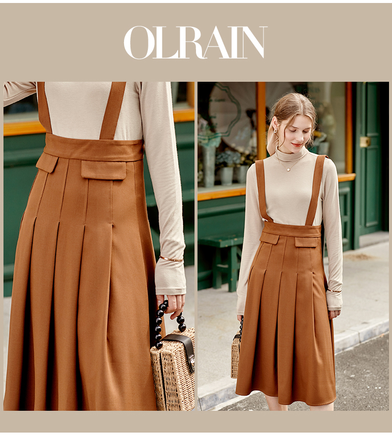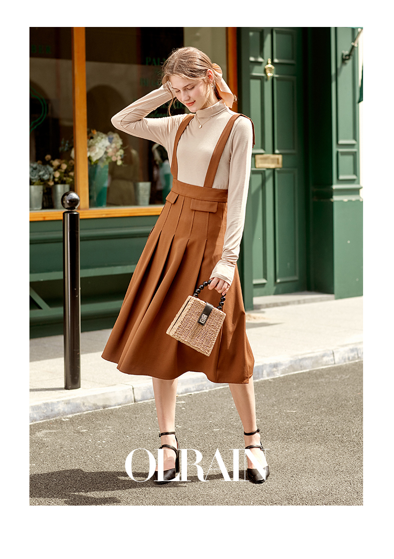 欧芮儿收腰显瘦A字型复古可调节背带连衣裙女2020春装新款
