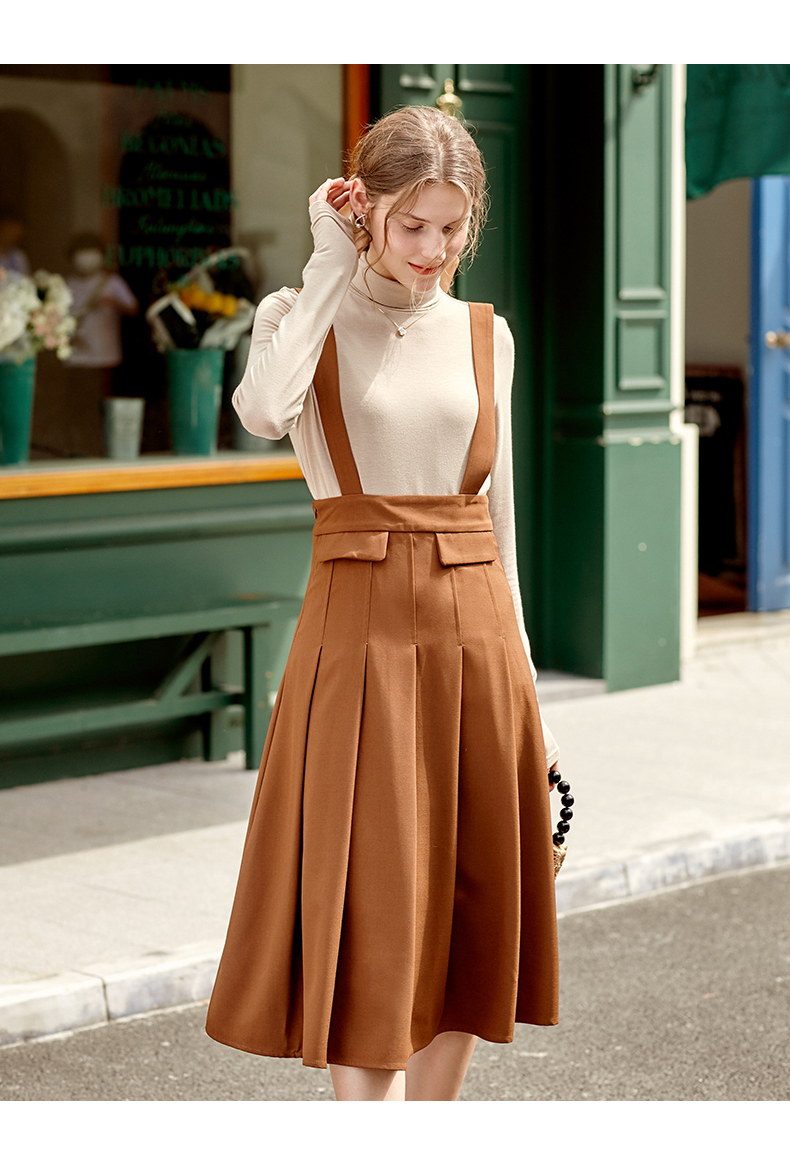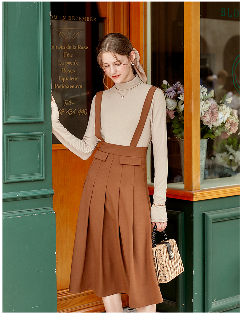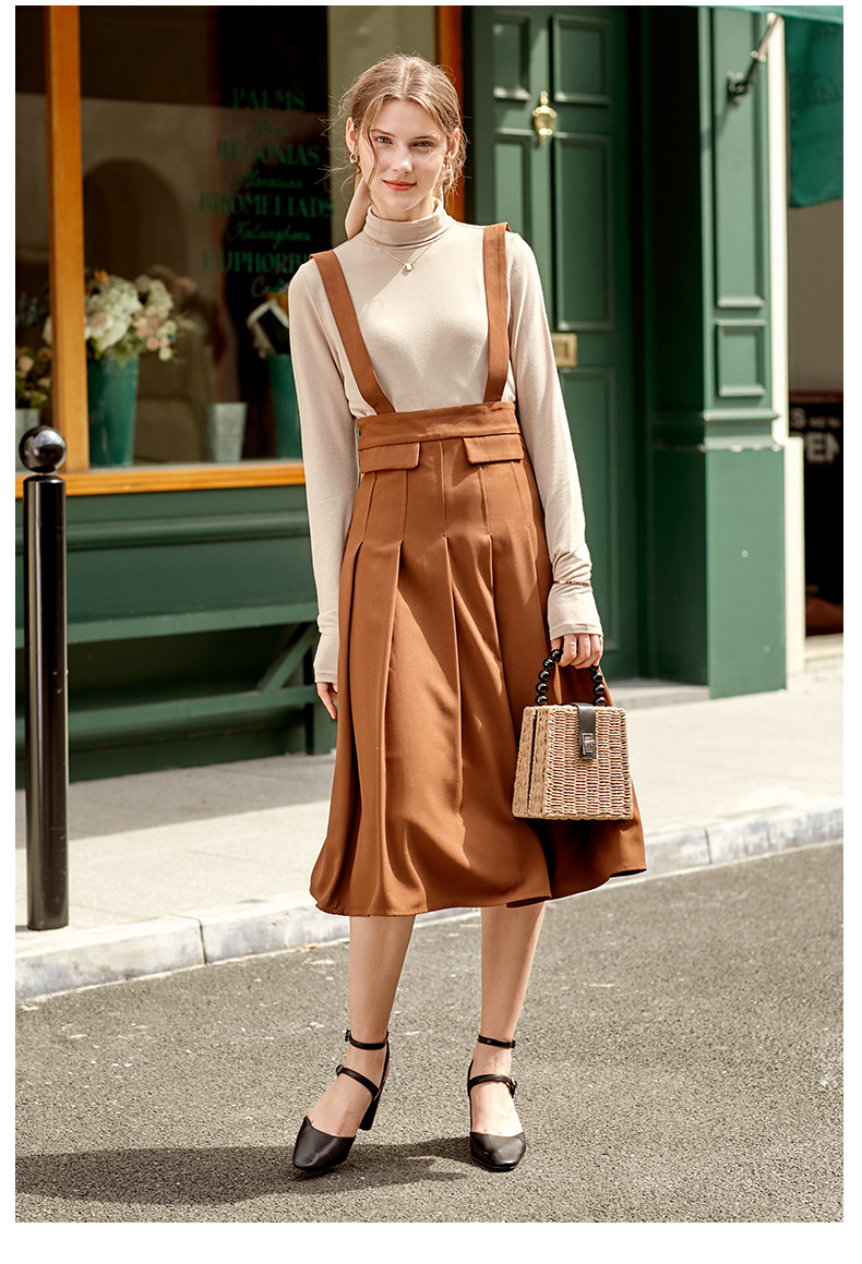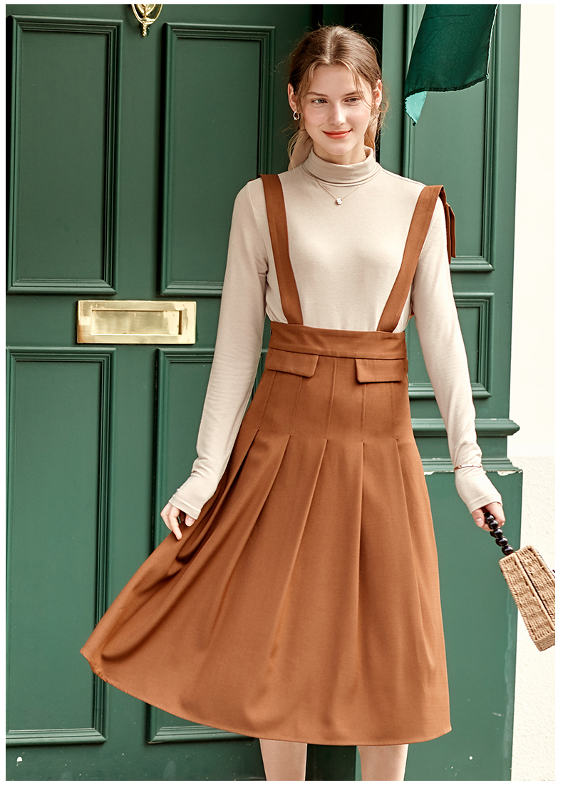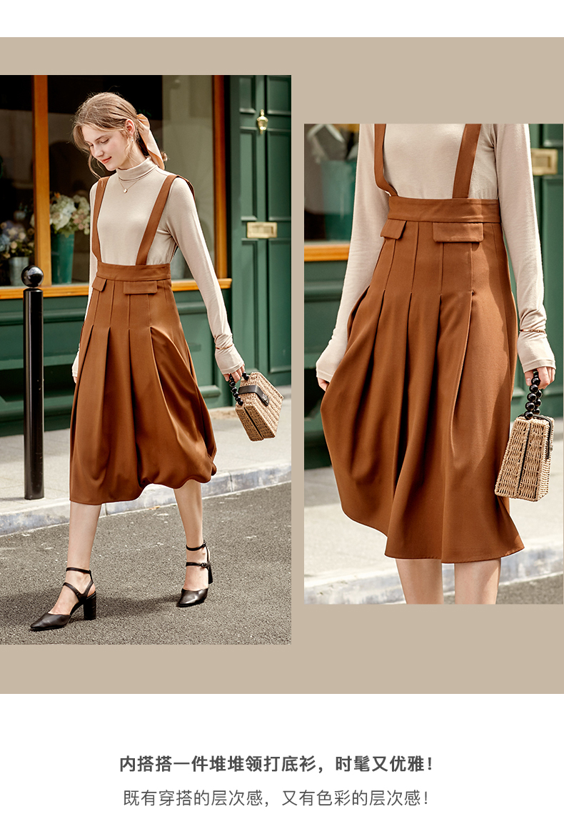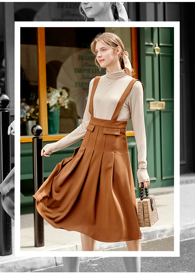 欧芮儿收腰显瘦A字型复古可调节背带连衣裙女2020春装新款