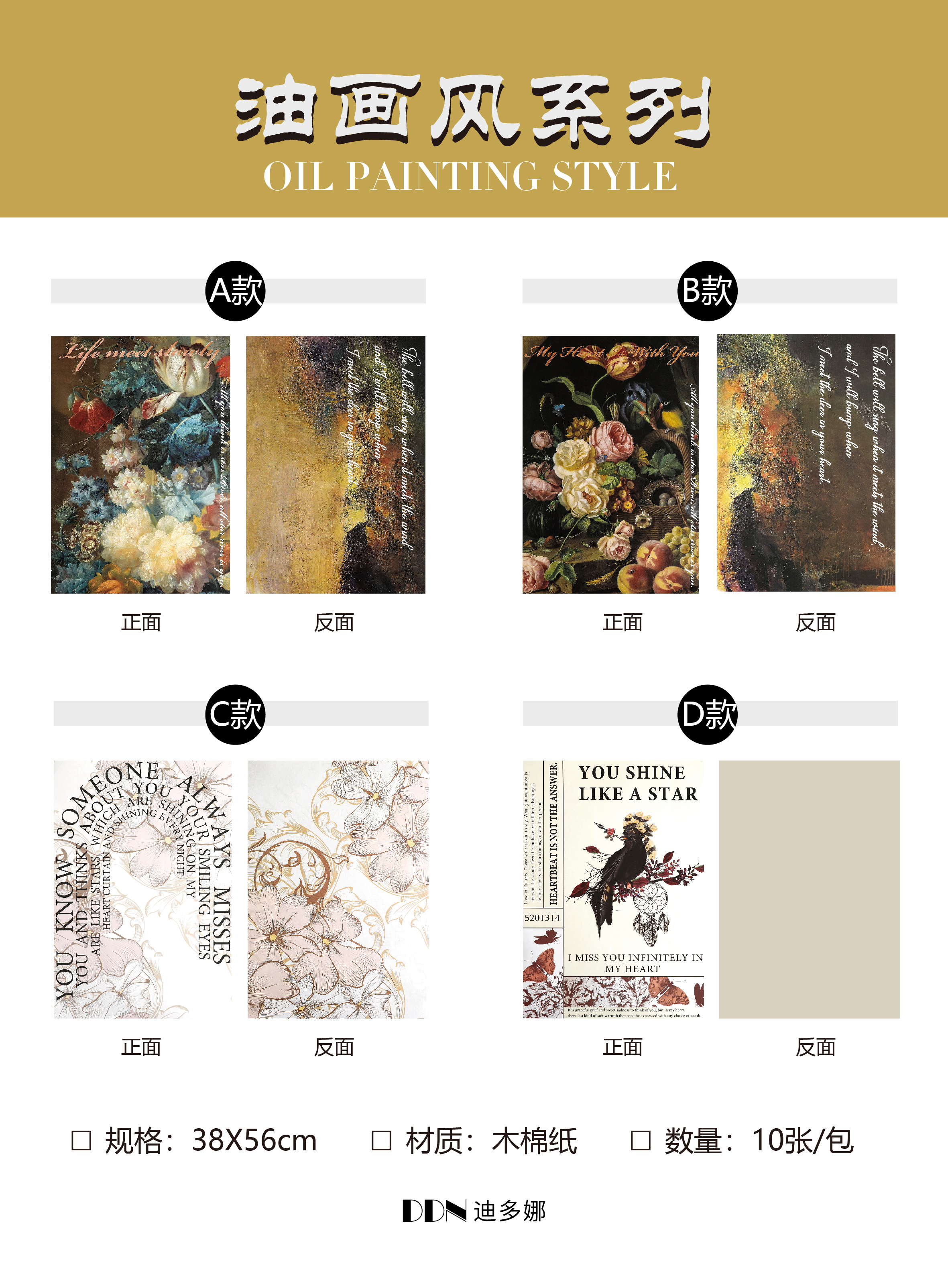 烫金油画风系列(防水木棉纸)10张