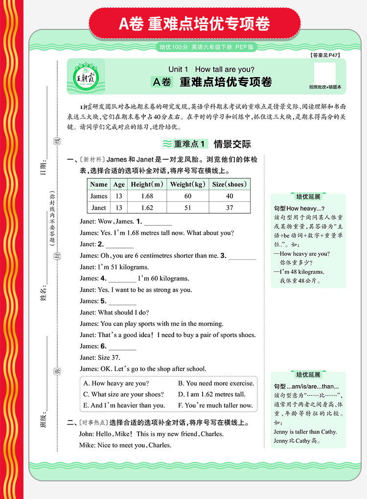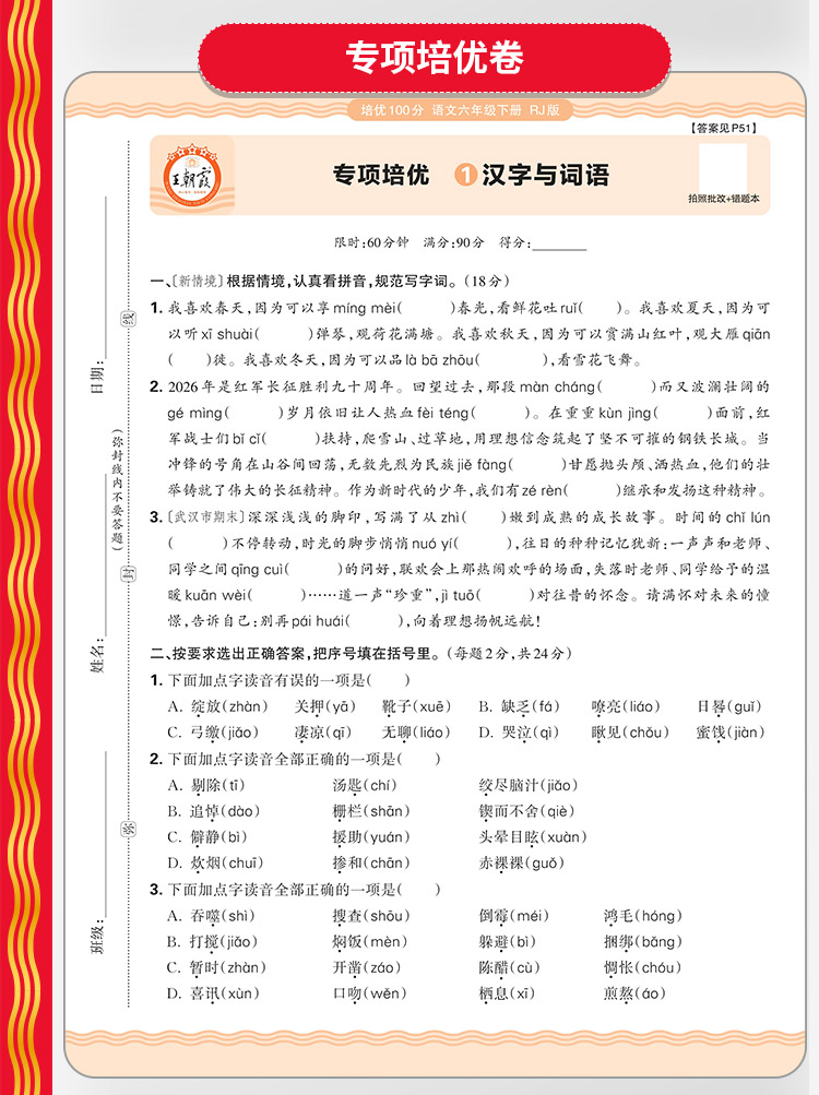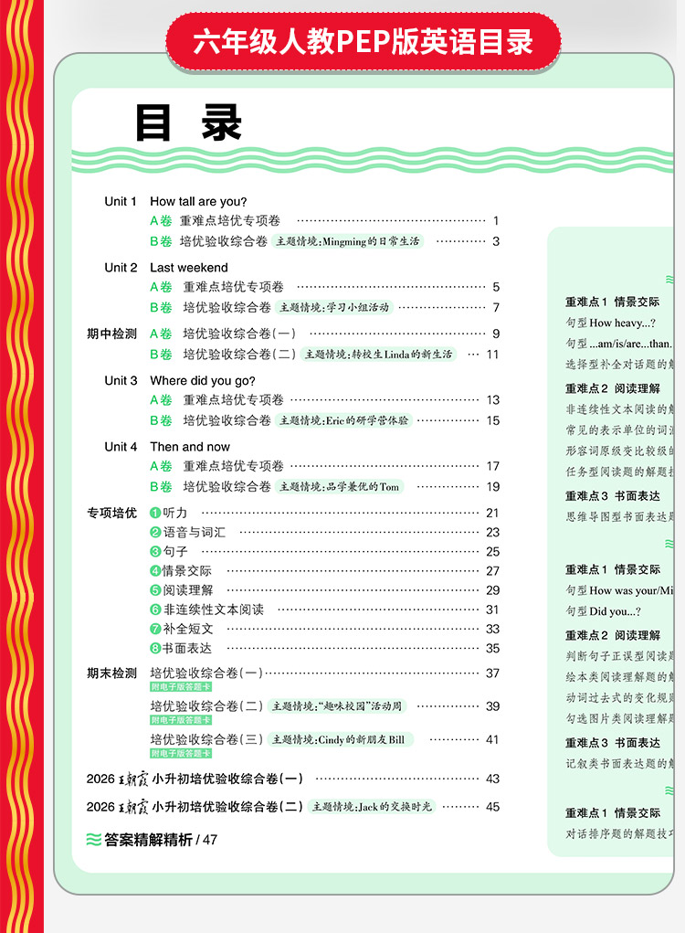 2026春培优100分1-6年级(下册)语/数/英同步单元卷