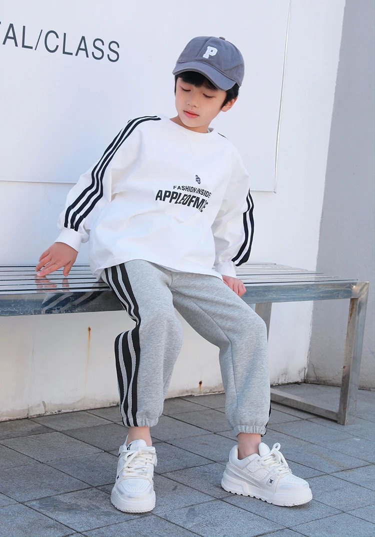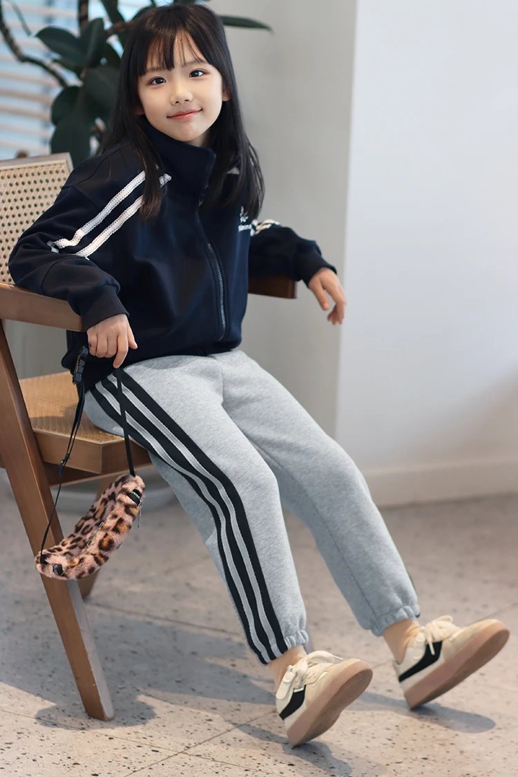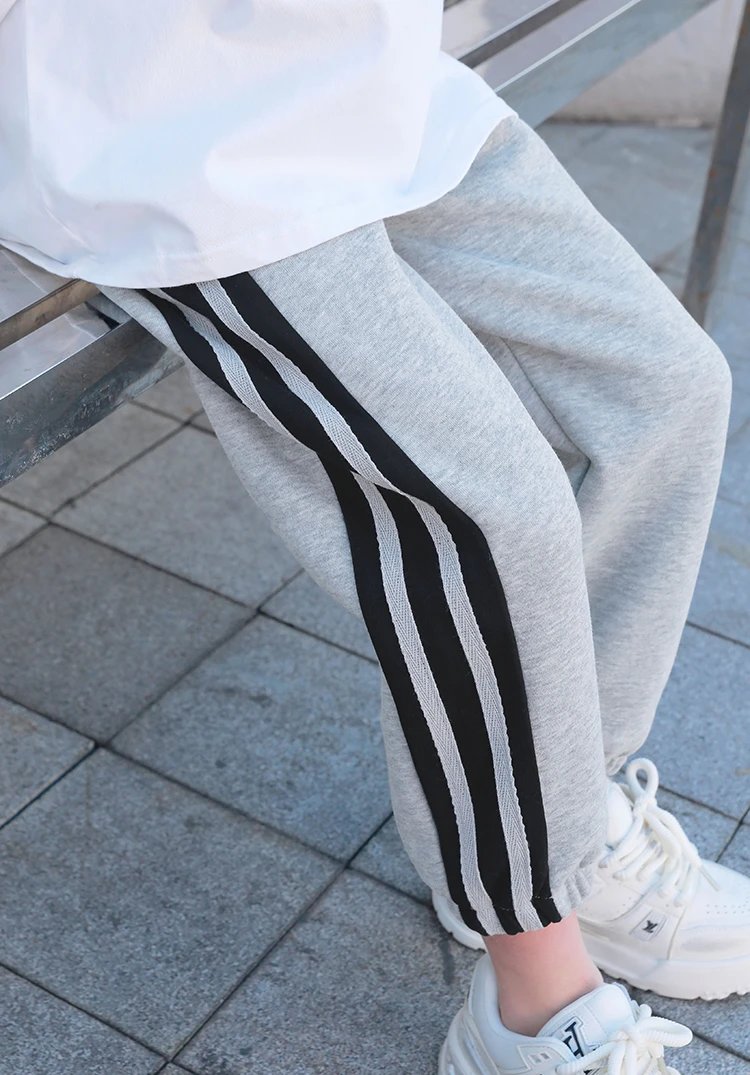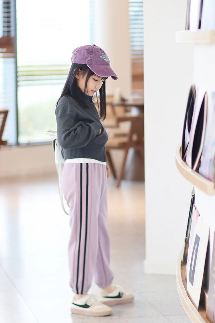 【两件69元 拍两件自动减价 单件不发货】心唯爱春韵侧条儿童卫裤NF515,选用高级的弹性织带作为侧边条原料,撞色搭配,宽边弹性松紧带设计,不勒小肚子