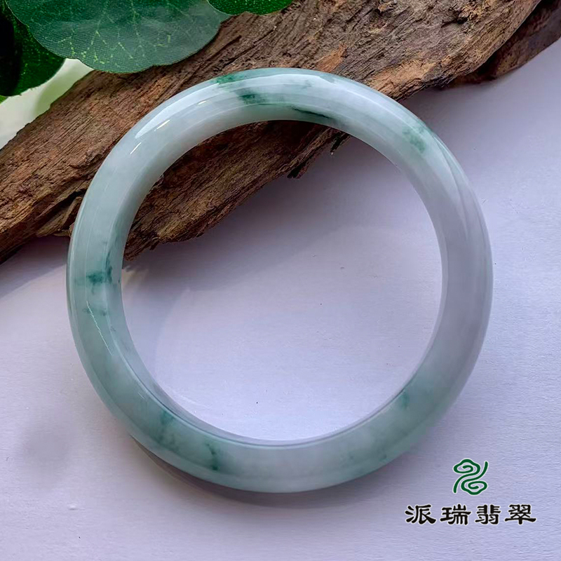 派瑞翡翠 翡翠手镯 糯种 浅绿飘花