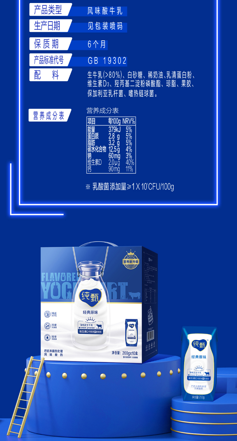(双提)纯甄巴氏杀菌热处理原味风味酸牛乳利乐钻200g×10包(营养升级版)