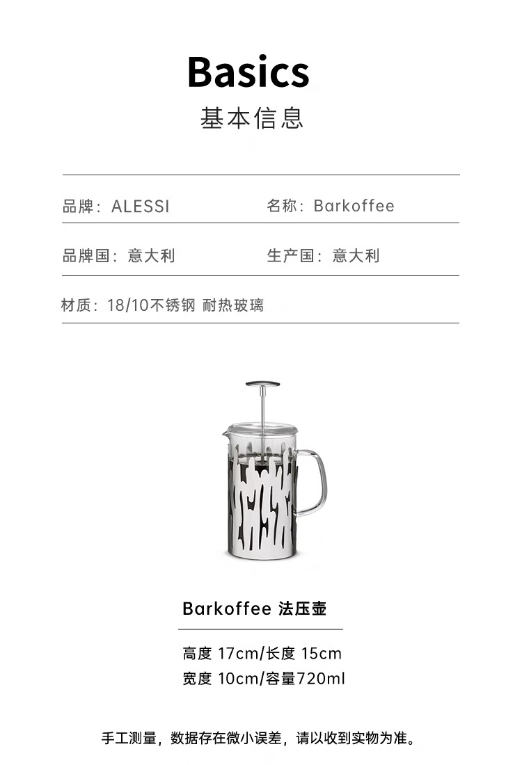 意大利ALESSI 树皮法压咖啡壶泡茶壶玻璃法式滤压壶冷萃咖啡
