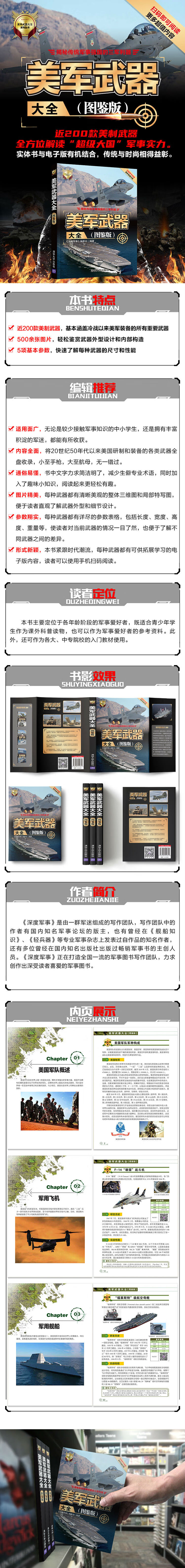 内容全面,将20世纪50年代以来美国研制和装备的各类武器全盘收录,小至手枪,大至航母,无一错过。