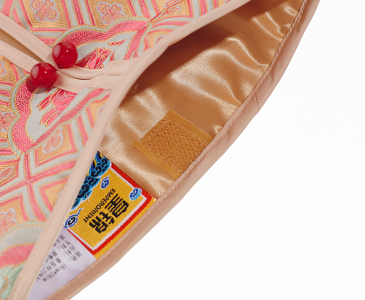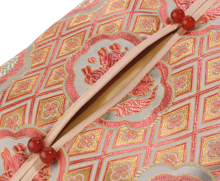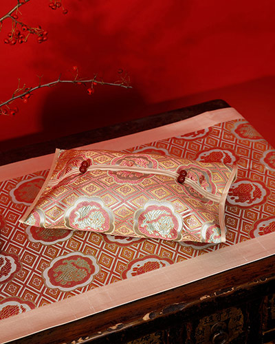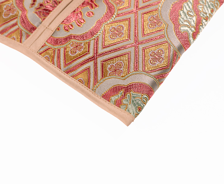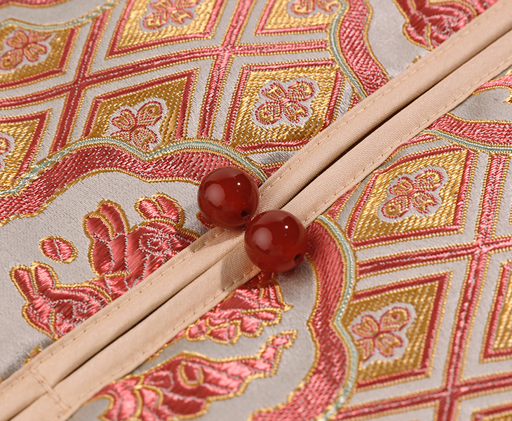 主料为织锦缎,花纹精致,质地紧密厚实。