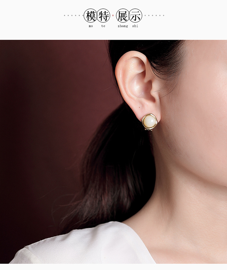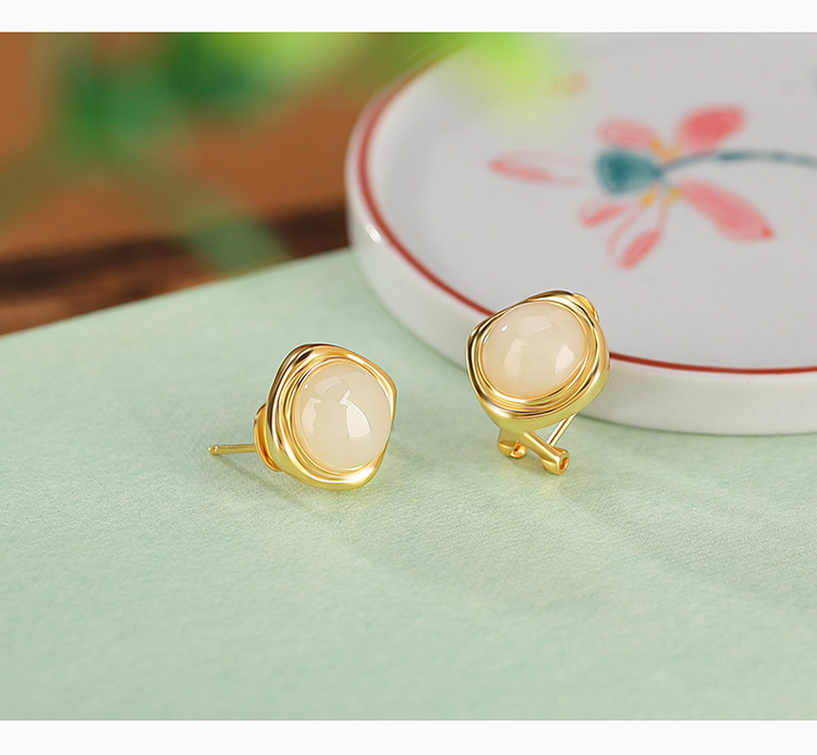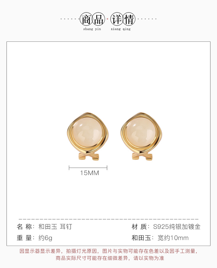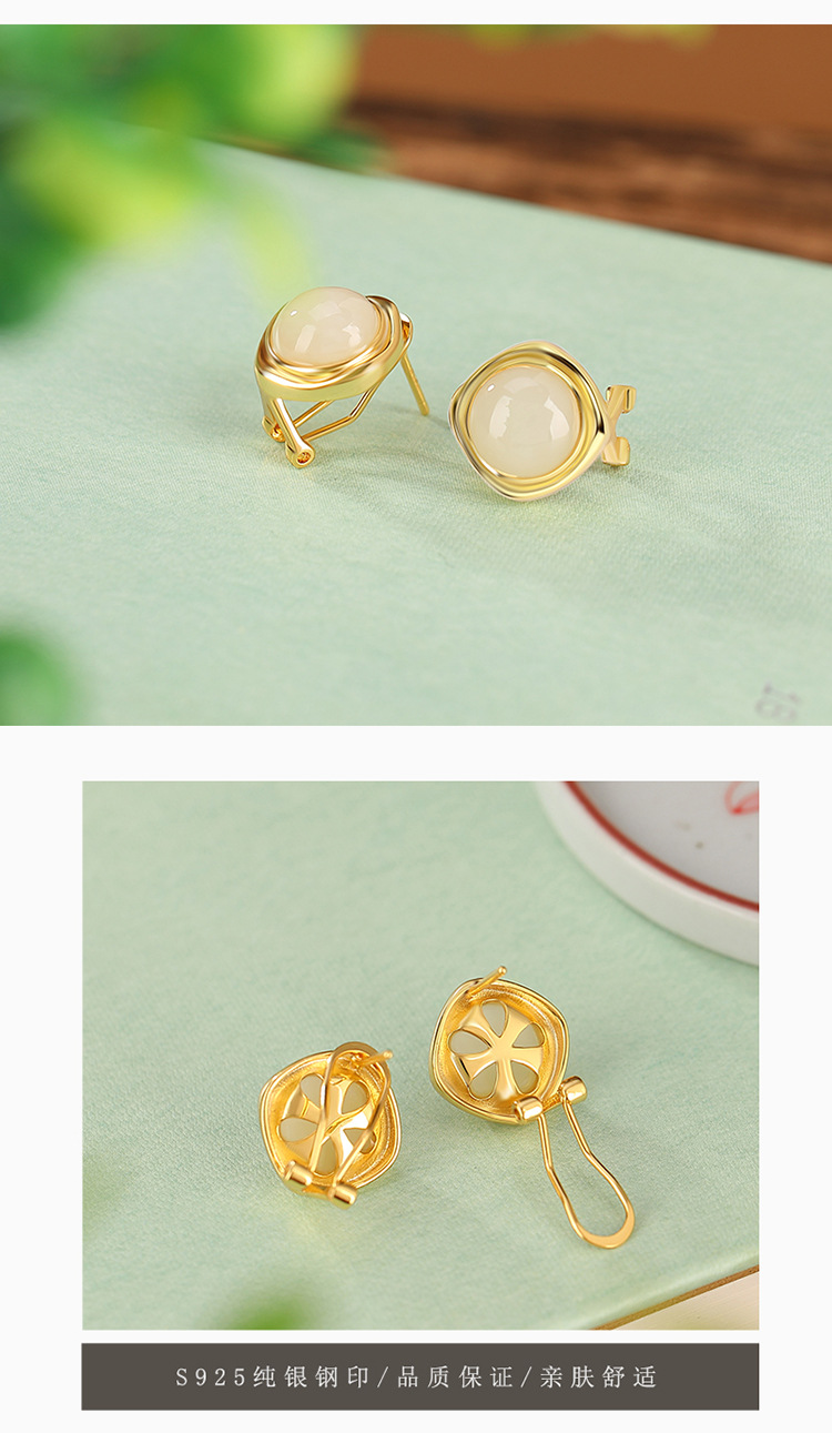 【顾恋轻尘】S925银镀金和田玉几何方形圆形耳饰【CW-ED03010】