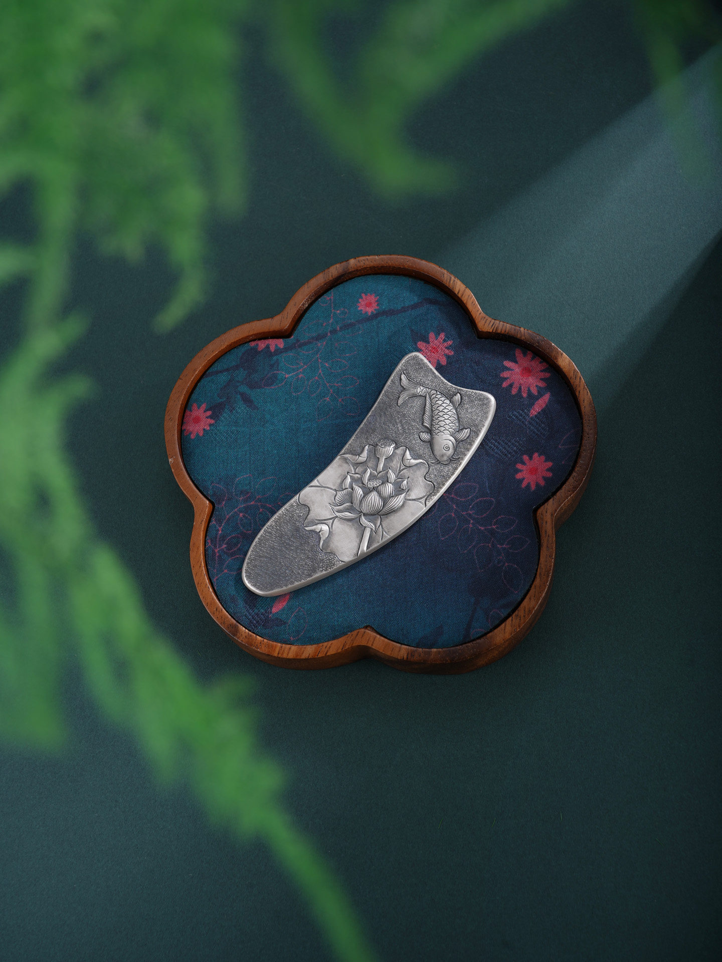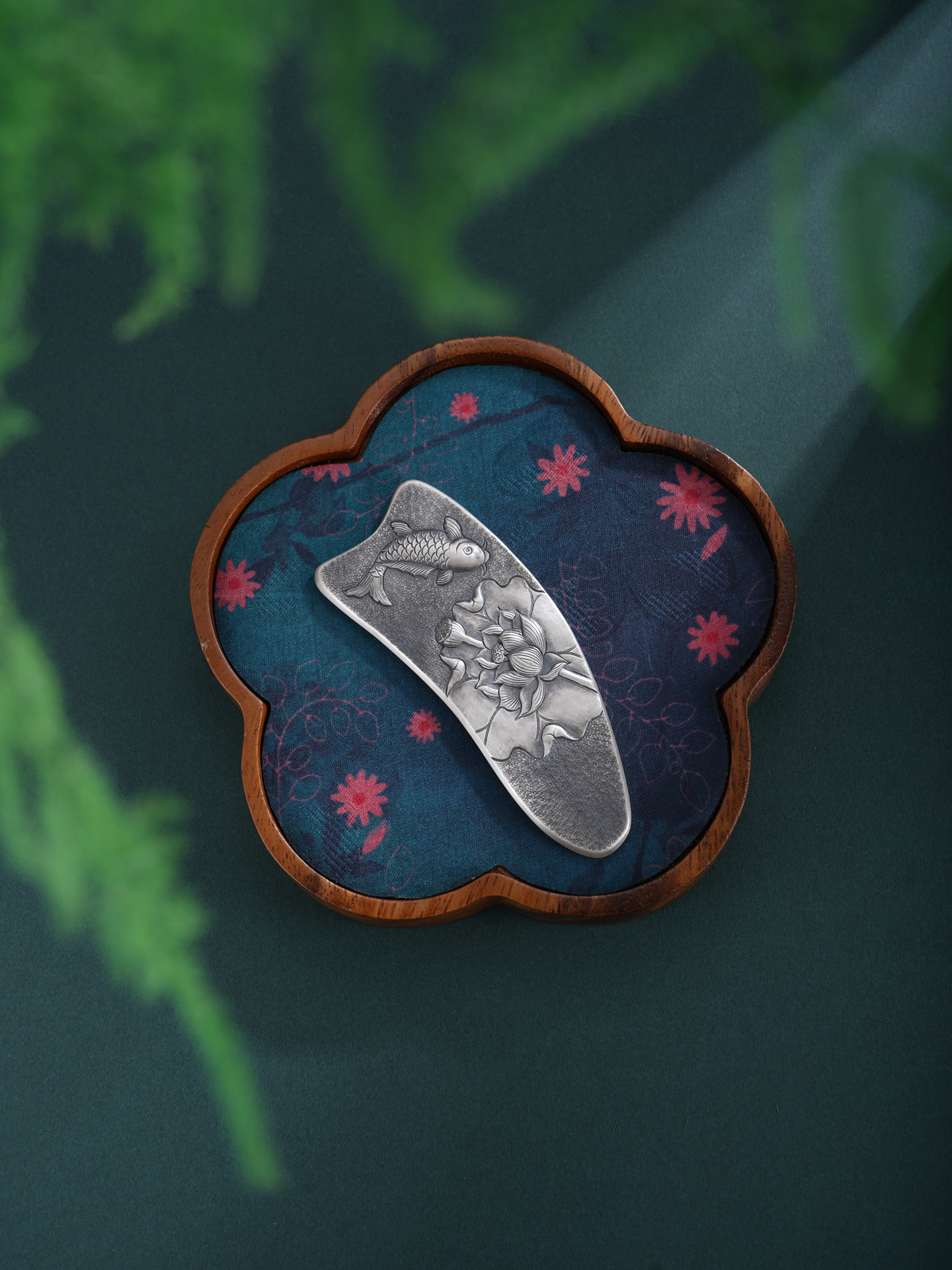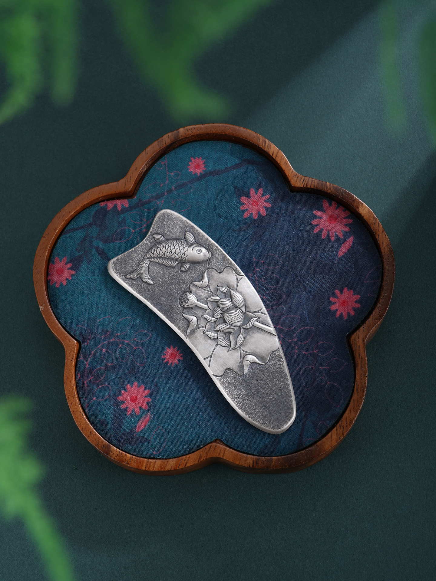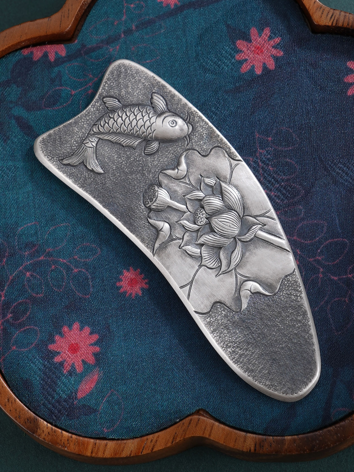 【寓意】:作品以传统錾刻技艺精铸,莲花与鲤鱼纹样灵动相映,栩栩如生。既凝莲华之清雅,又寓“连年有余”之吉,寄托美好期许。