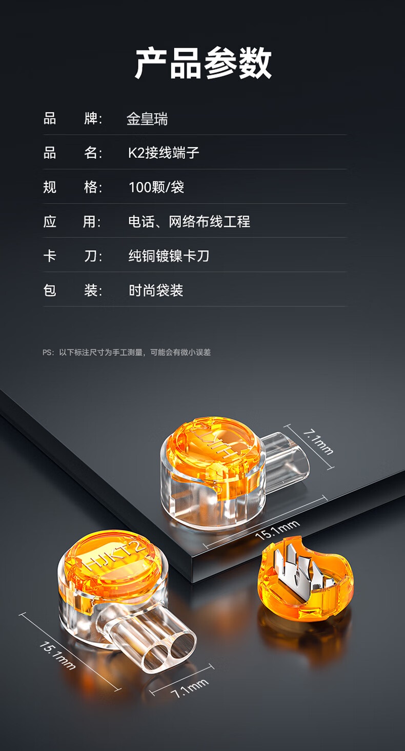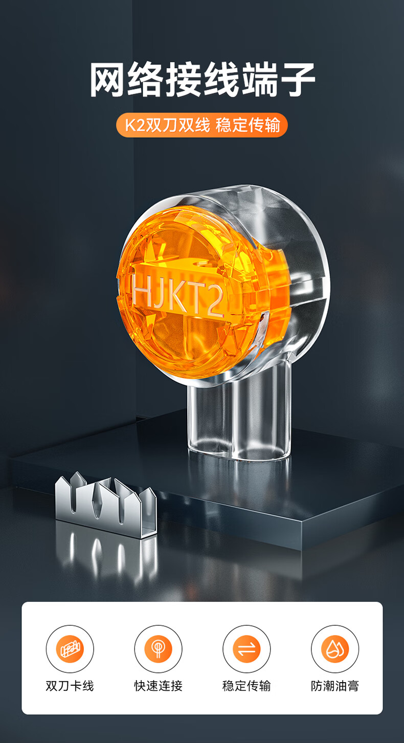 商品名称:工程级K2接线子 网络线连接端子 纯铜双刀 网线 电话线对接头 纯铜镀镍卡刀 快速接线 无损延长 内充防潮