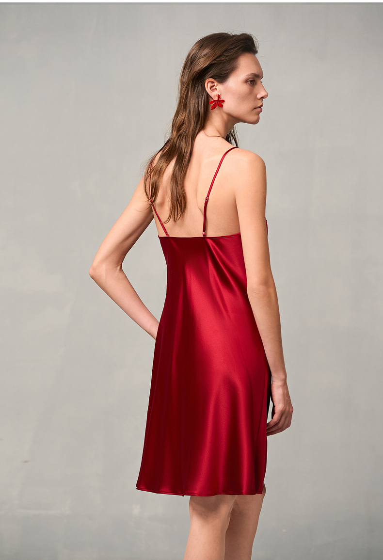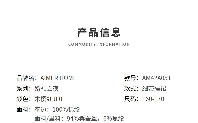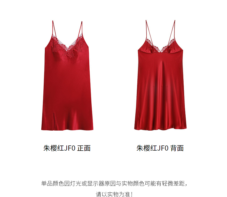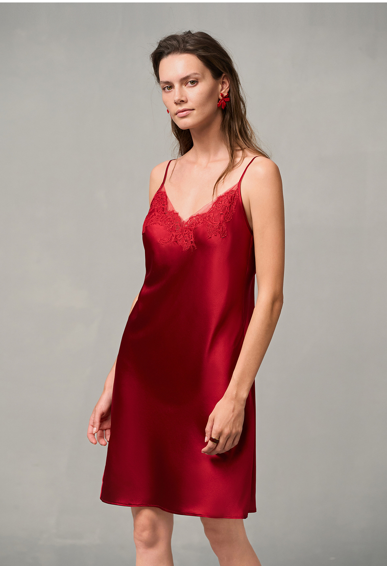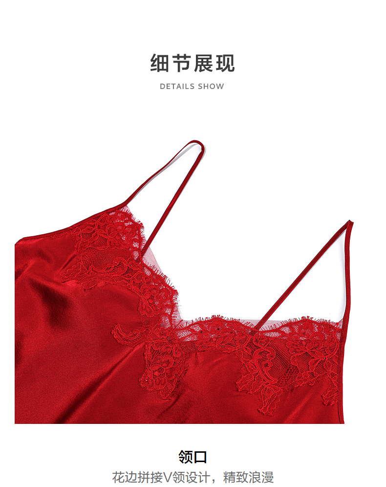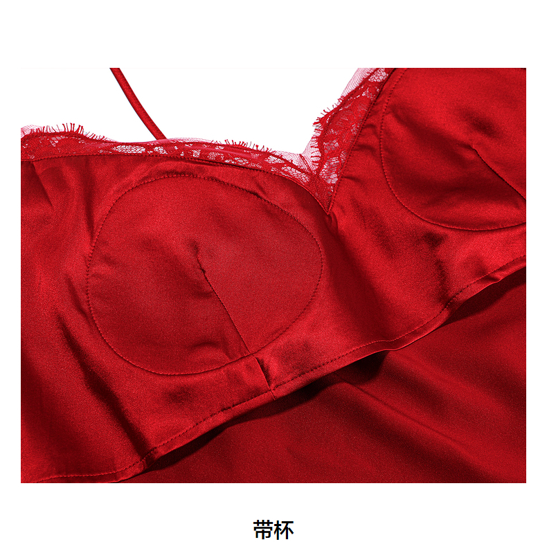 爱慕婚礼之夜红品睡衣女含真丝性感蕾丝细带吊带睡裙