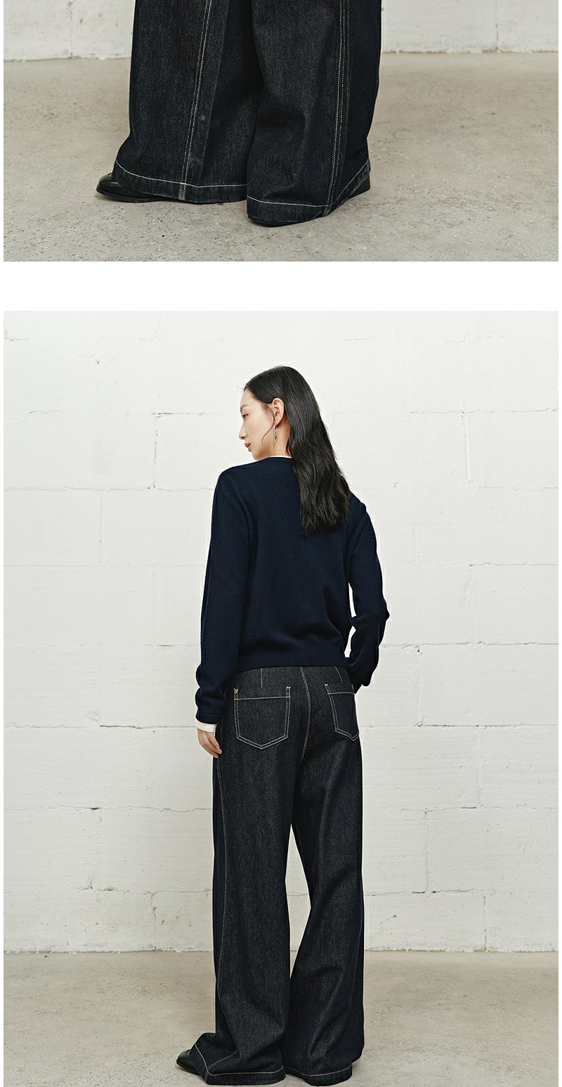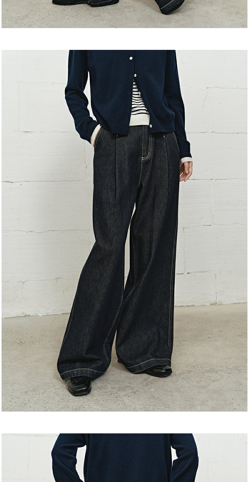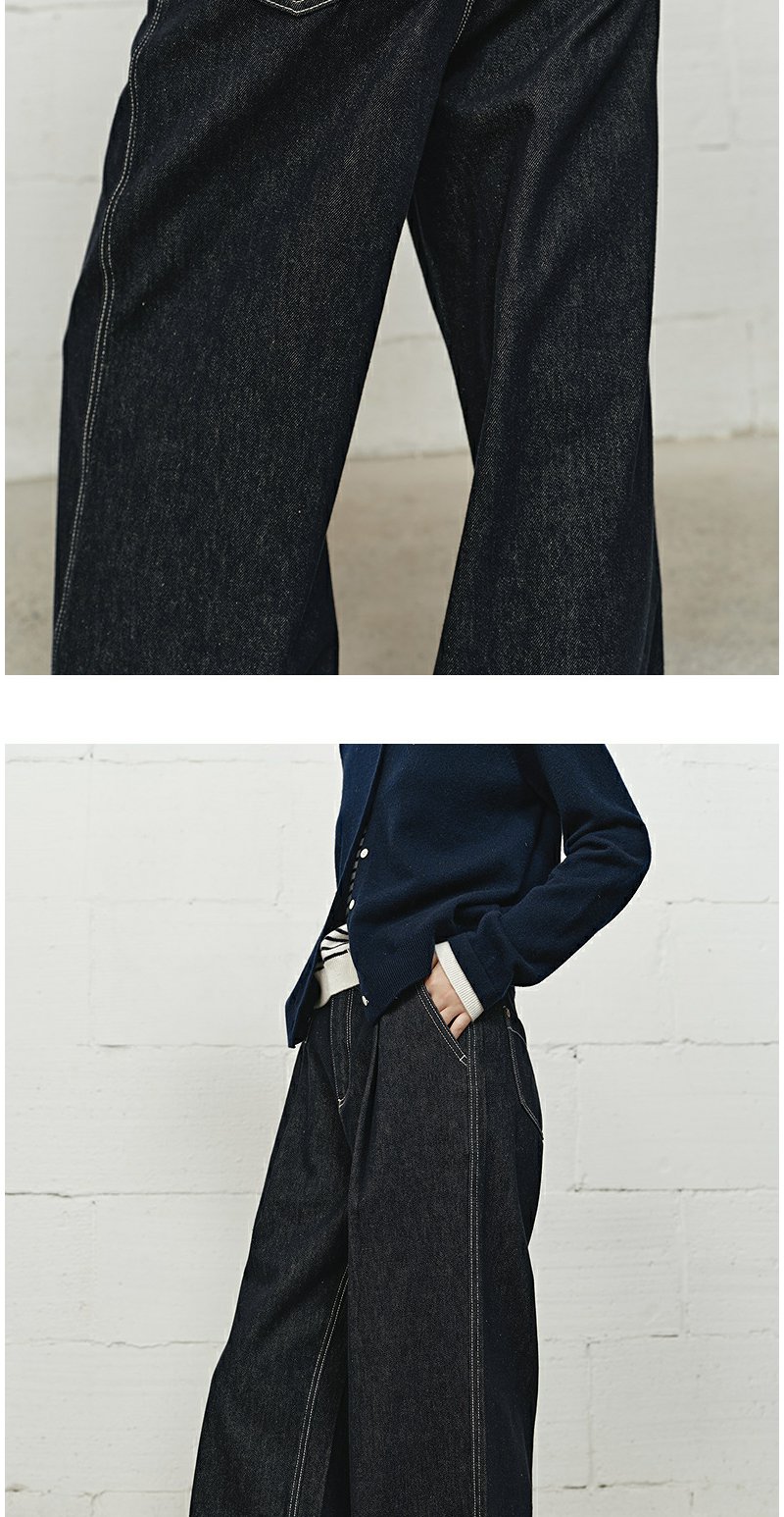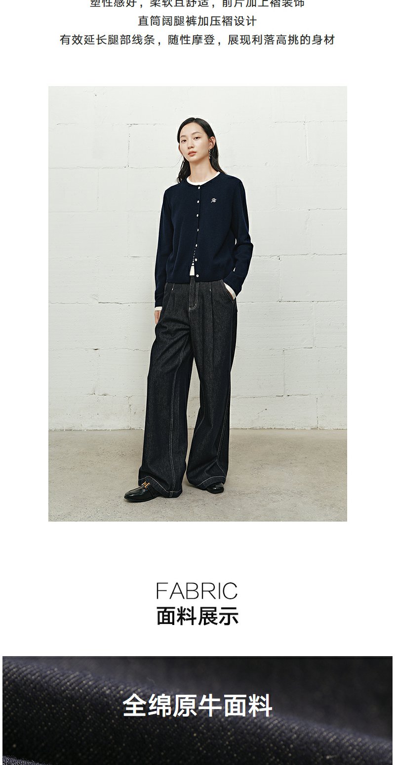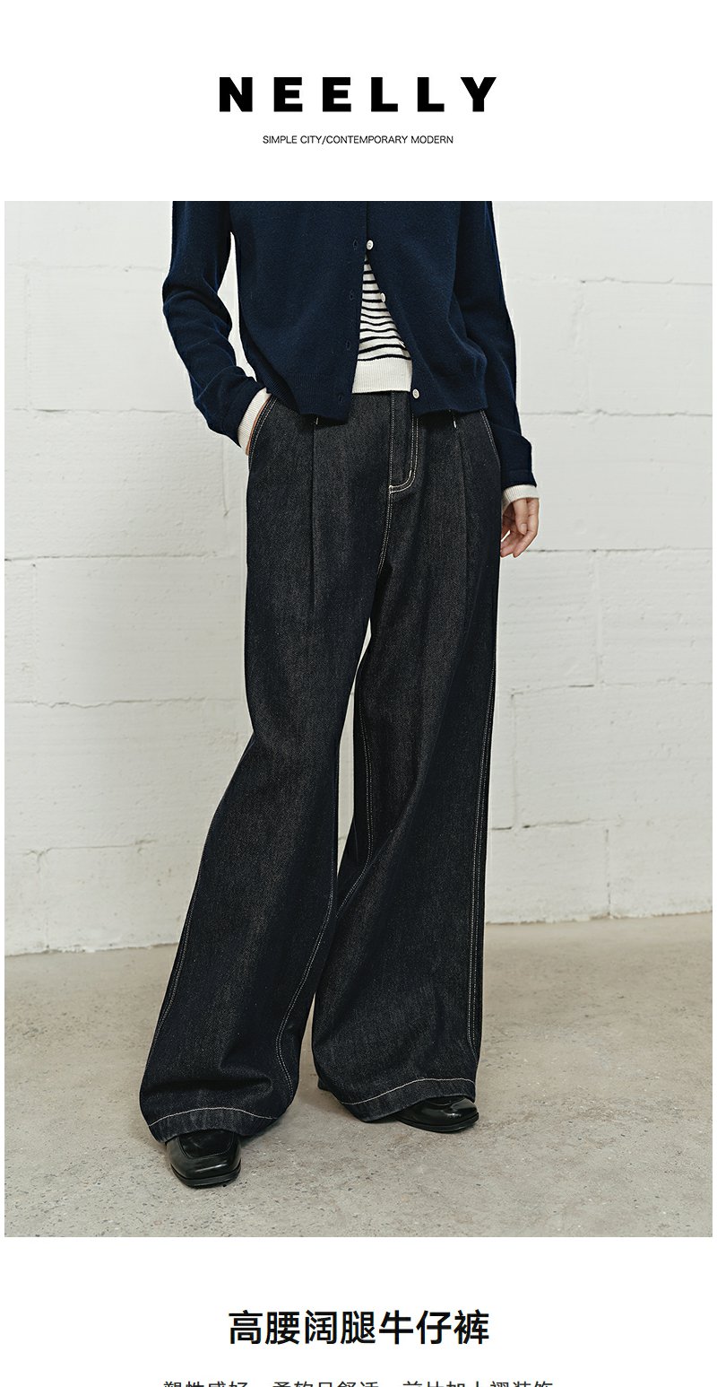 NEELLY纳俪商场同款冬新款时尚高腰阔腿牛仔裤女修饰百搭直筒长裤N25101H01022