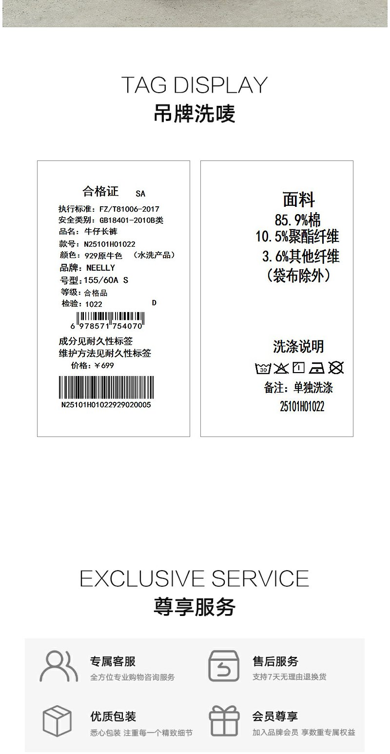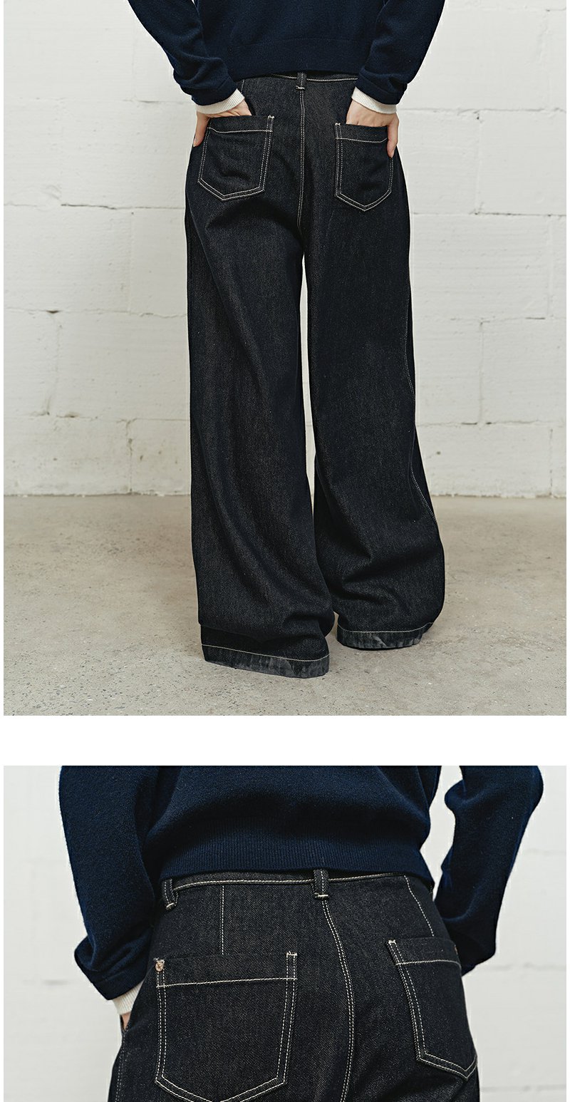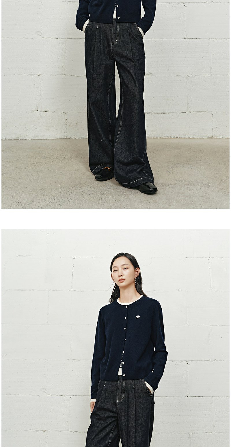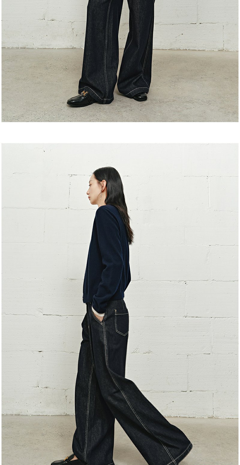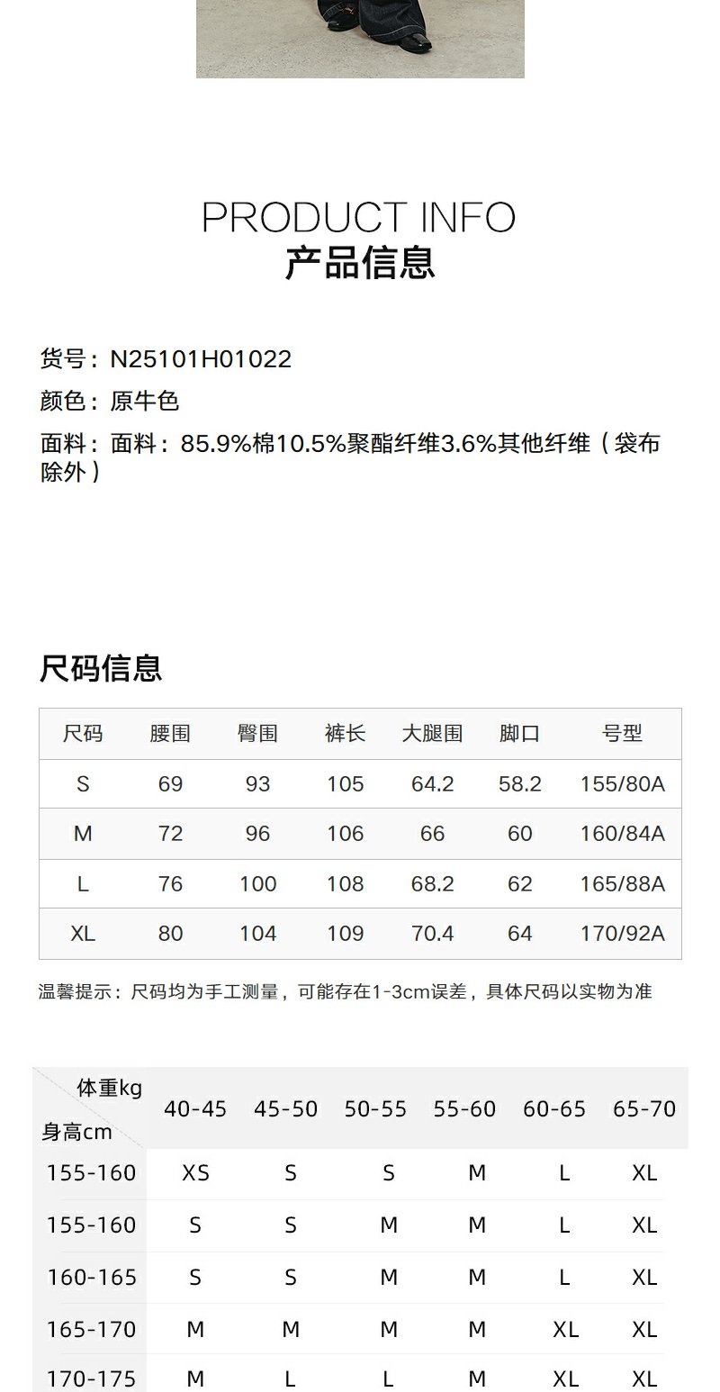NEELLY纳俪商场同款冬新款时尚高腰阔腿牛仔裤女修饰百搭直筒长裤N25101H01022