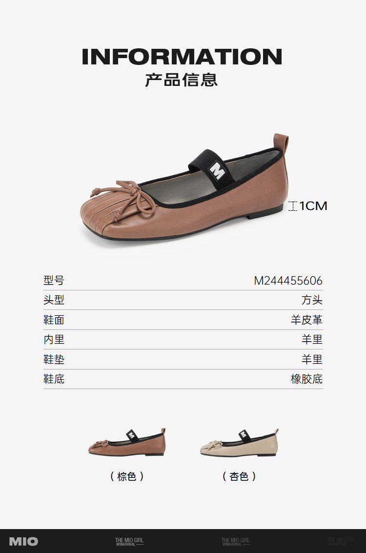 MIO米奥秋季方头平跟通勤单鞋复古芭蕾一字带玛丽珍女鞋M244455606