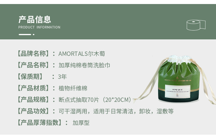尔木萄加厚纯棉卷筒洗脸巾*5袋