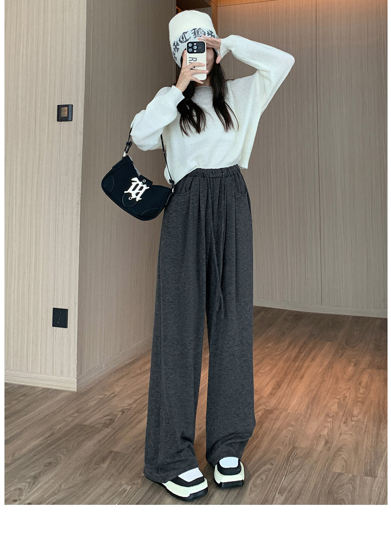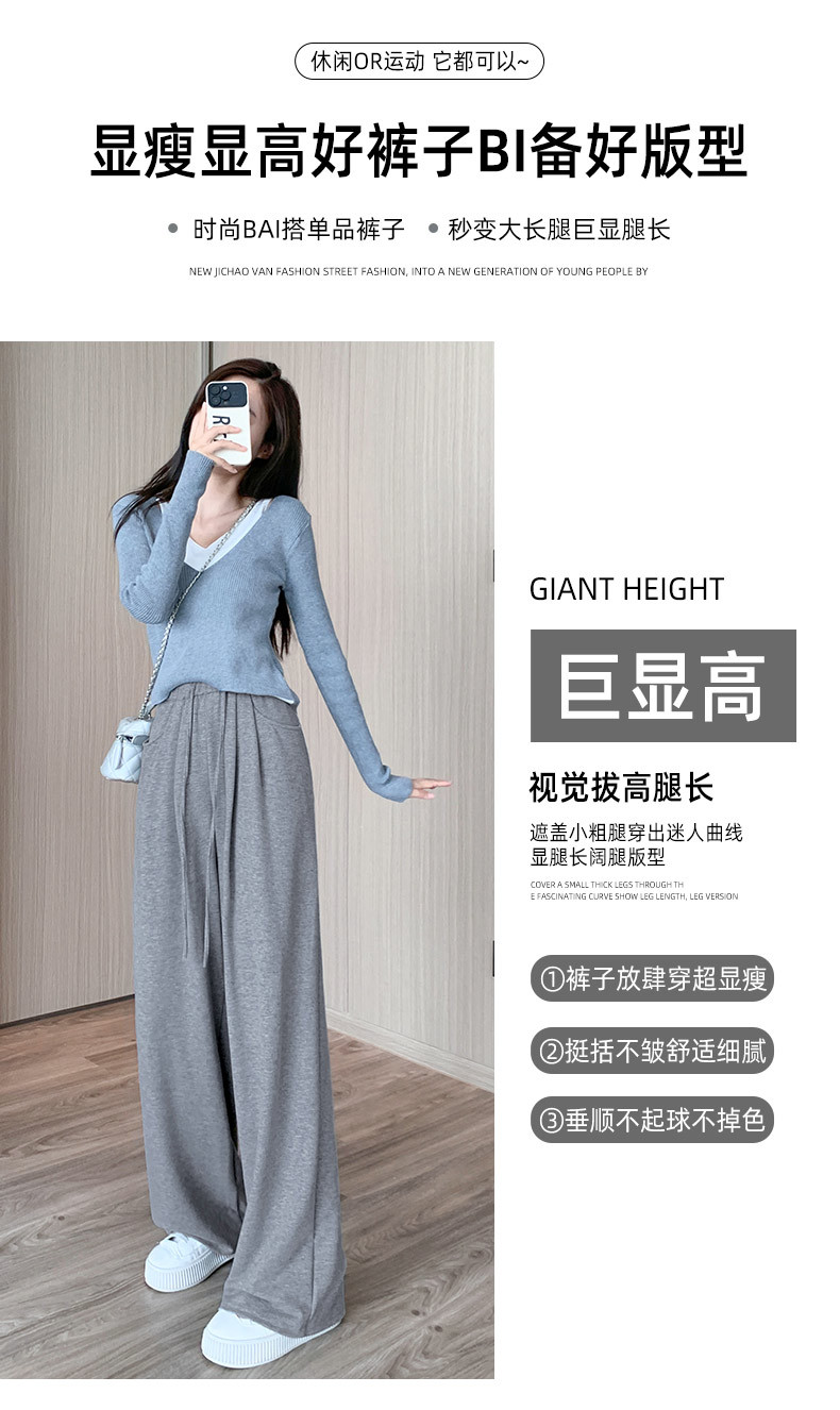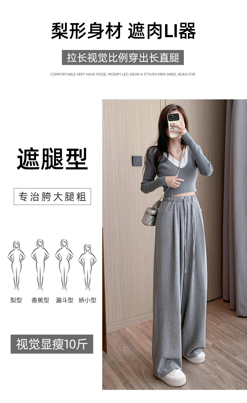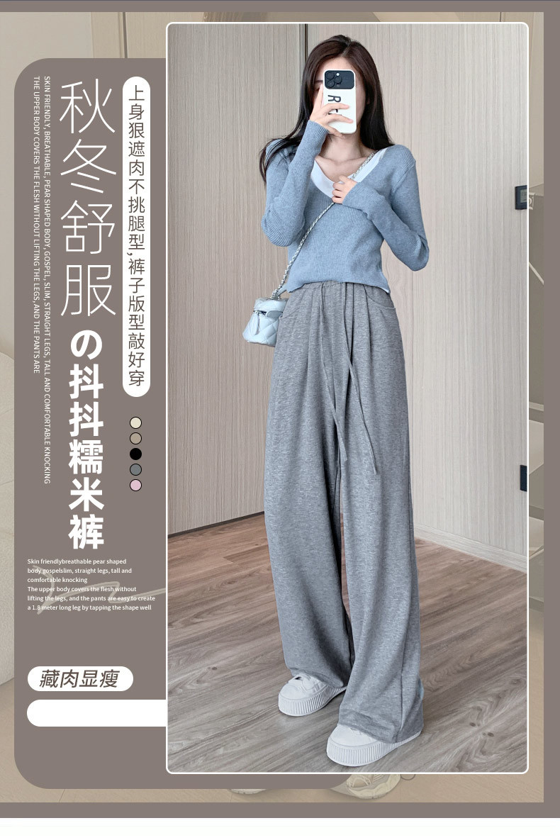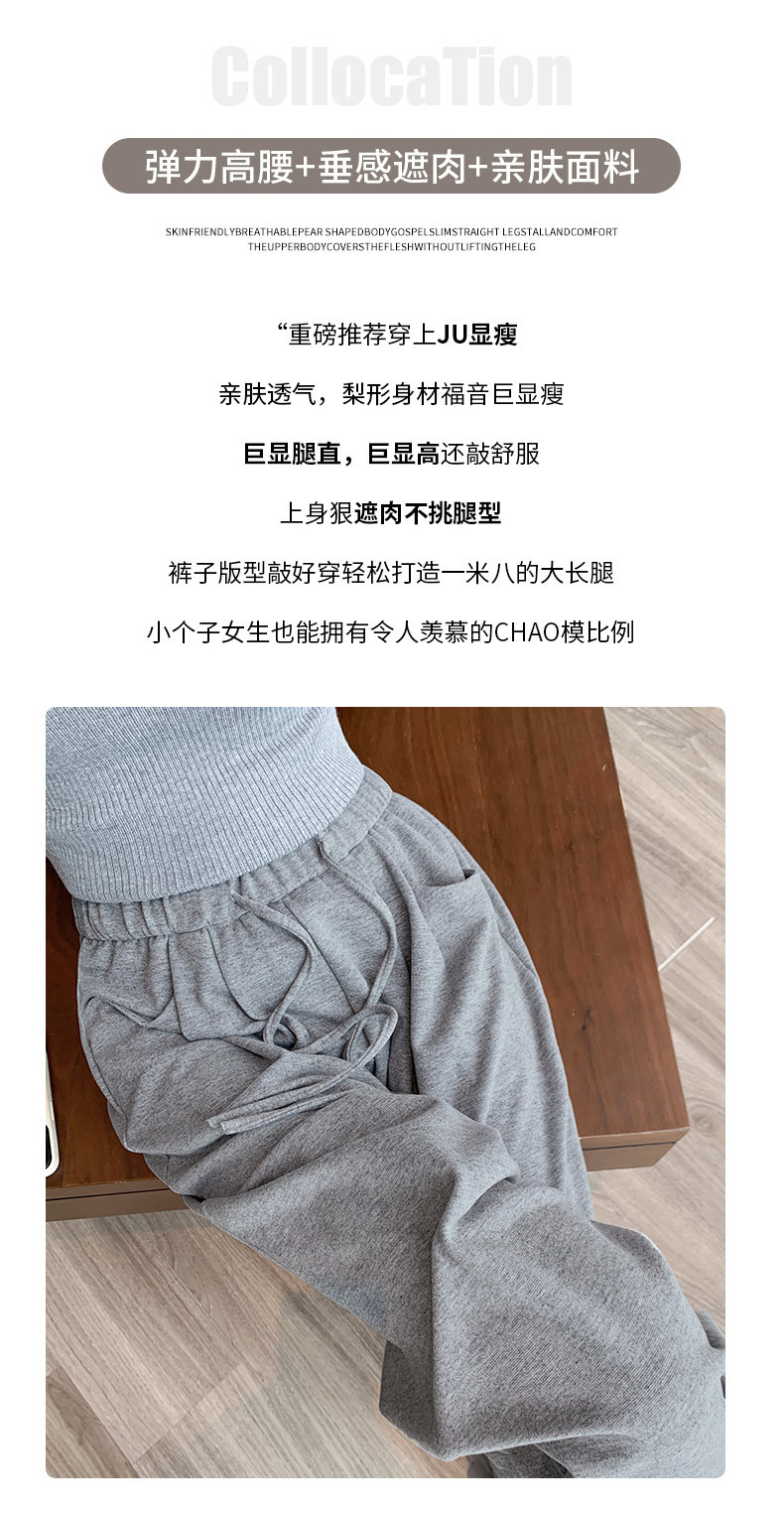 秋冬款【抖抖糯米裤】灰色高腰阔腿裤 垂感休闲直筒裤 慵懒风拖地裤