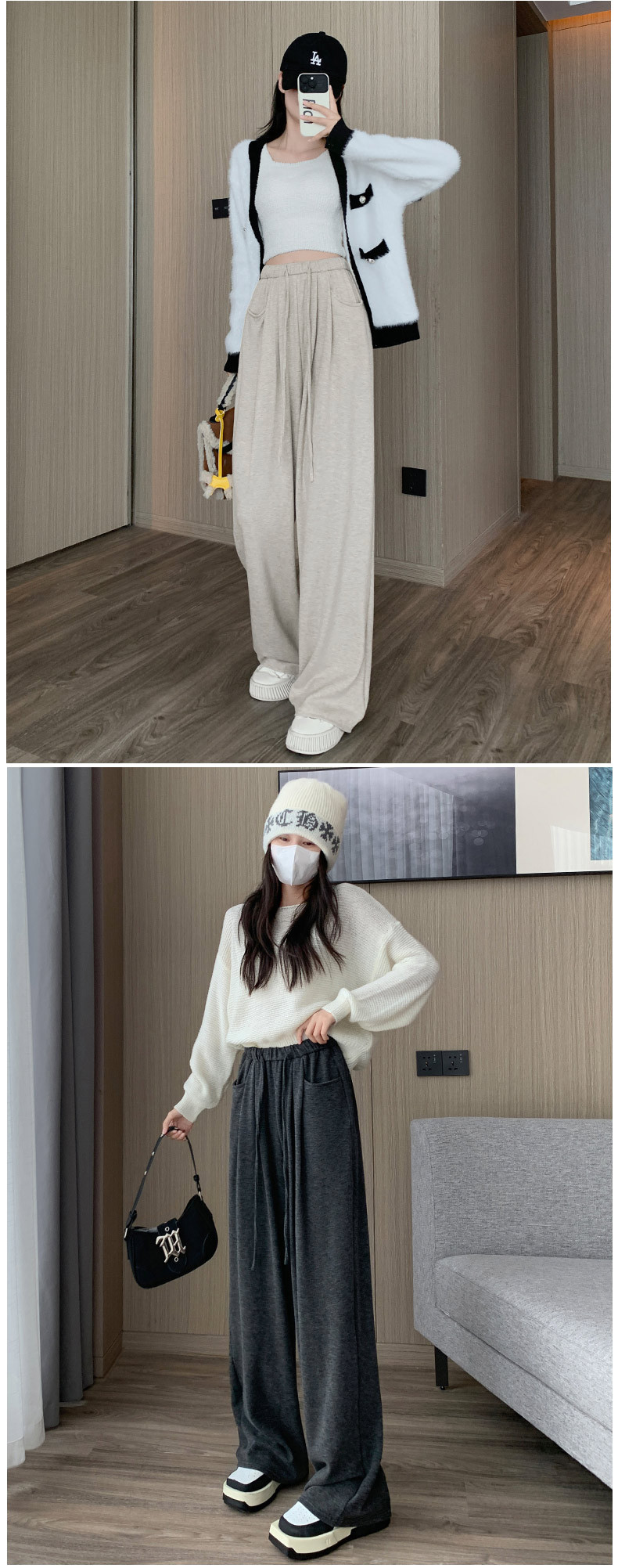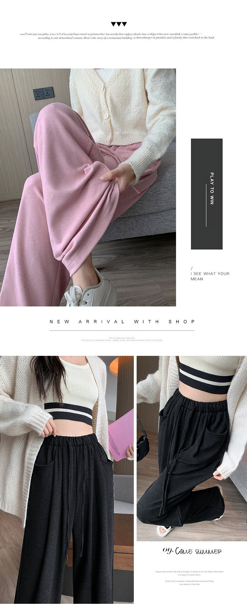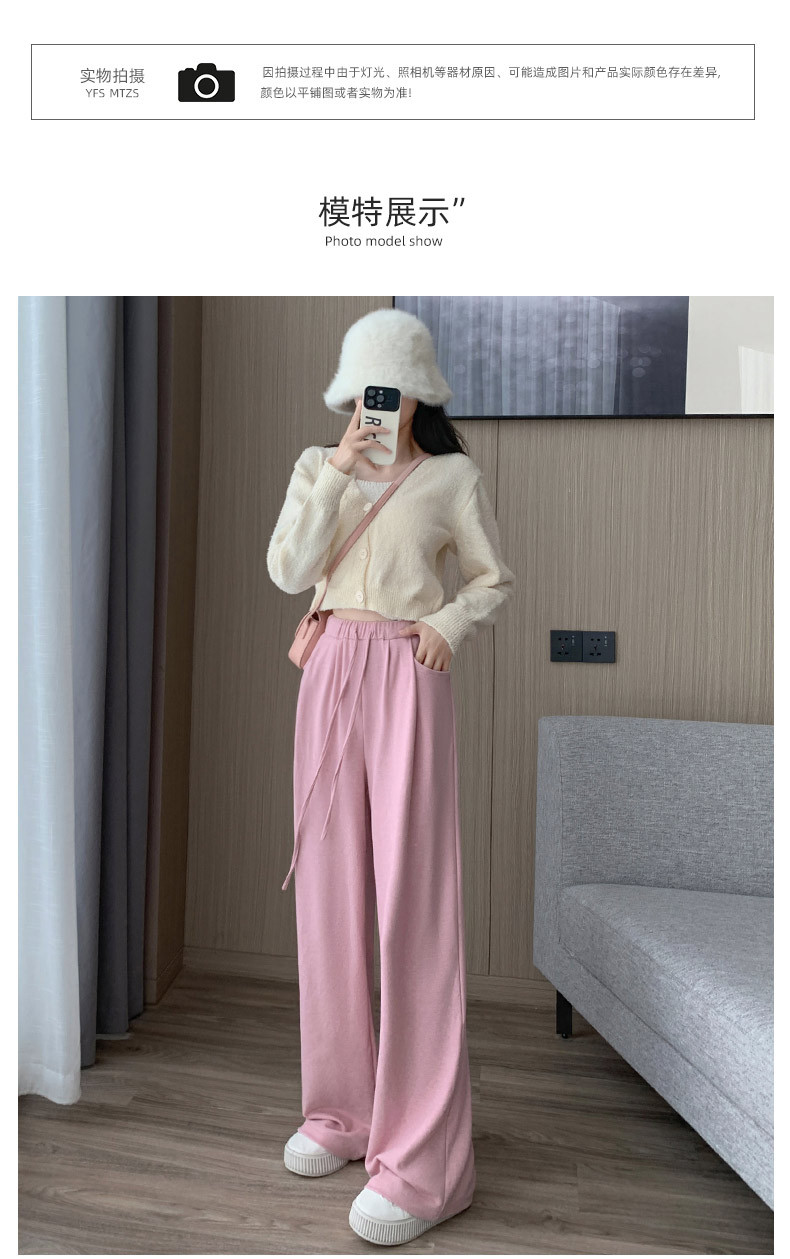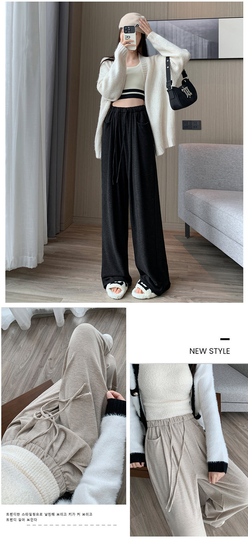 秋冬款【抖抖糯米裤】灰色高腰阔腿裤 垂感休闲直筒裤 慵懒风拖地裤