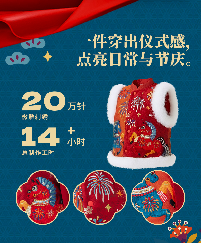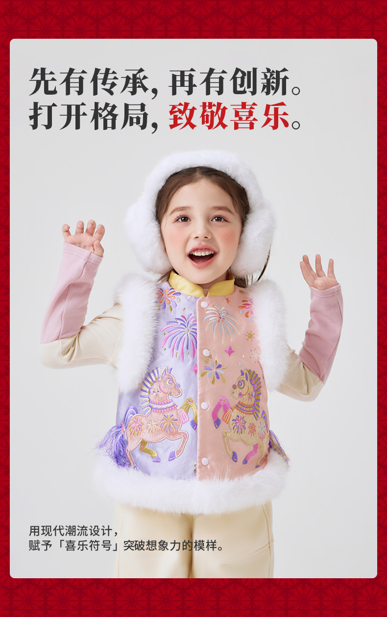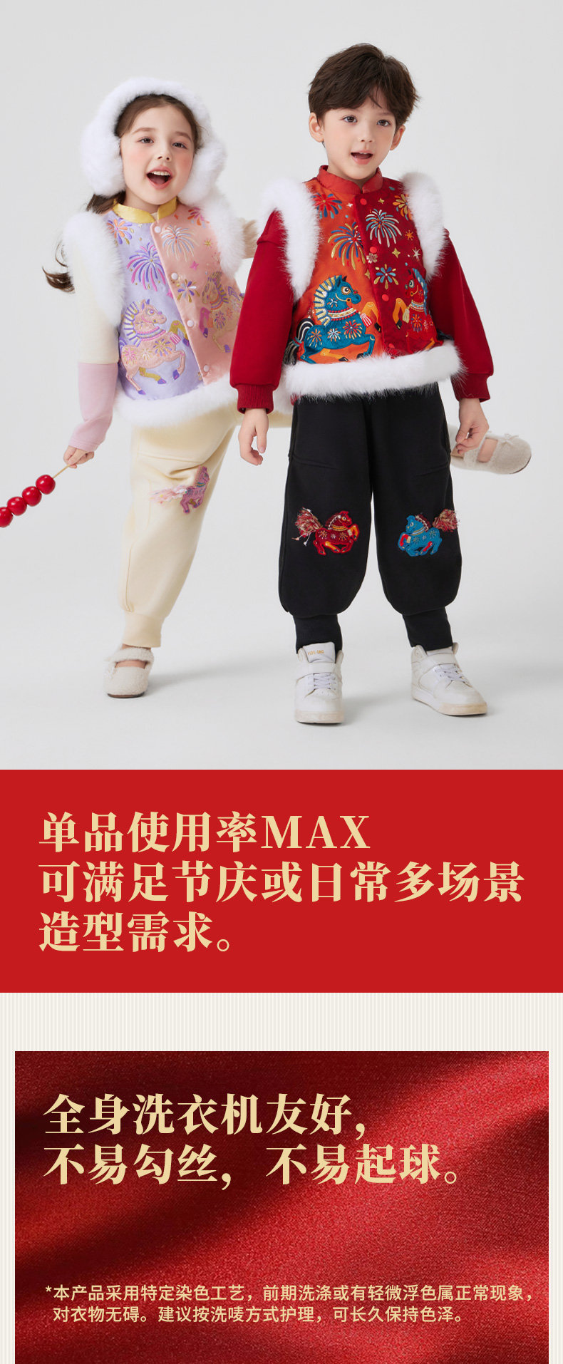 年衣童装儿童中式马甲新款冬装男女童中式背心马夹盛世跃马中式马甲