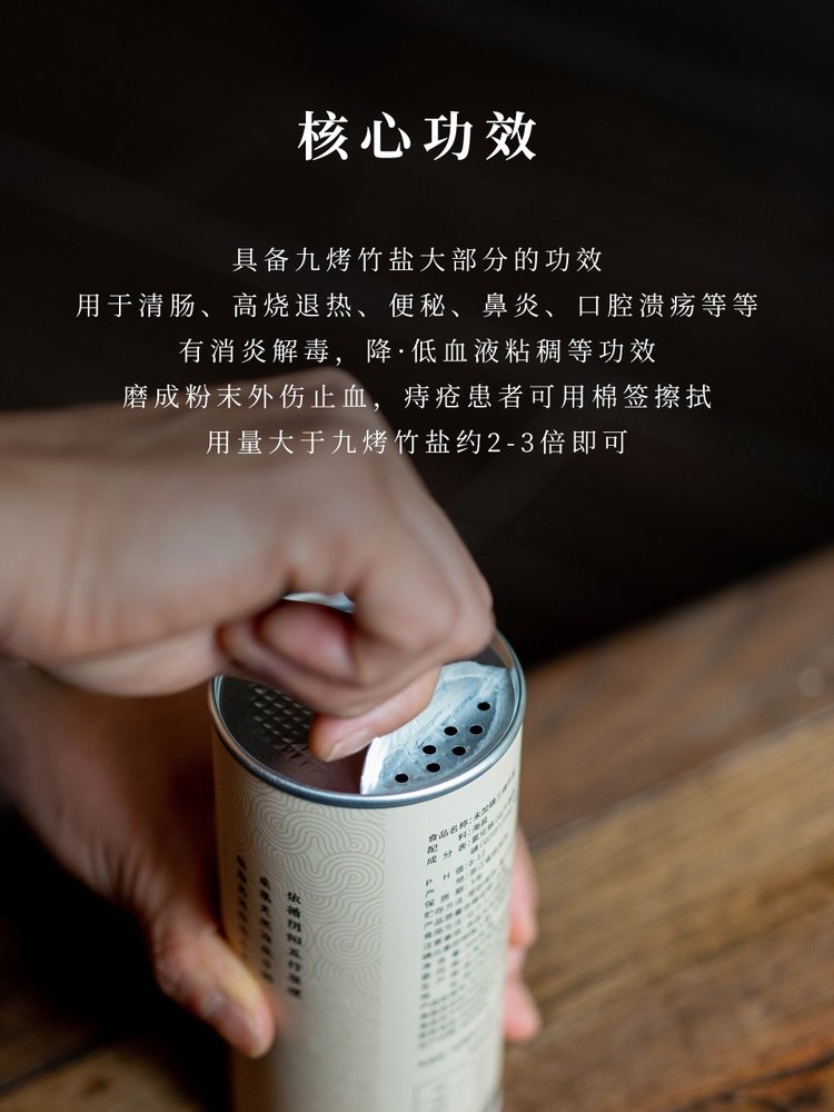 1.竹盐采用天然日晒海盐,非矿井盐,含丰富矿物质,天然微量元素,可孕育海洋生物;