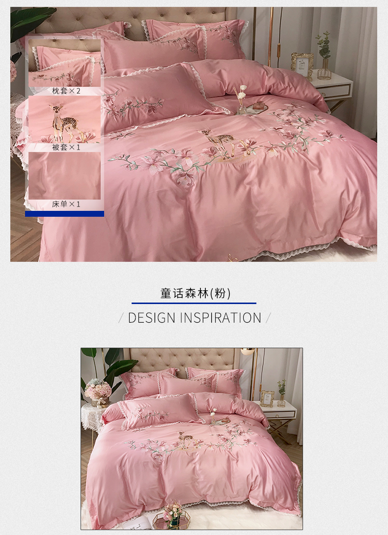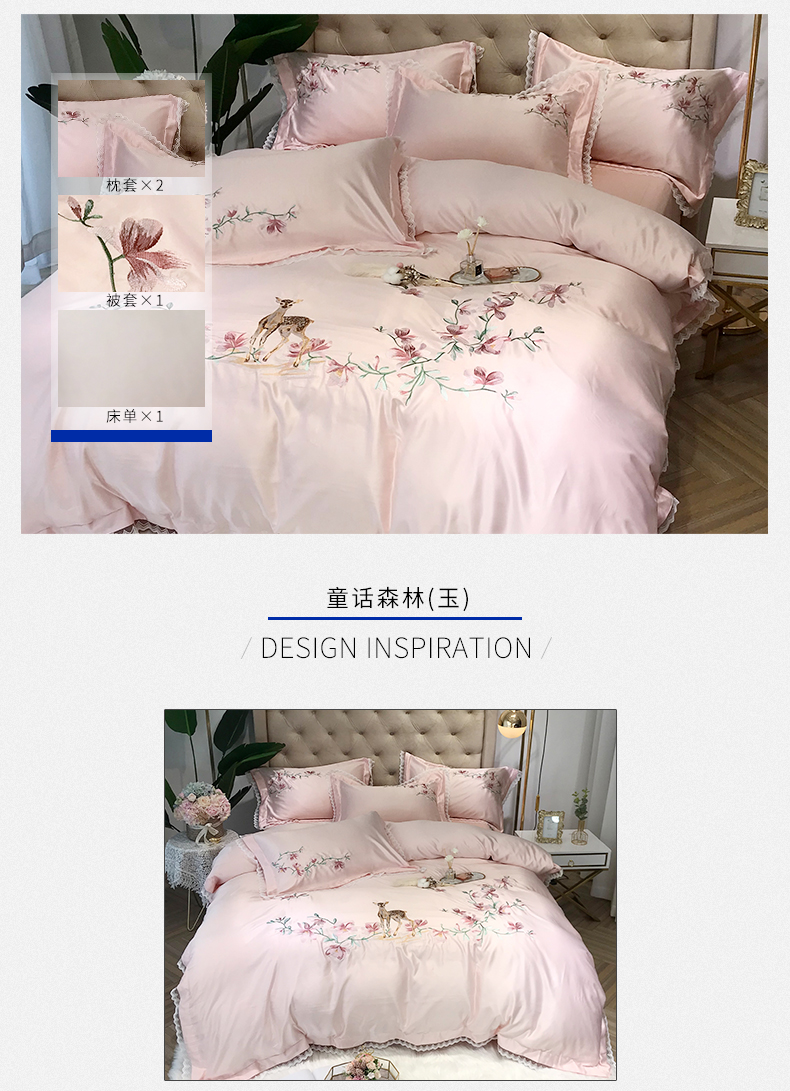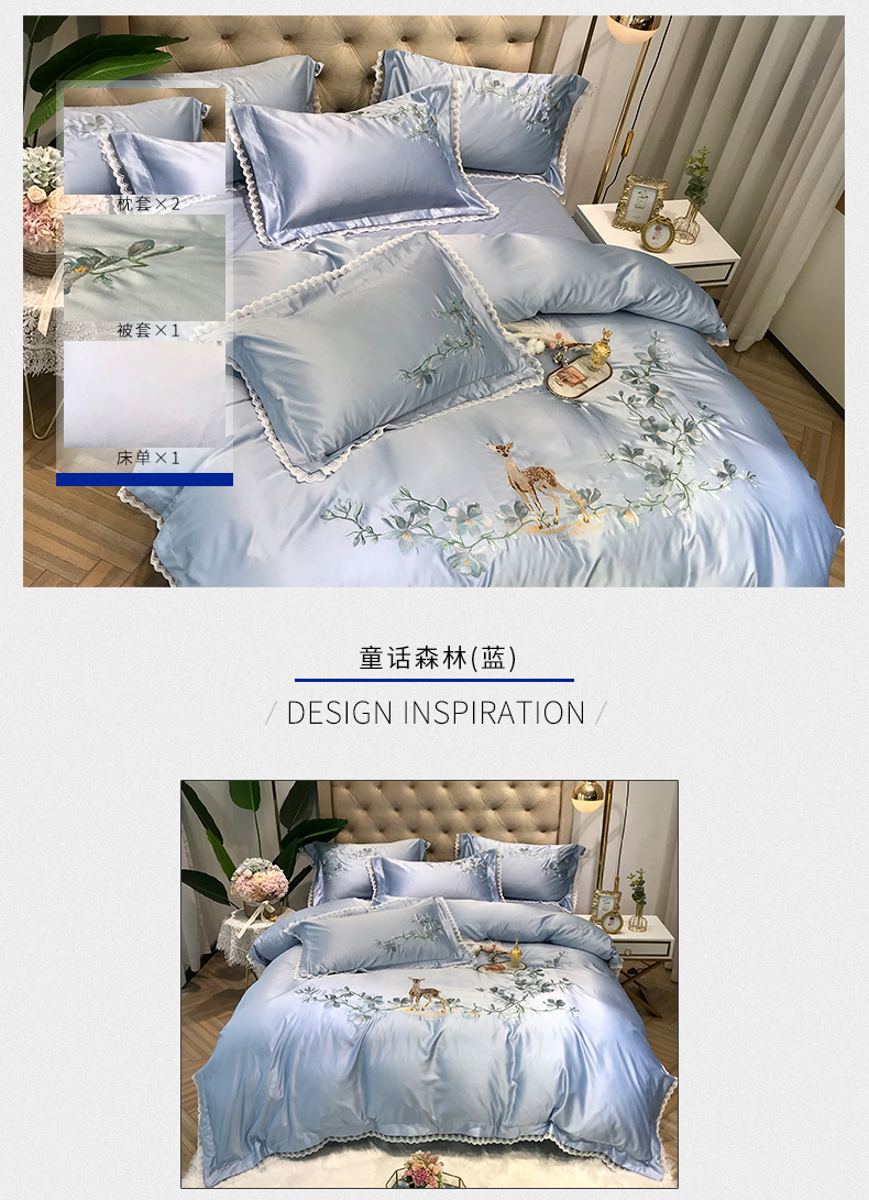My Side 2020春夏新品60支纱刺绣工艺四件套 仿真丝面料床上用品4件套-童话森林