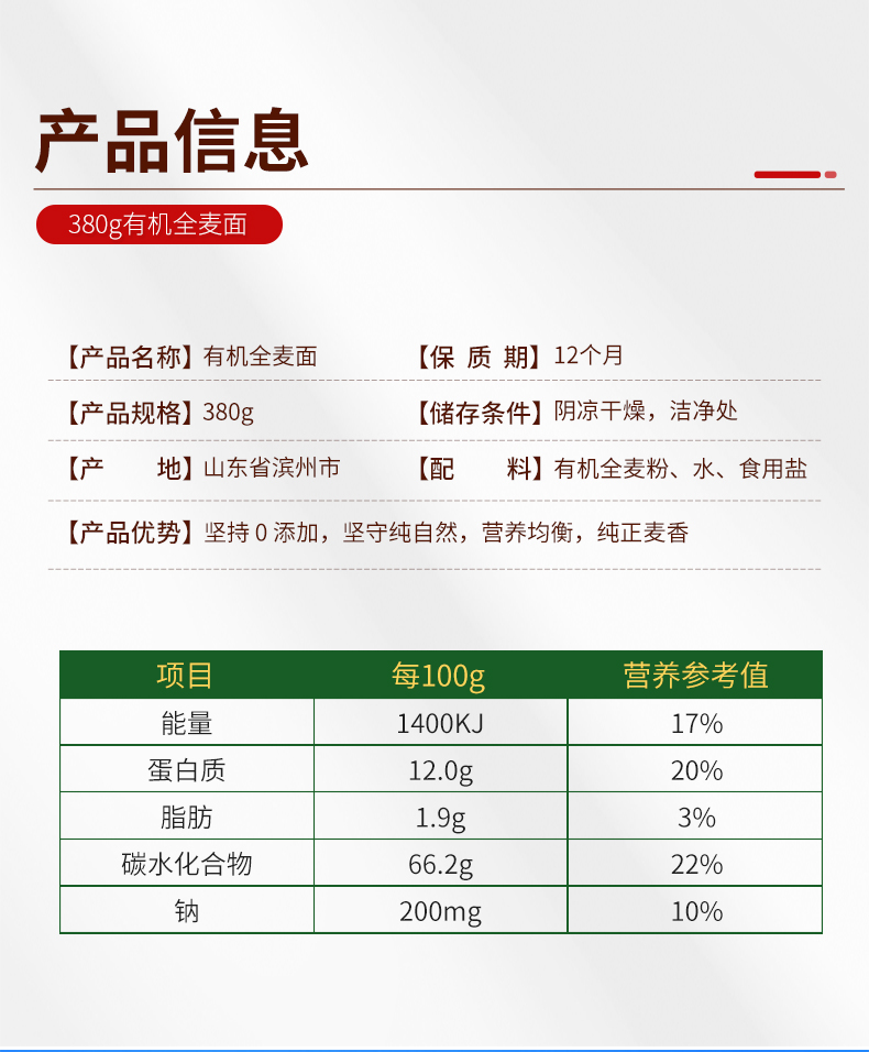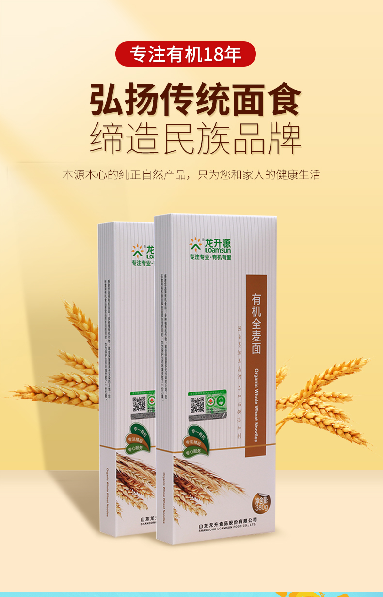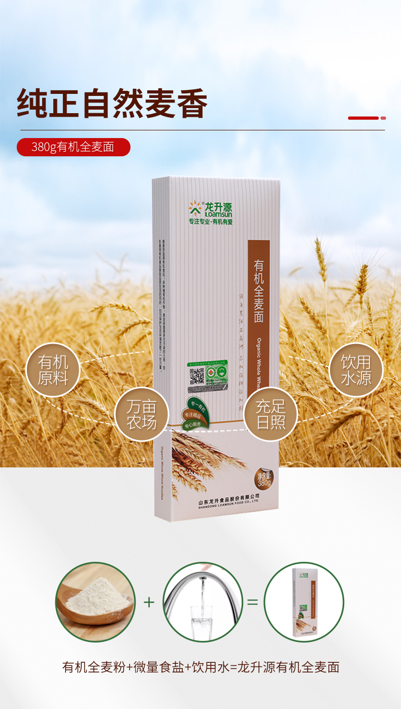 龙升源有机全麦面380g/盒