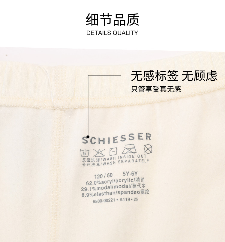 【暖柔保暖单裤】SCHIESSER德国舒雅男童保暖厚型单保暖裤保暖打底最佳选择37/25300Y