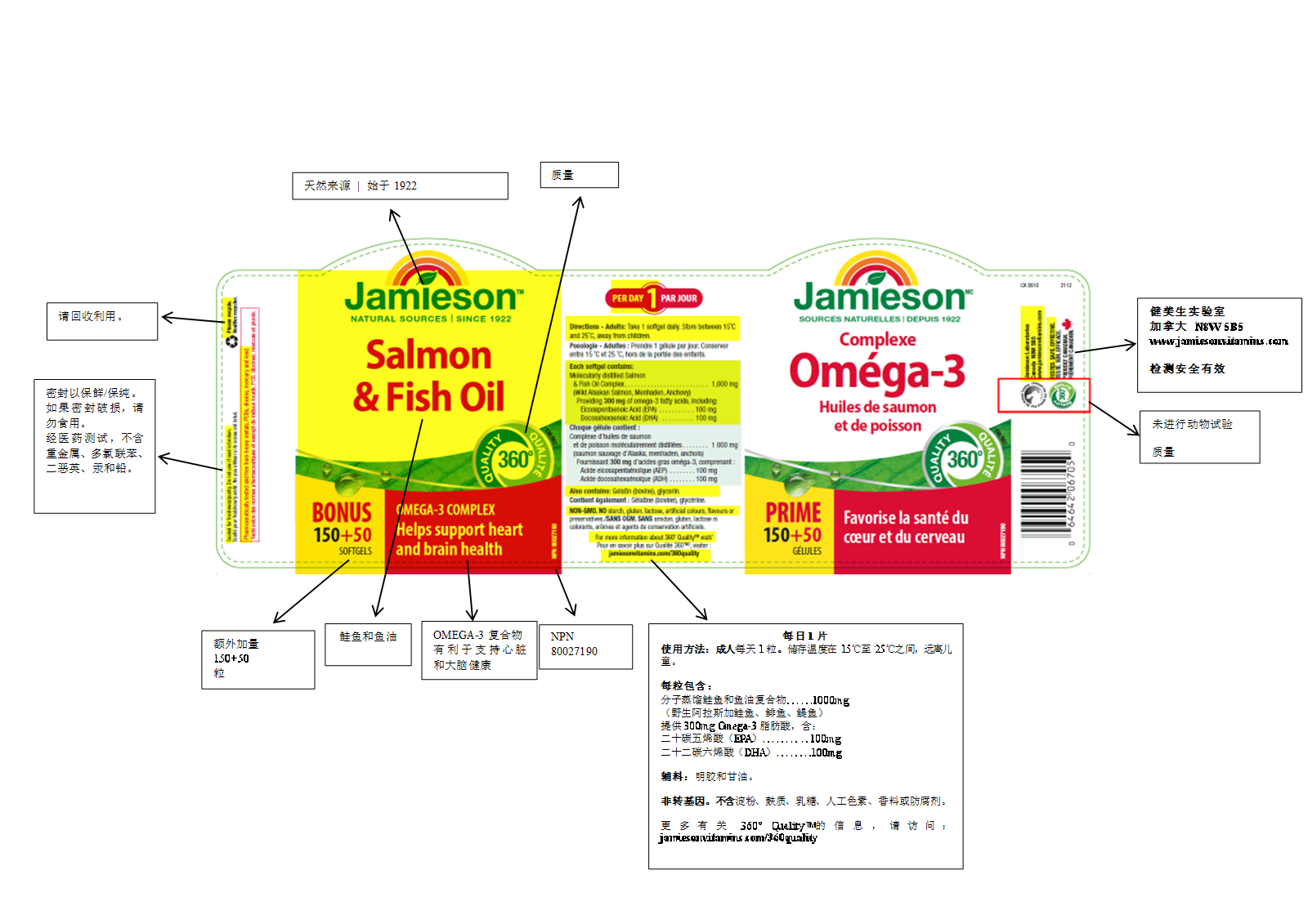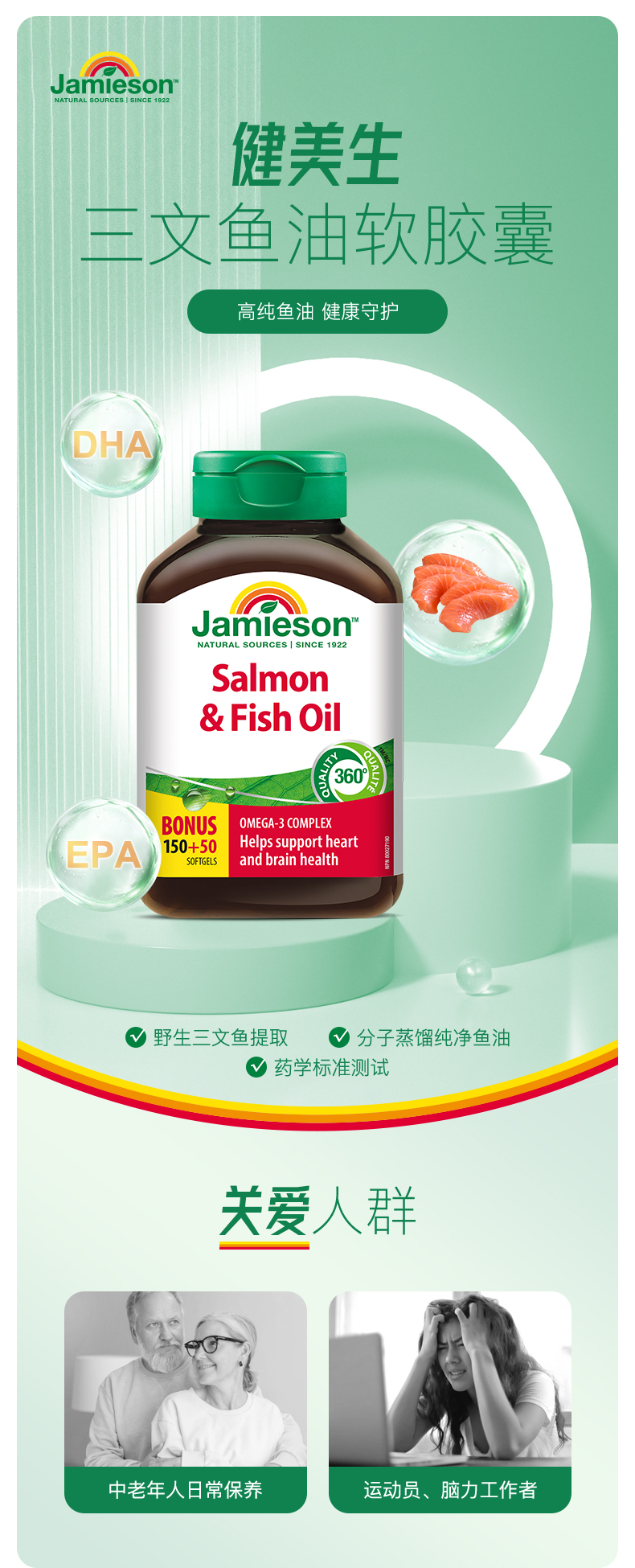 【分销】Jamieson健美生三文鱼油软胶囊200粒欧米伽3深海鱼油omega3中老年成人健美生