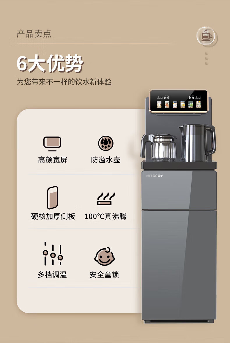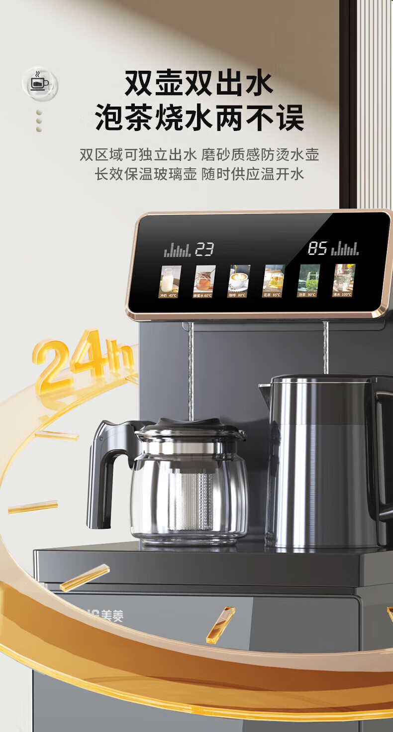 美菱(MeiLing)茶吧机 家用办公室立式饮水机 大屏双温显多档调温双壶配置 防溢防干烧 【童锁+防溢+遥控】A071温热型/冷热型