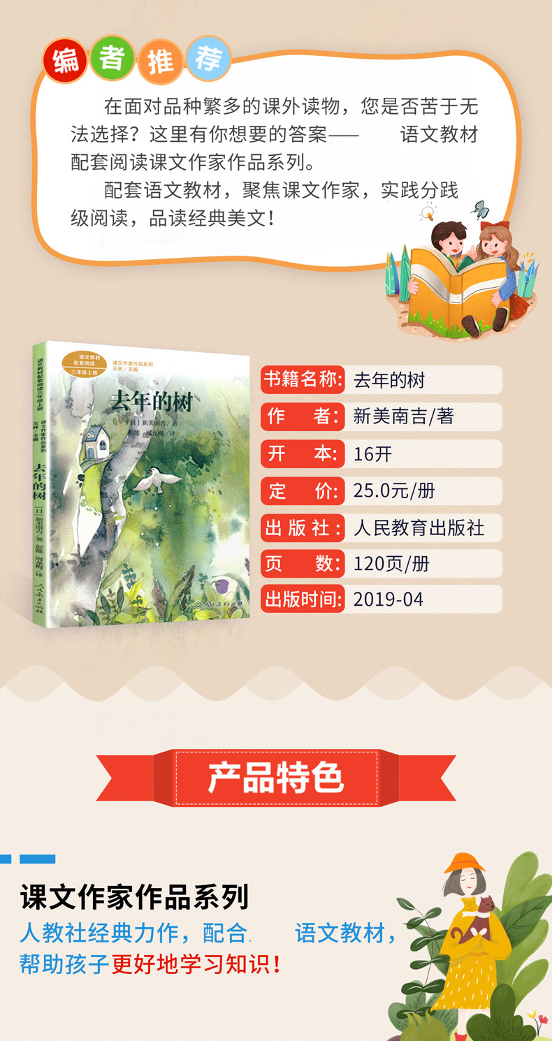 三年级课外书必读老师推荐上册课文作家作品系列全套人教版3 胡萝卜先生的长胡子去年的树在牛肚子里旅行金色的草地人民教育出版社