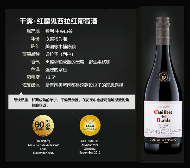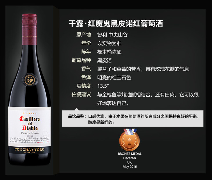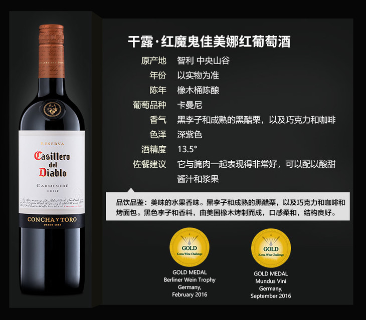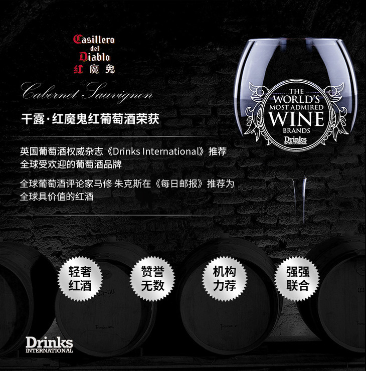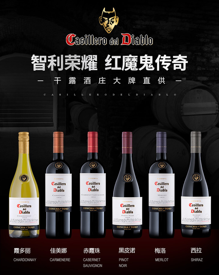 【干露红魔鬼】白标葡萄酒_750ml(赤霞珠/梅洛/长相思/黑皮诺/佳美娜/霞多丽)