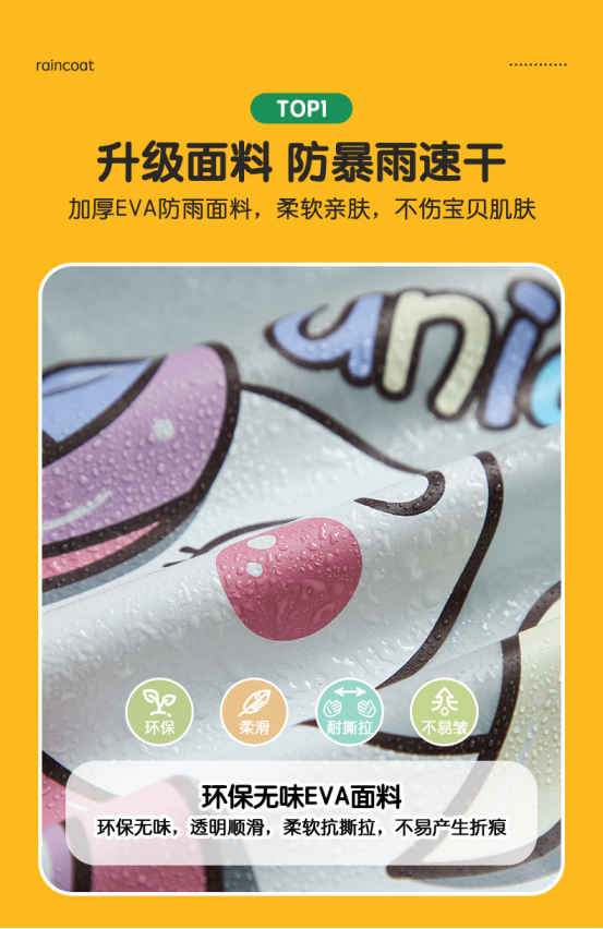加厚EVA防雨面料,柔软亲肤,不伤宝贝肌肤!