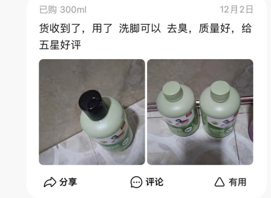 满满的好评 给我老公试用了几天后 发现脚部的异味明显减少了 真的非常惊喜!