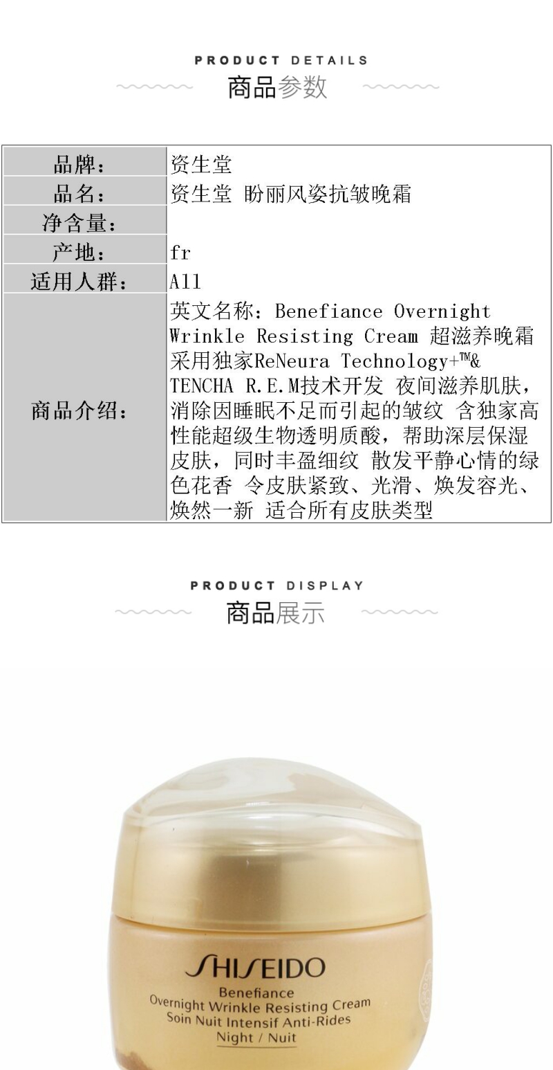 【YZ】Shiseido资生堂盼丽风姿抗皱晚霜50ml滋润保湿紧致肌肤
