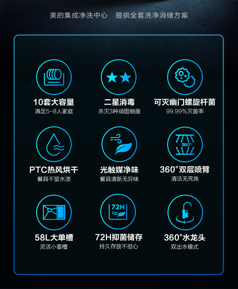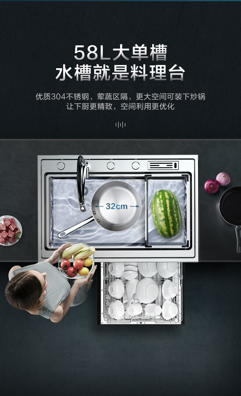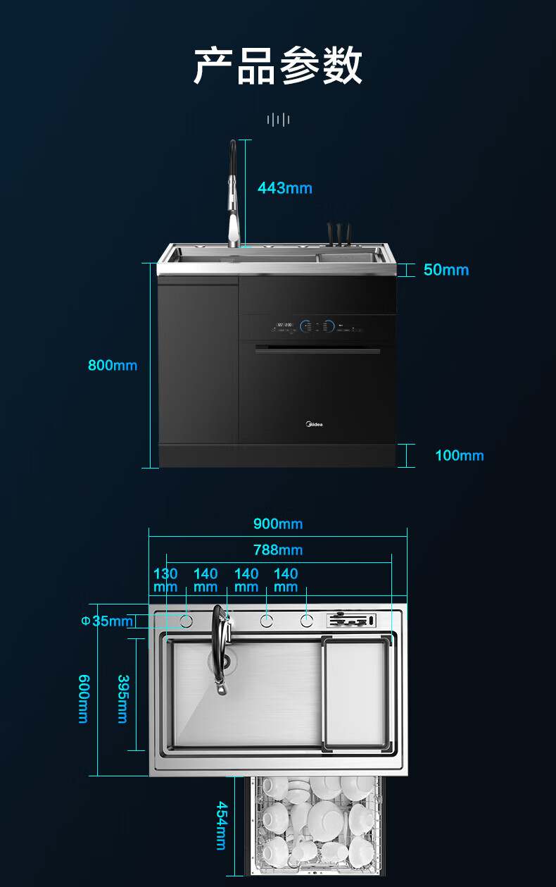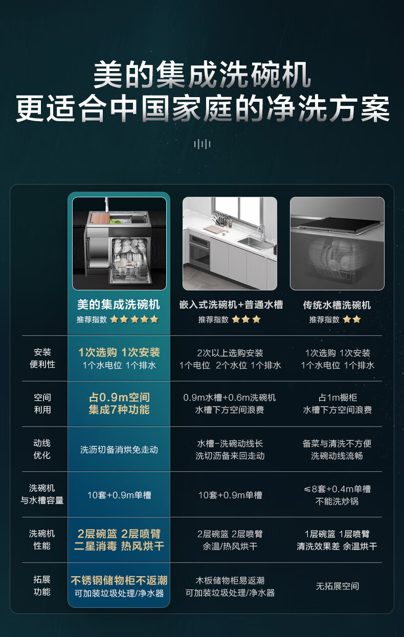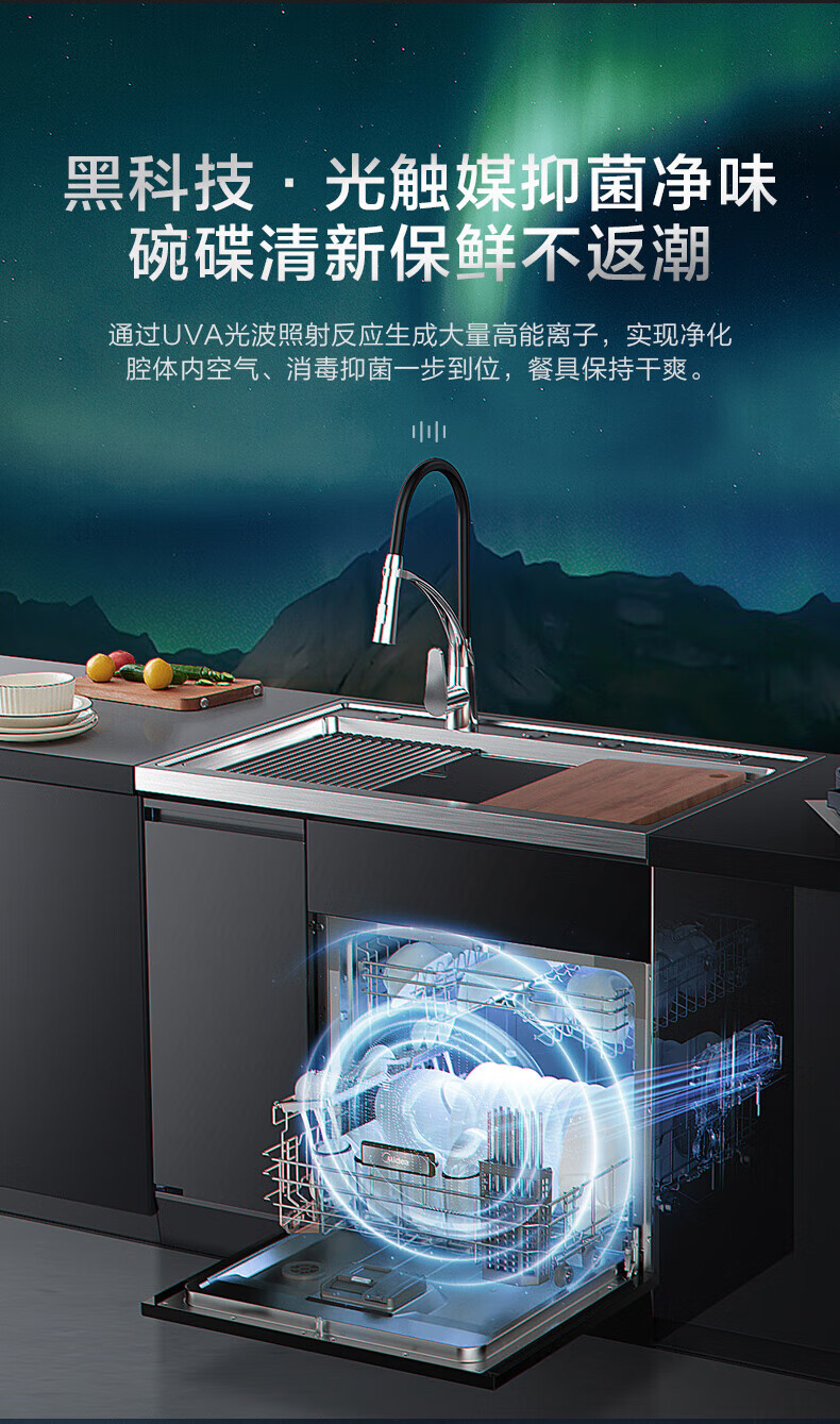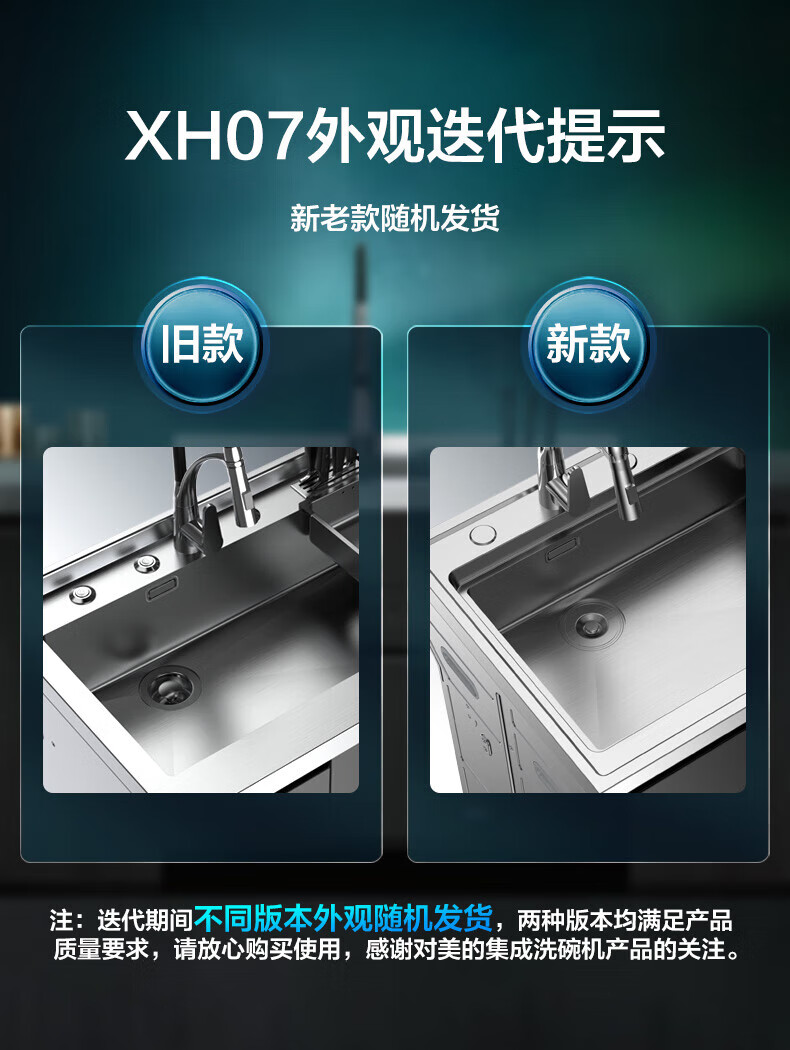 美的(Midea) 集成水槽洗碗机一体 嵌入式洗碗机集成净洗中心 二星消毒304不锈钢10套大容量极光 XH07