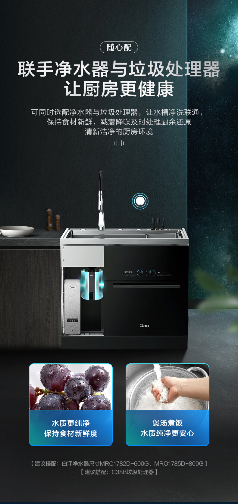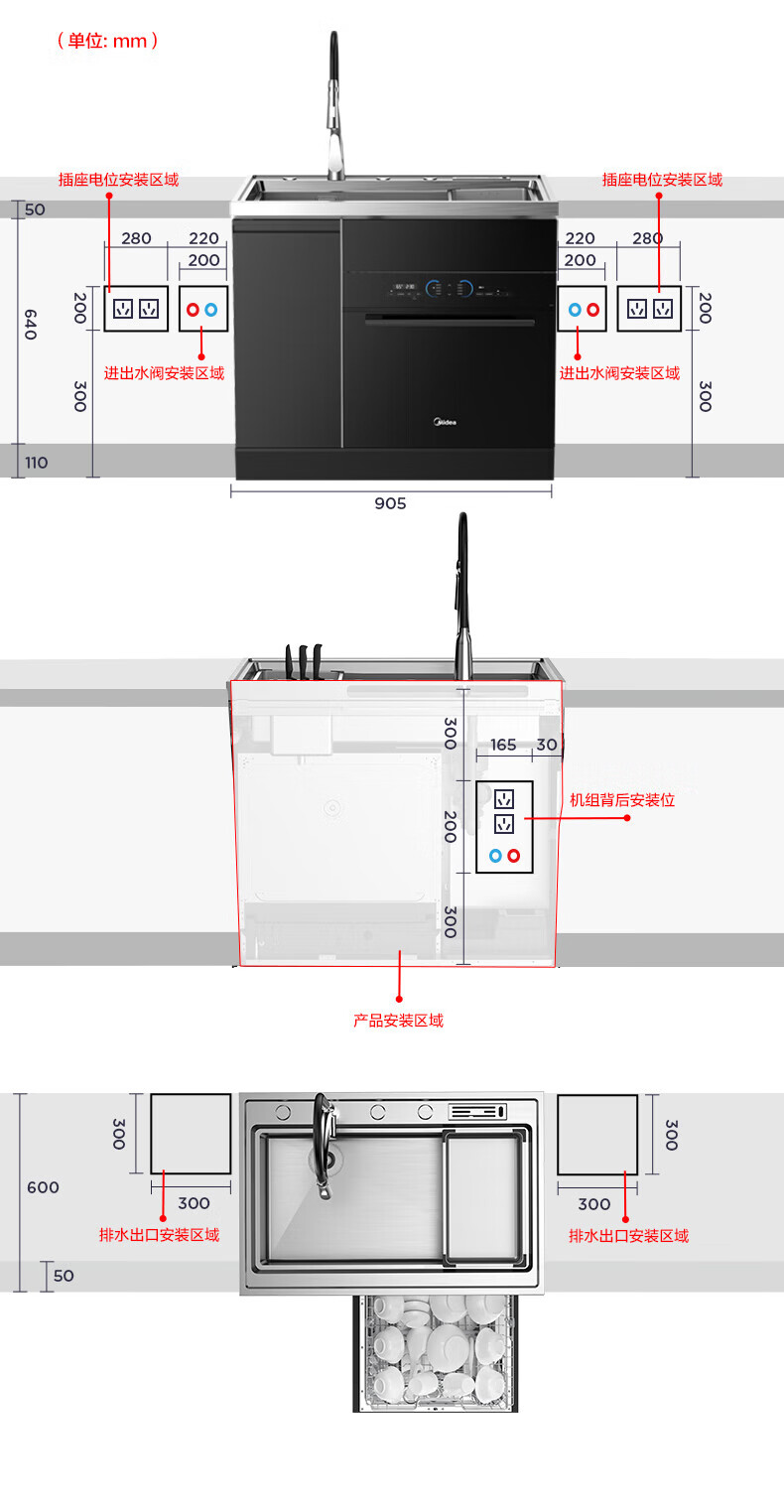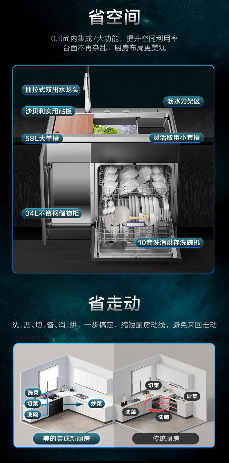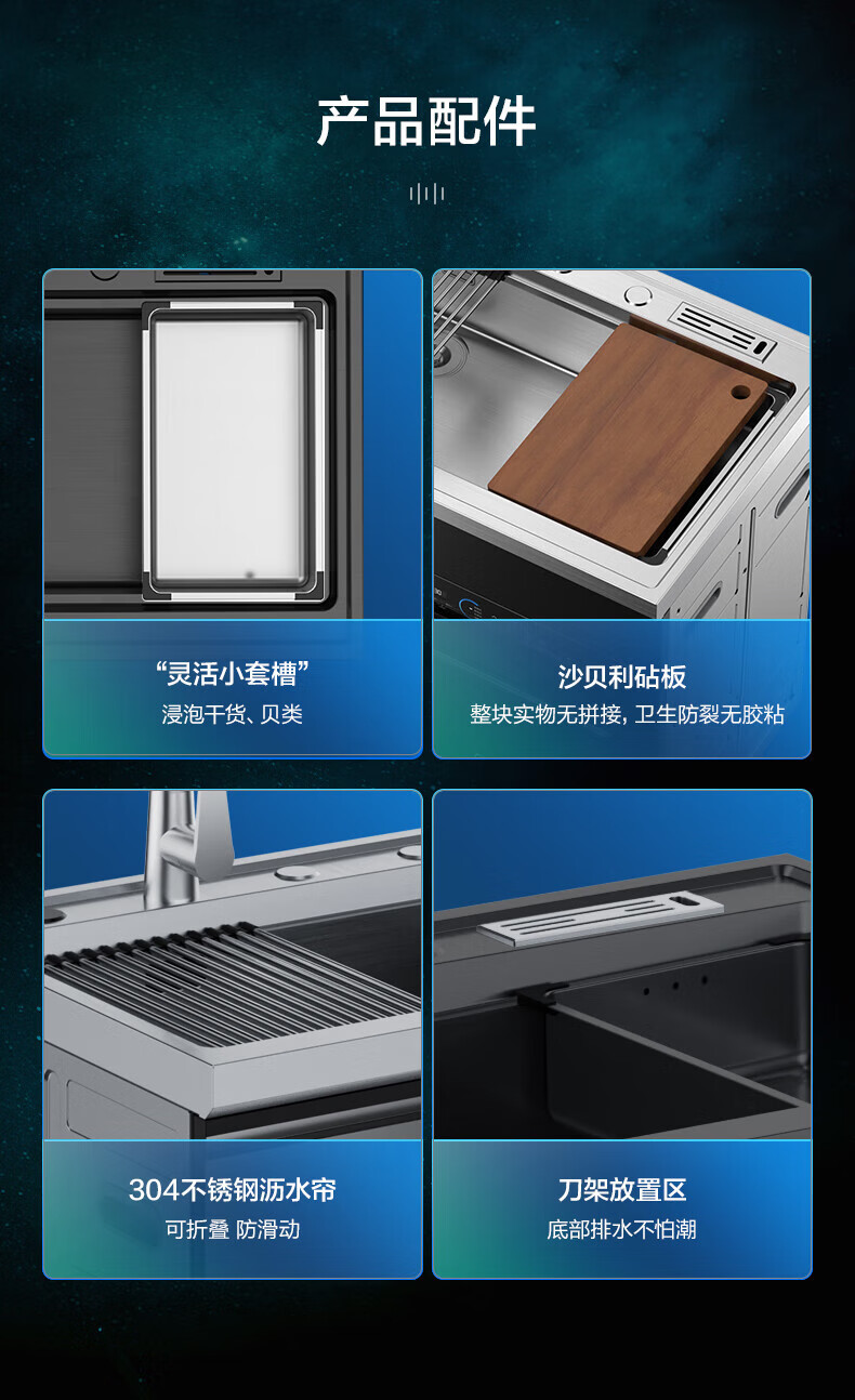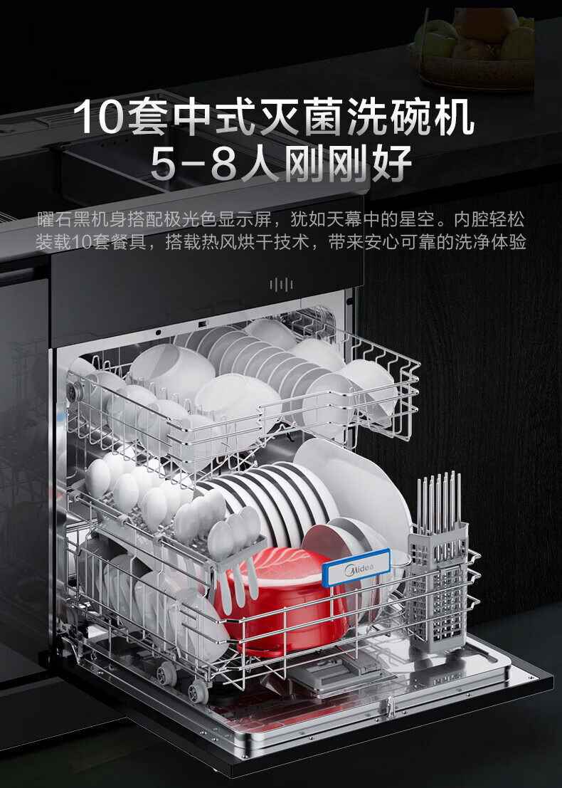 美的(Midea) 集成水槽洗碗机一体 嵌入式洗碗机集成净洗中心 二星消毒304不锈钢10套大容量极光 XH07