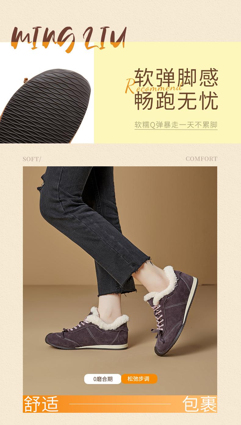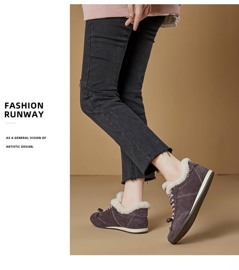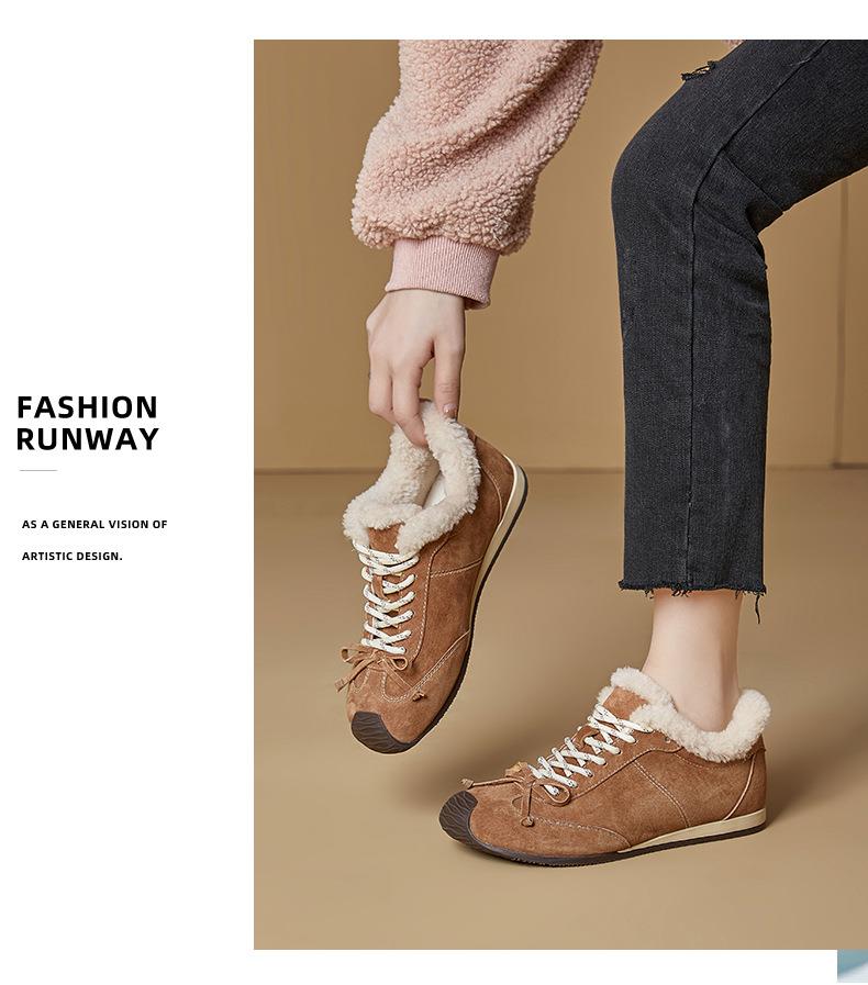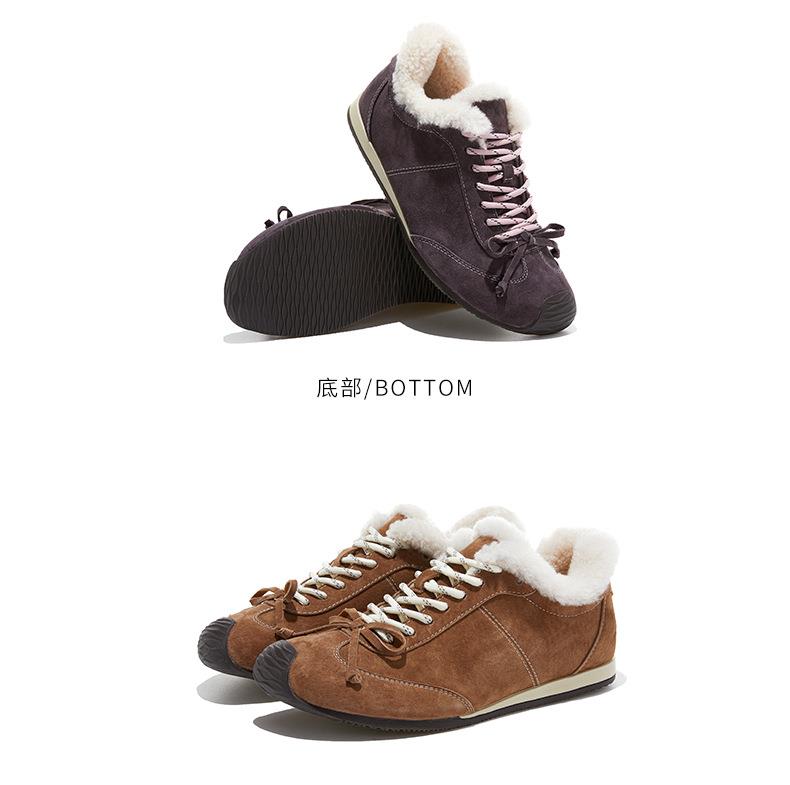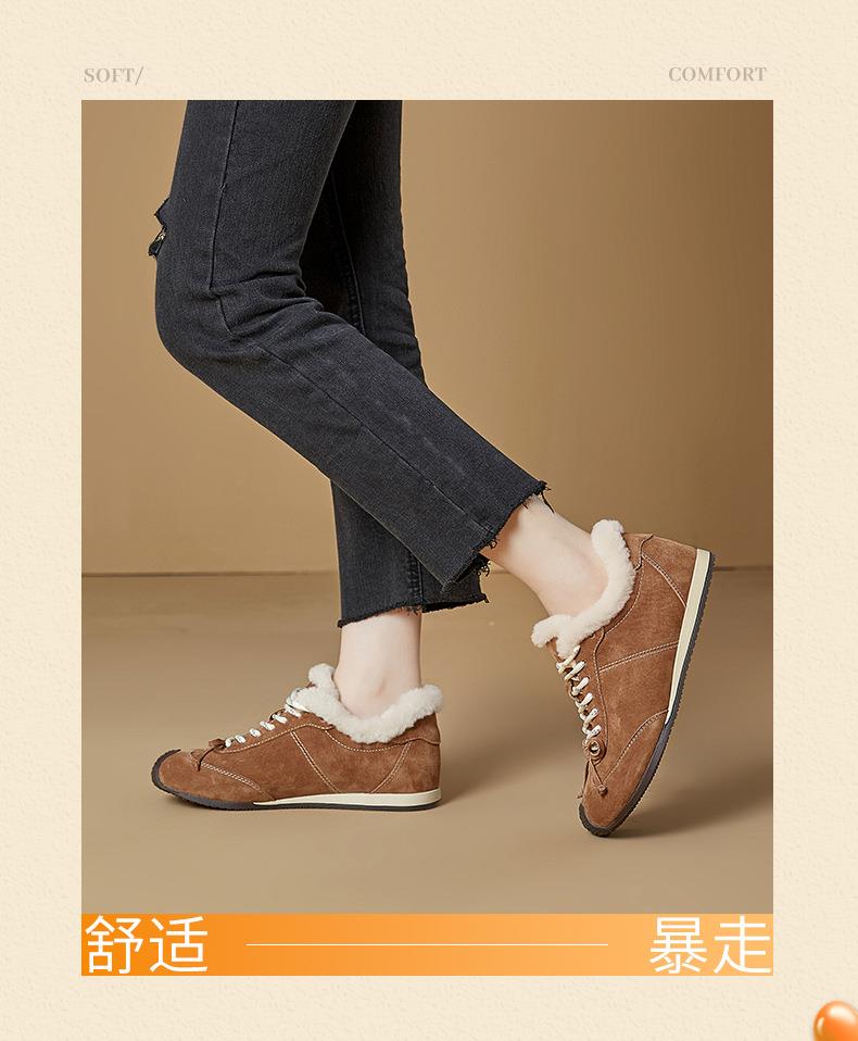 新款羊毛真皮阿甘鞋女2025冬季平底运动德训鞋休闲加绒保暖鞋子女