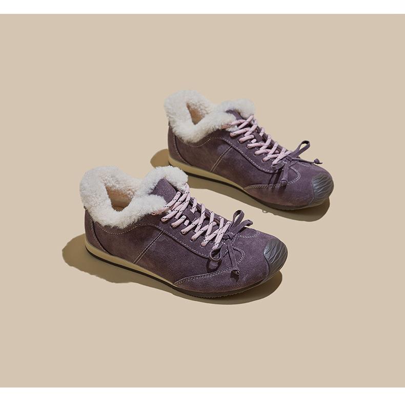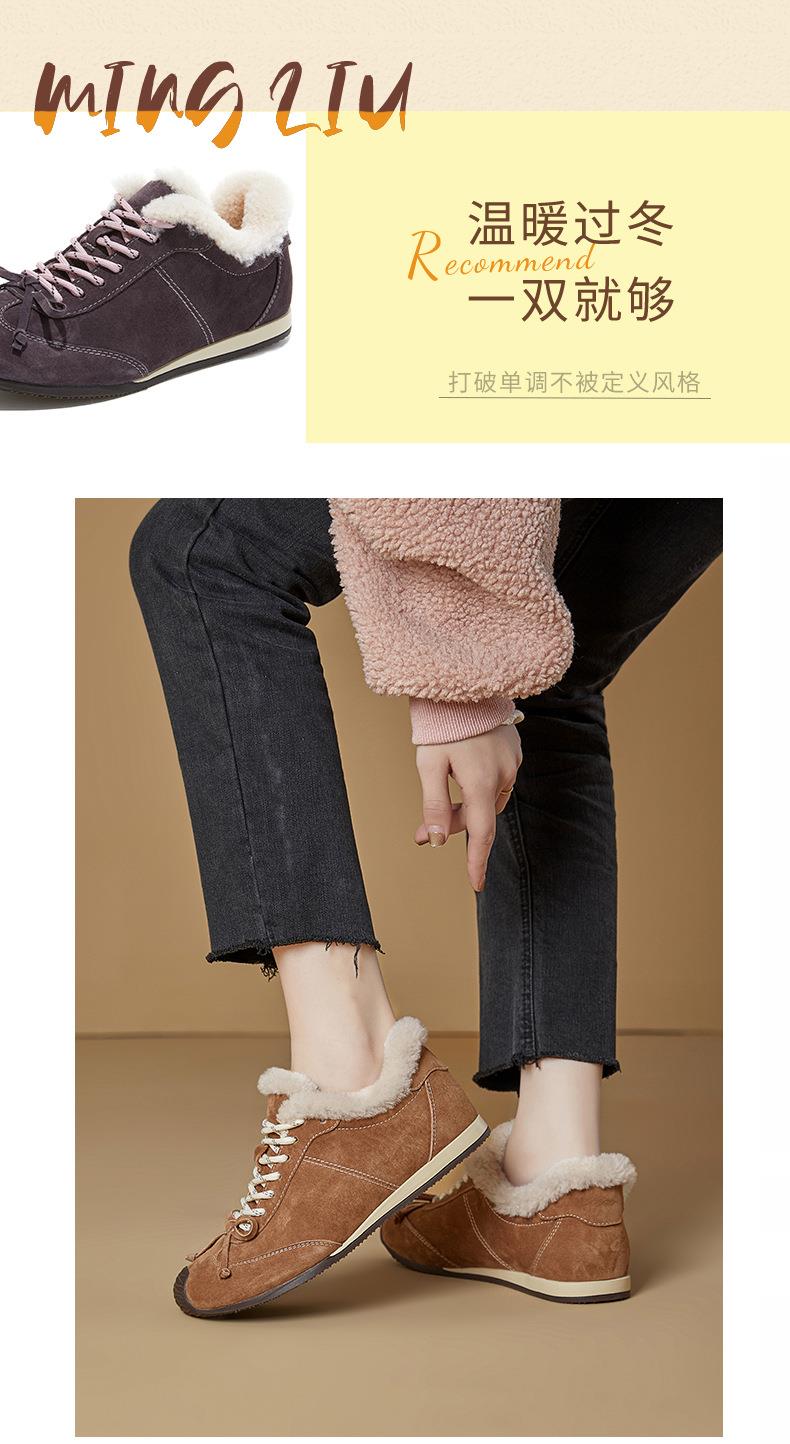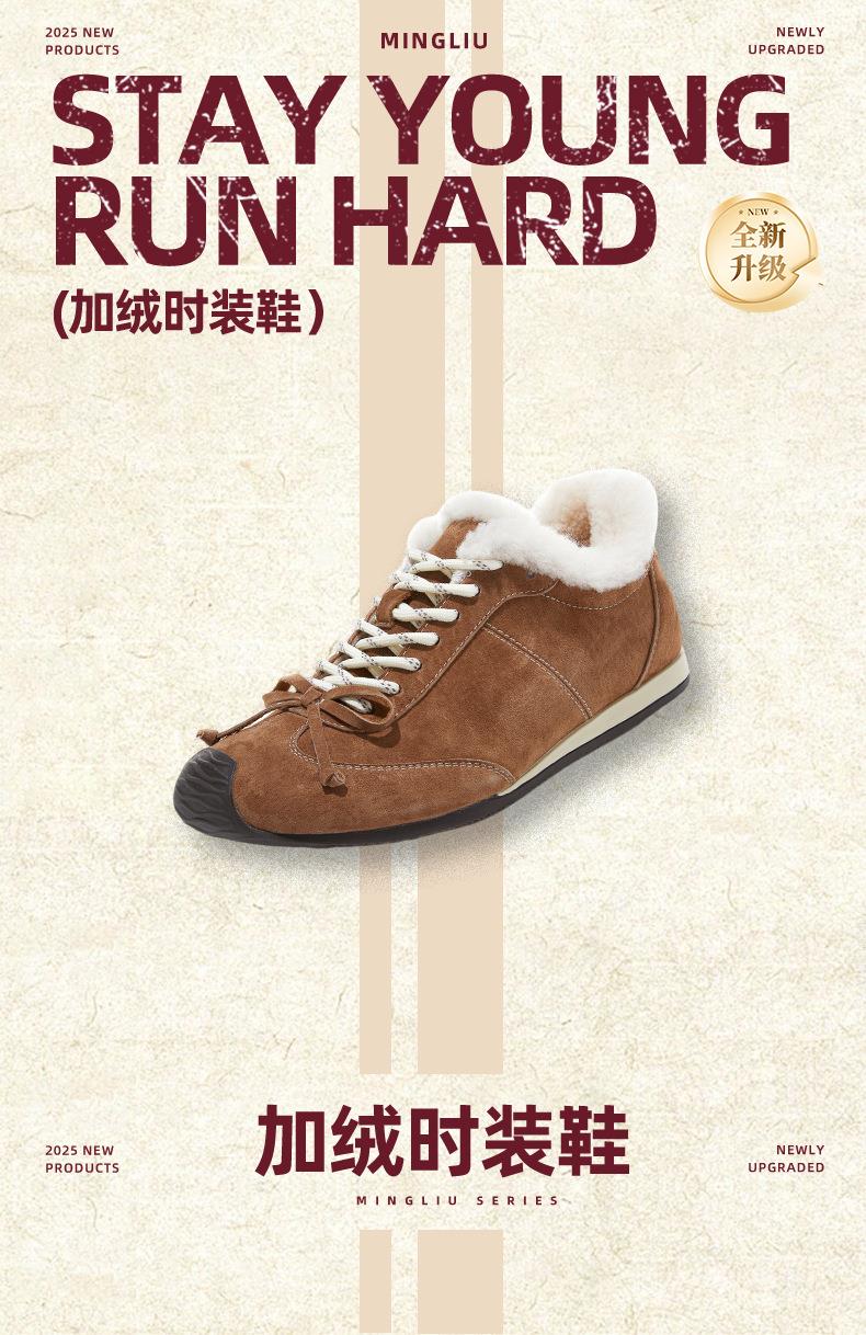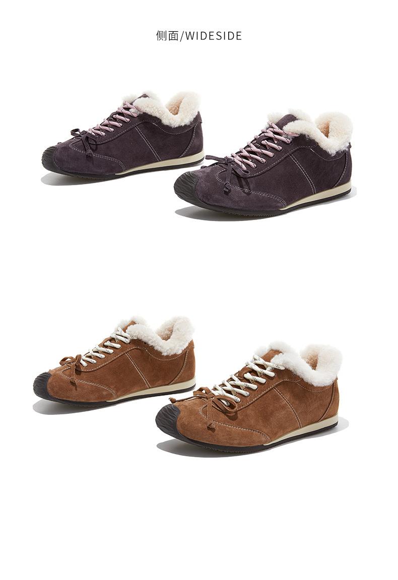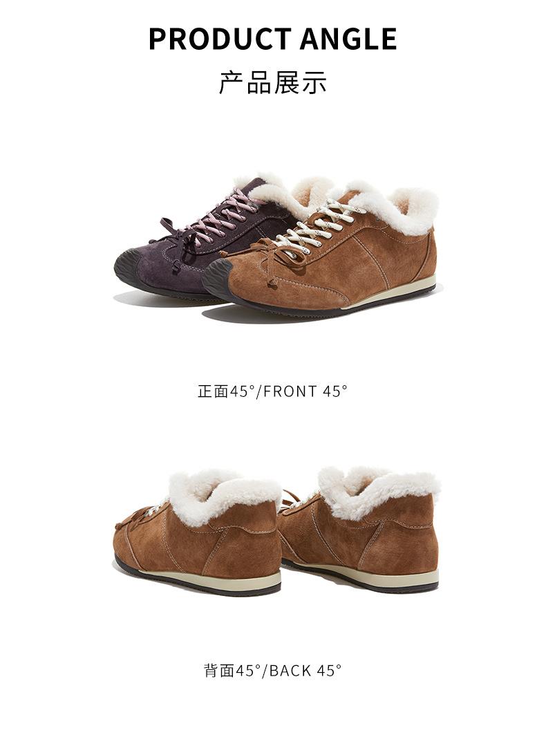 新款羊毛真皮阿甘鞋女2025冬季平底运动德训鞋休闲加绒保暖鞋子女