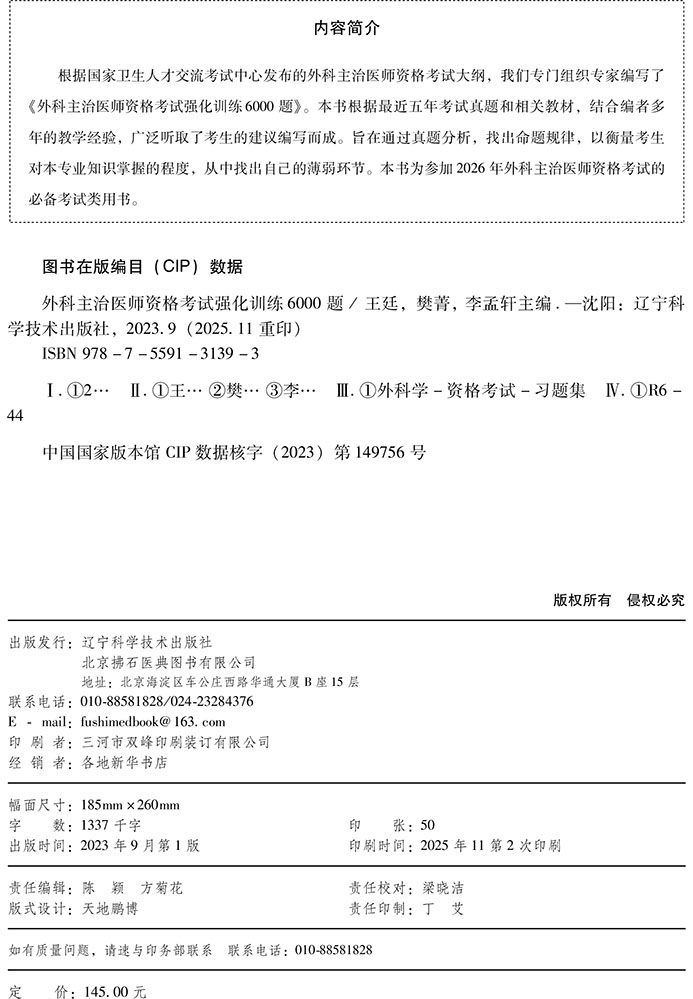 2026外科主治医师资格考试强化训练6000题 全国初中级卫生专业技术资格考试辅导丛书 王廷 樊菁 李孟轩 主编 辽宁科学技术出版社