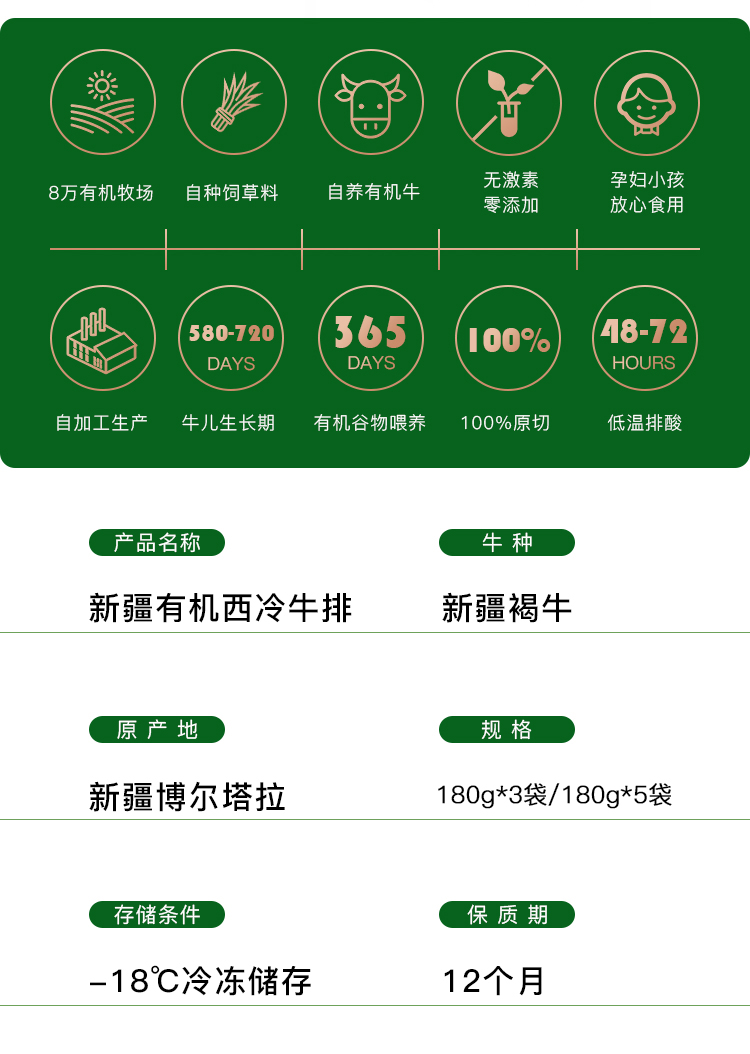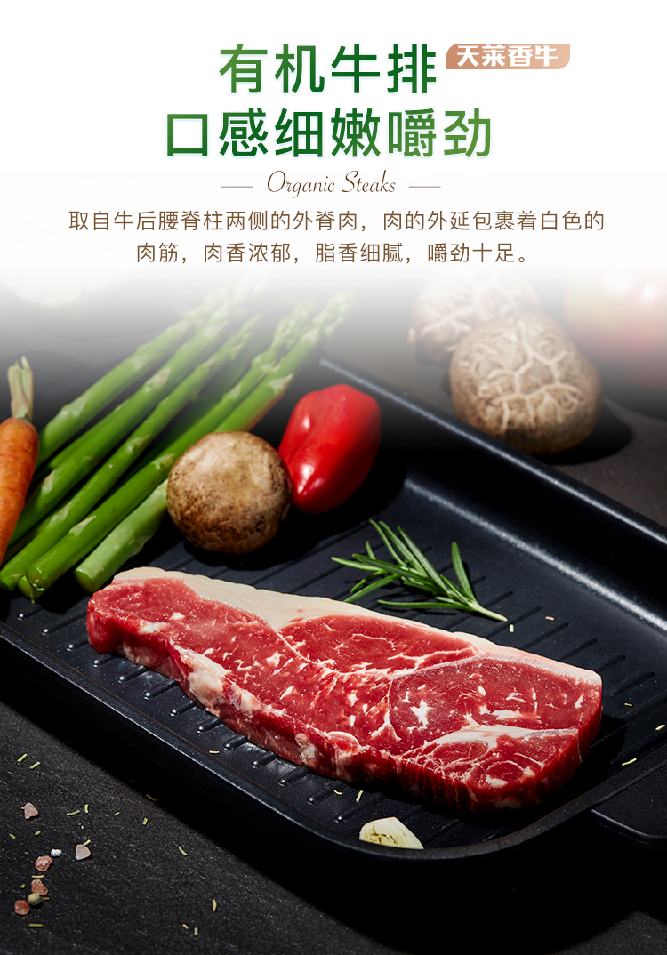 国产天莱香牛新疆有机西冷牛排冻品180g*5袋