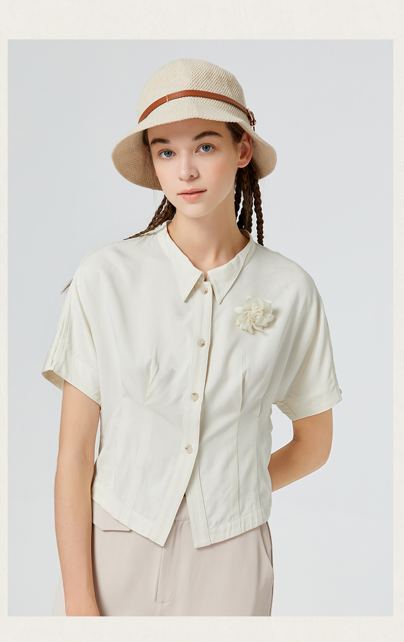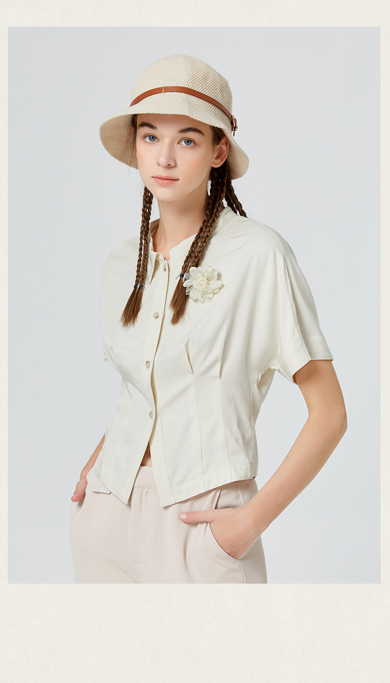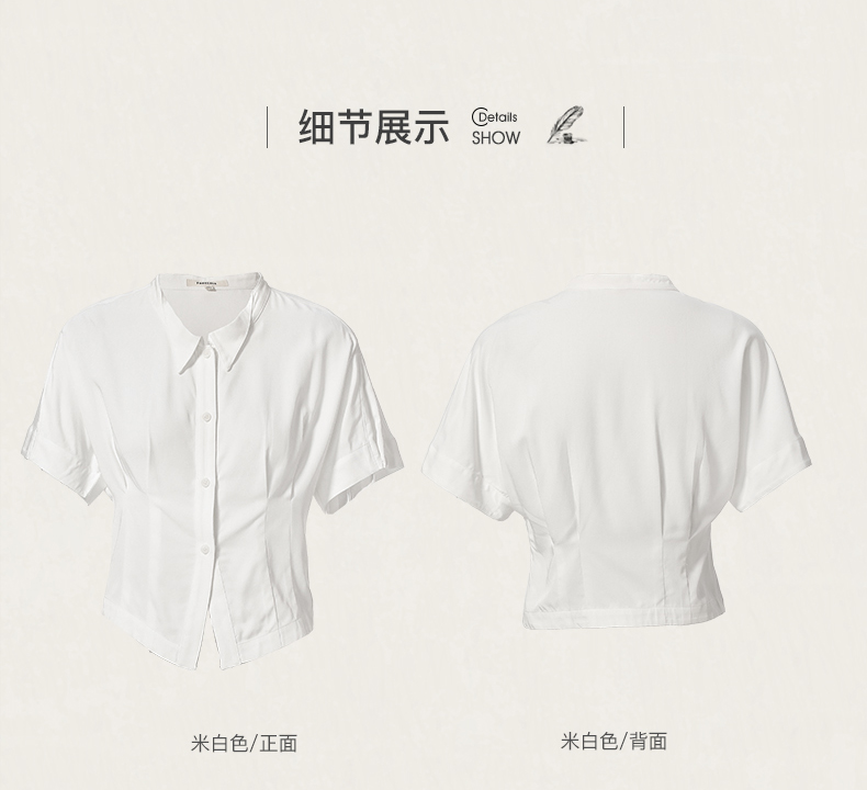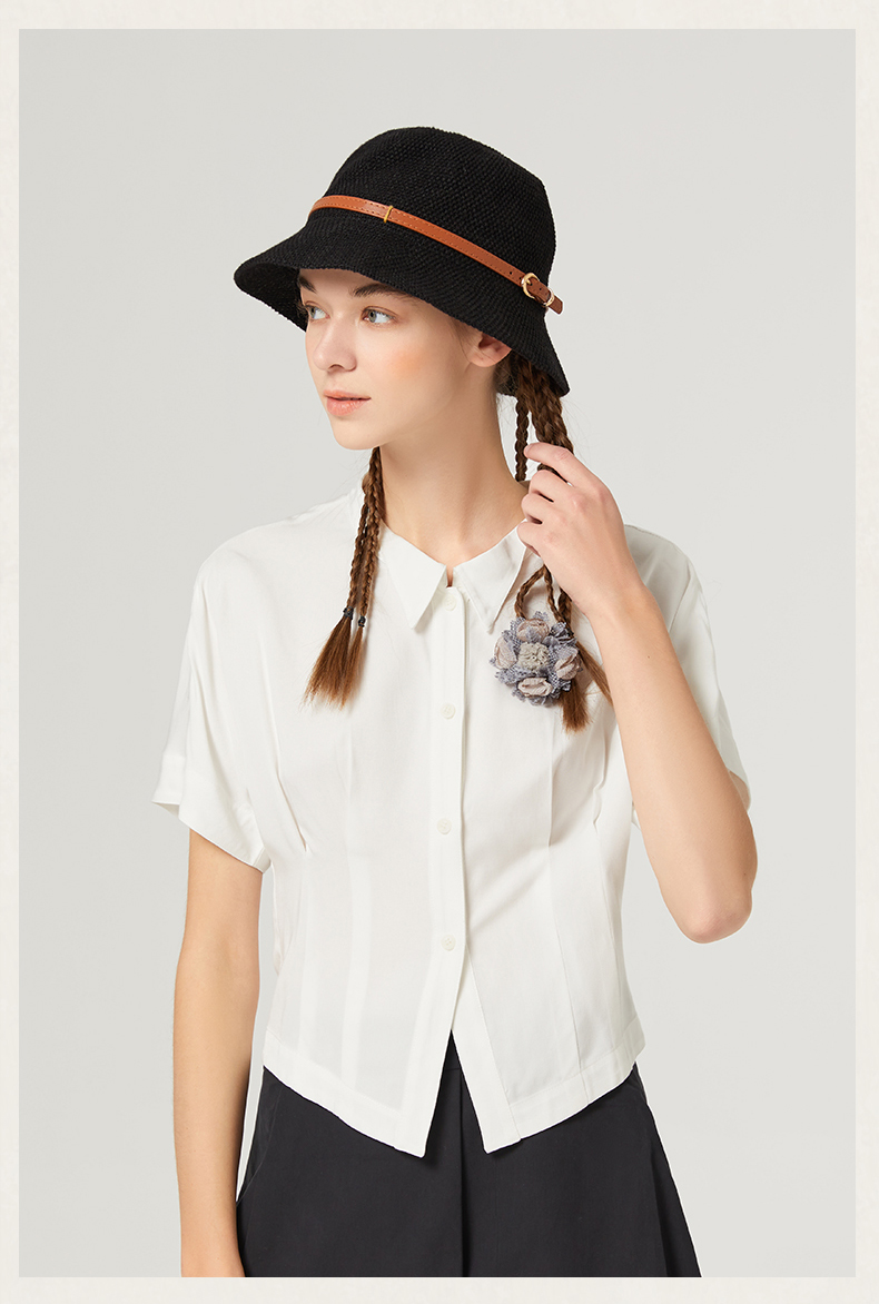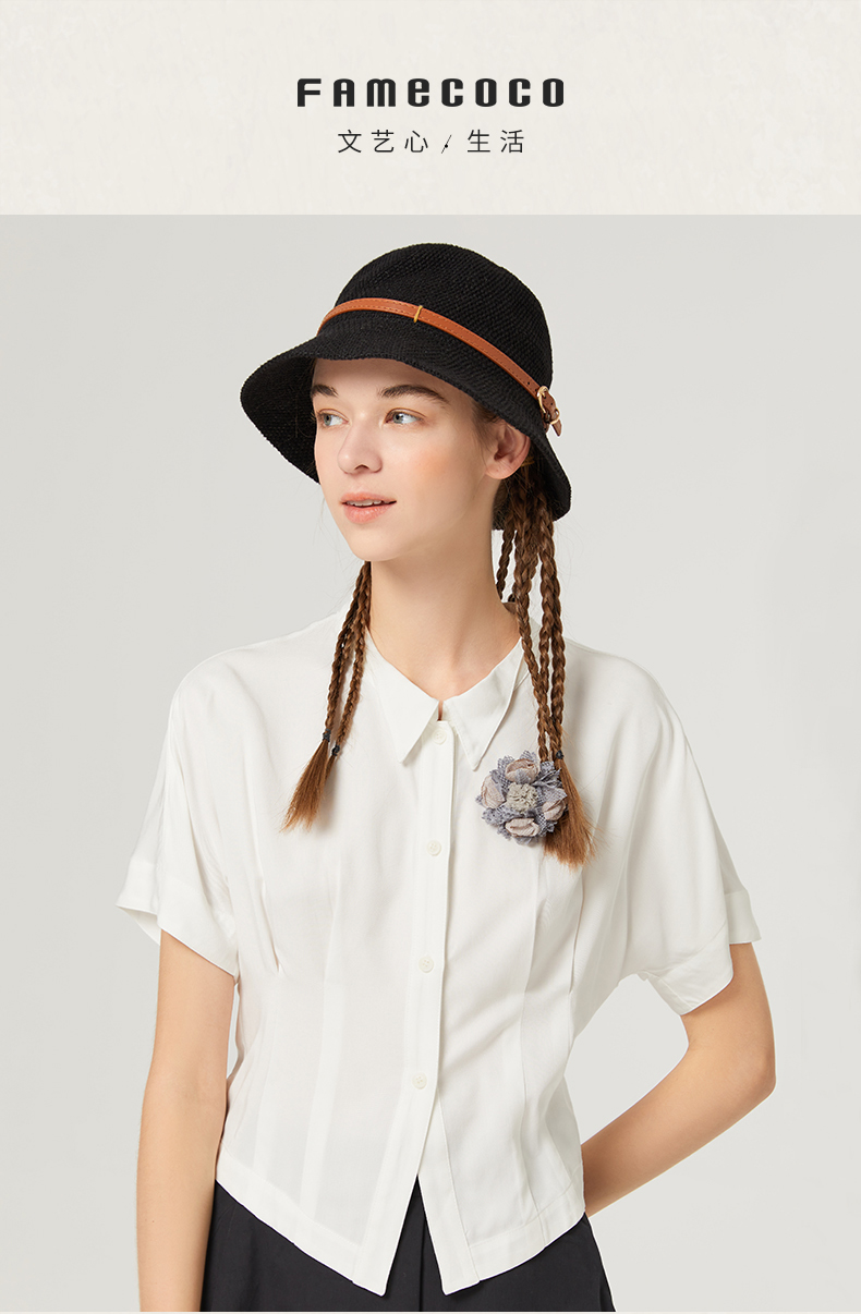 Famecoco范可儿短袖夏季女衬衫修身夏季新款洋气高端别致小衫F223BH011