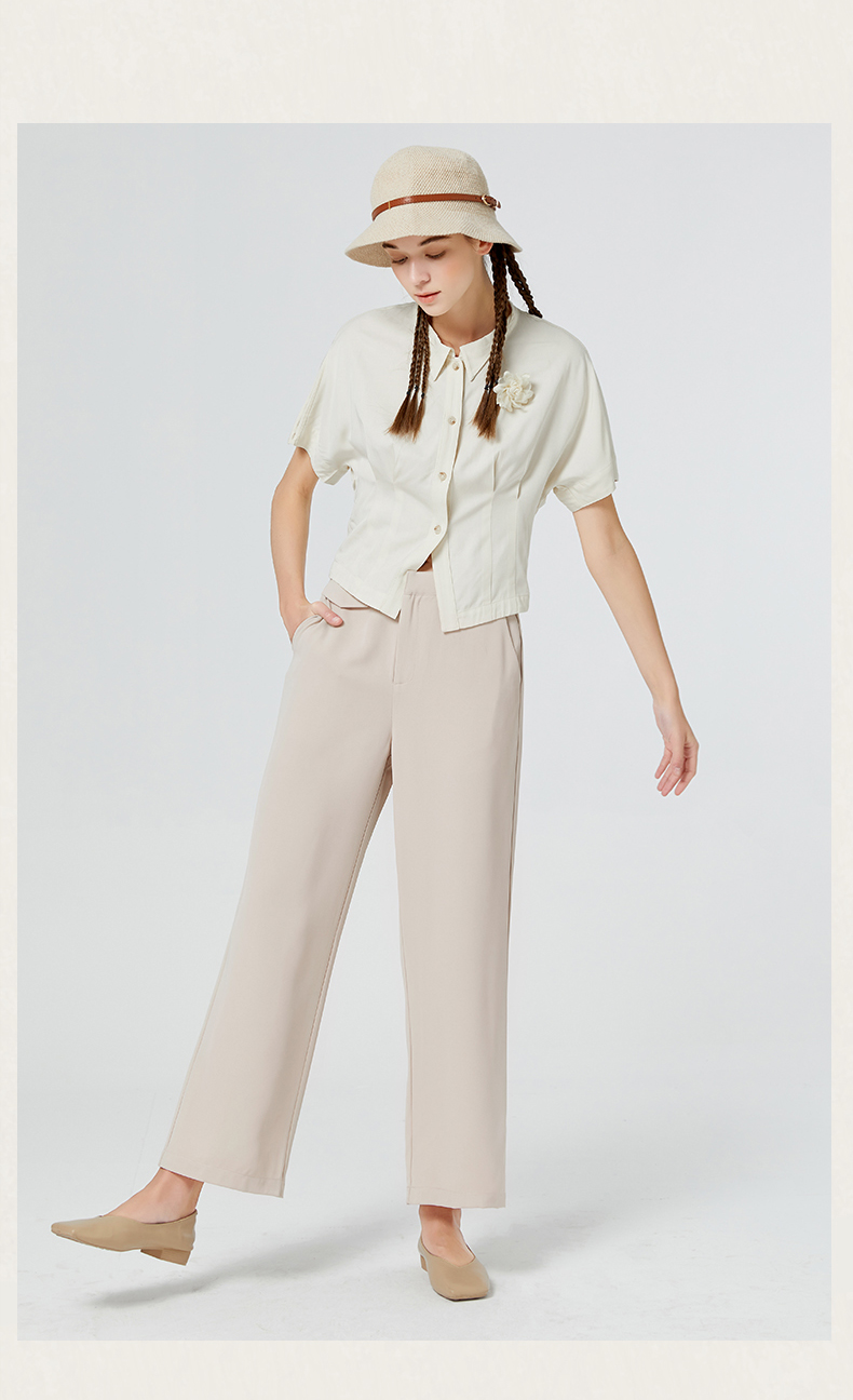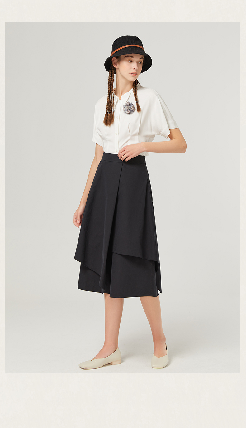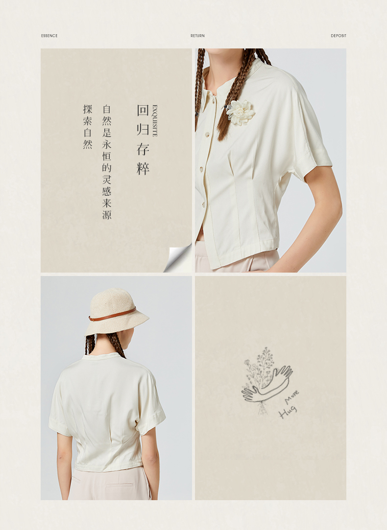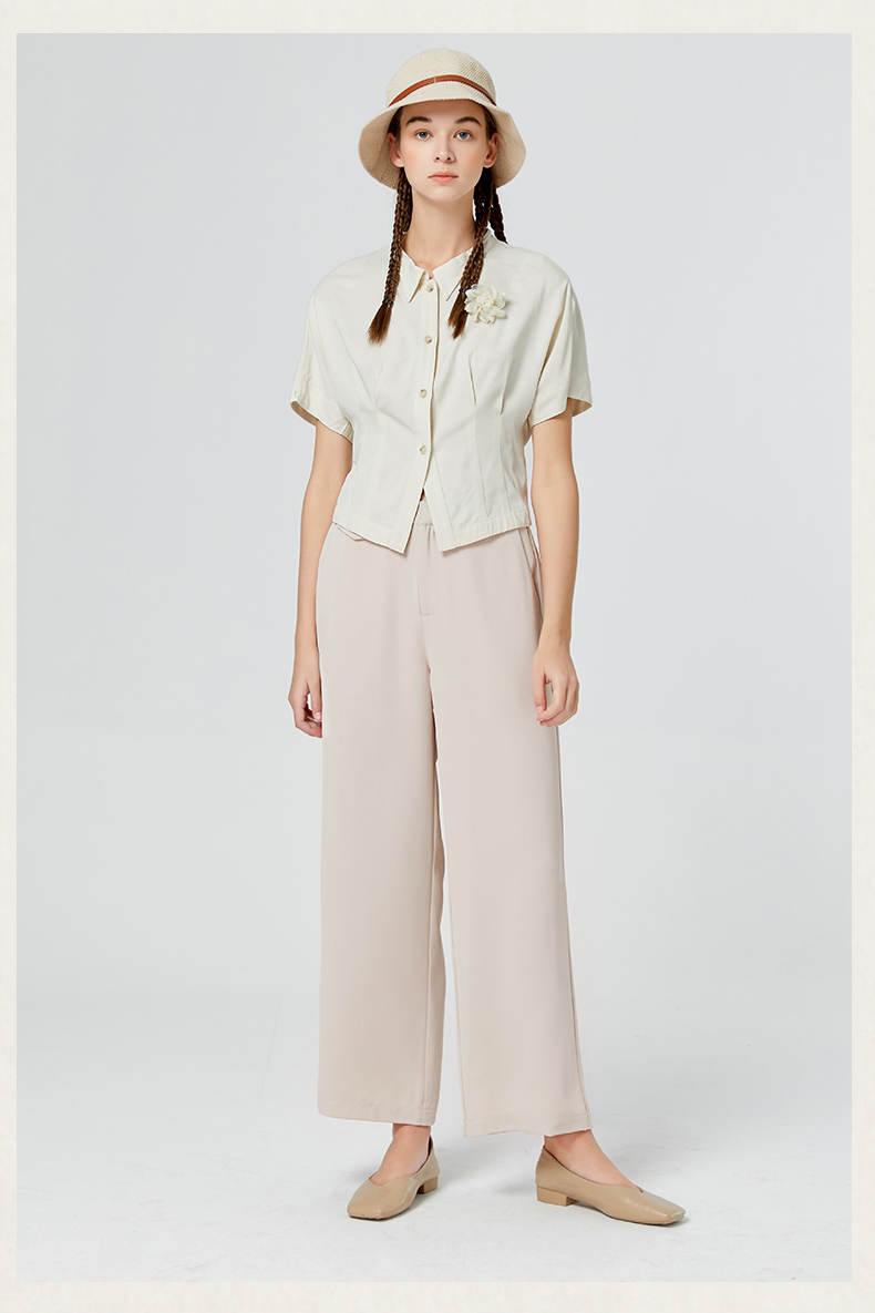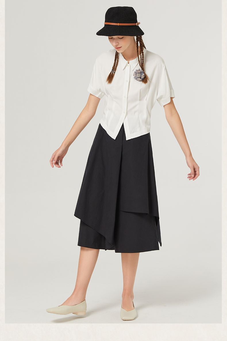 Famecoco范可儿短袖夏季女衬衫修身夏季新款洋气高端别致小衫F223BH011