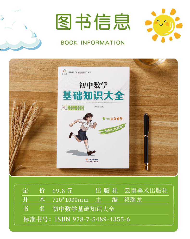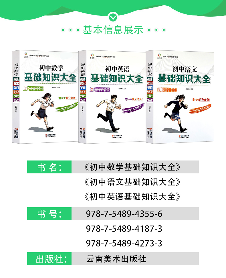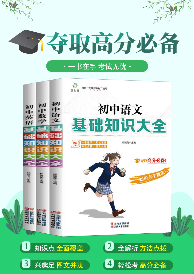 初中生语文数学英语基础知识大全手册全套3册人教版全国通用 中考总复习资料指南七八九年级考点同步解读初中知识点小册子总结辅导