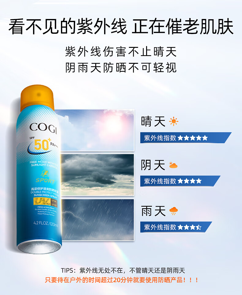 高姿倍护清爽防晒喷雾SPF50+PA+++120ml