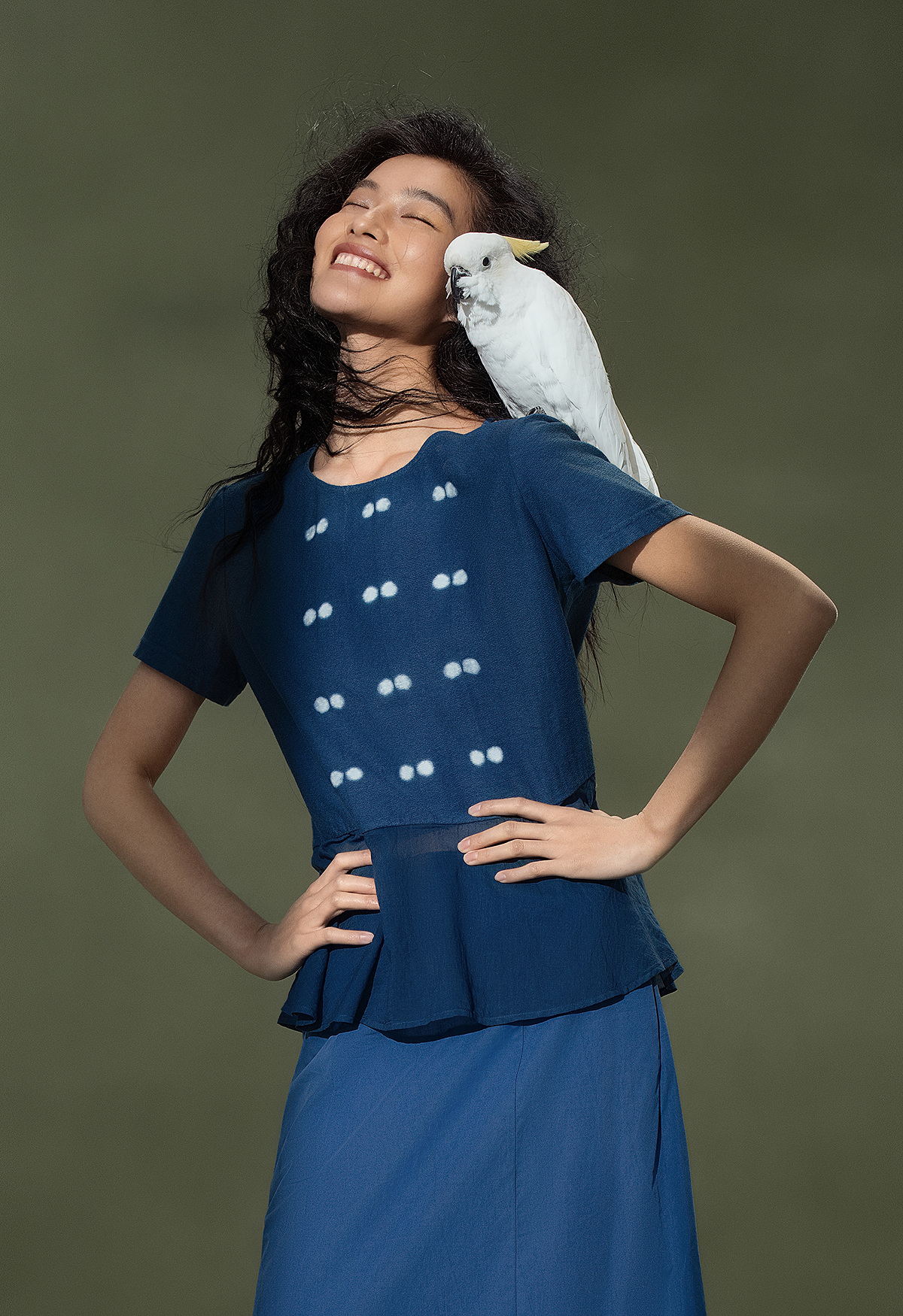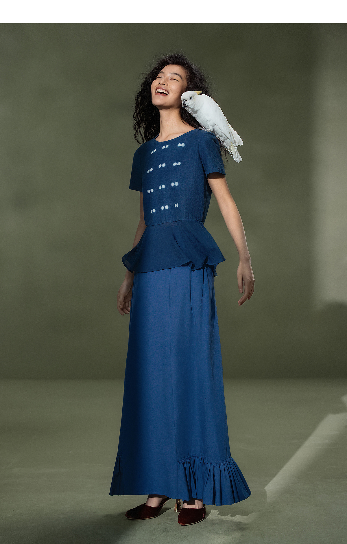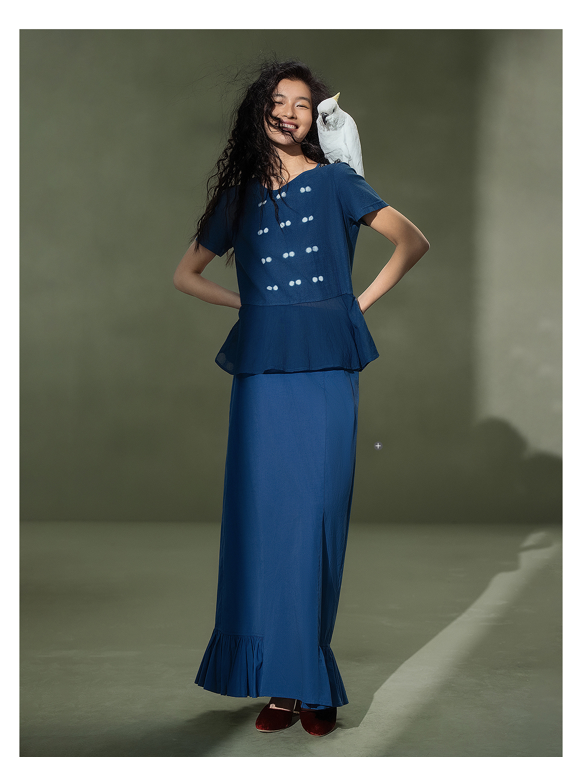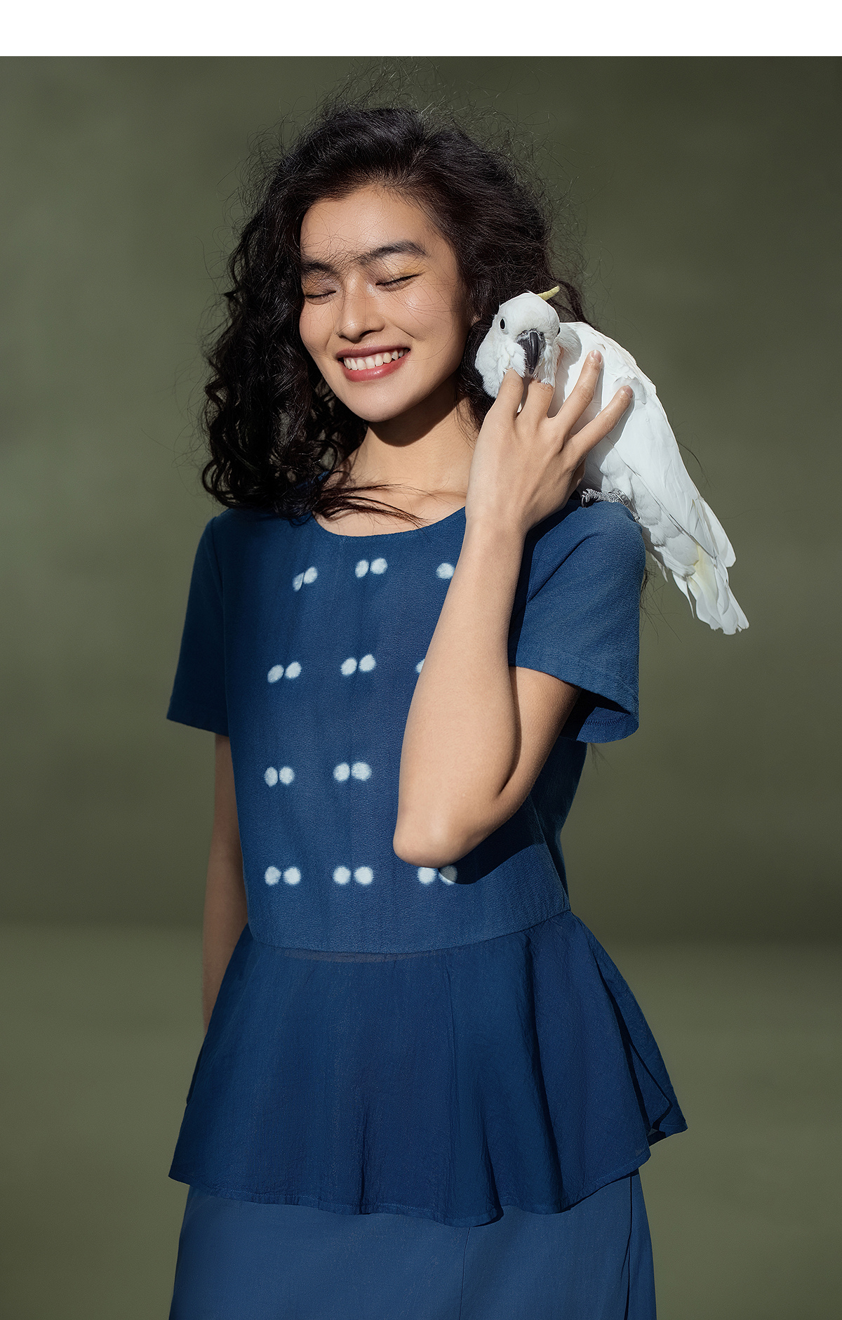 【林栖设计小店】植物染色|手工植物蓝萤虫绞婴儿棉荷叶边2026夏新款T恤1962022