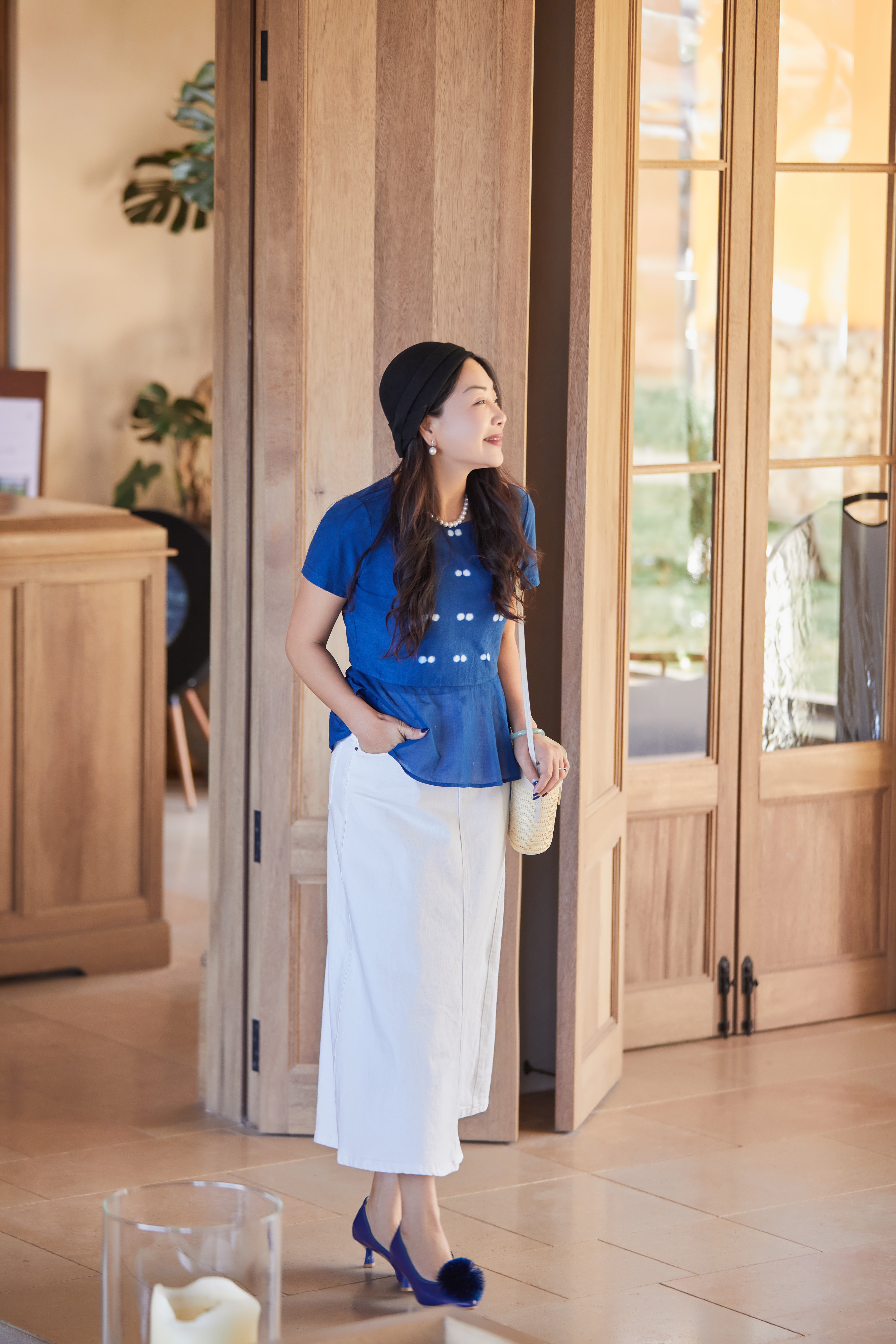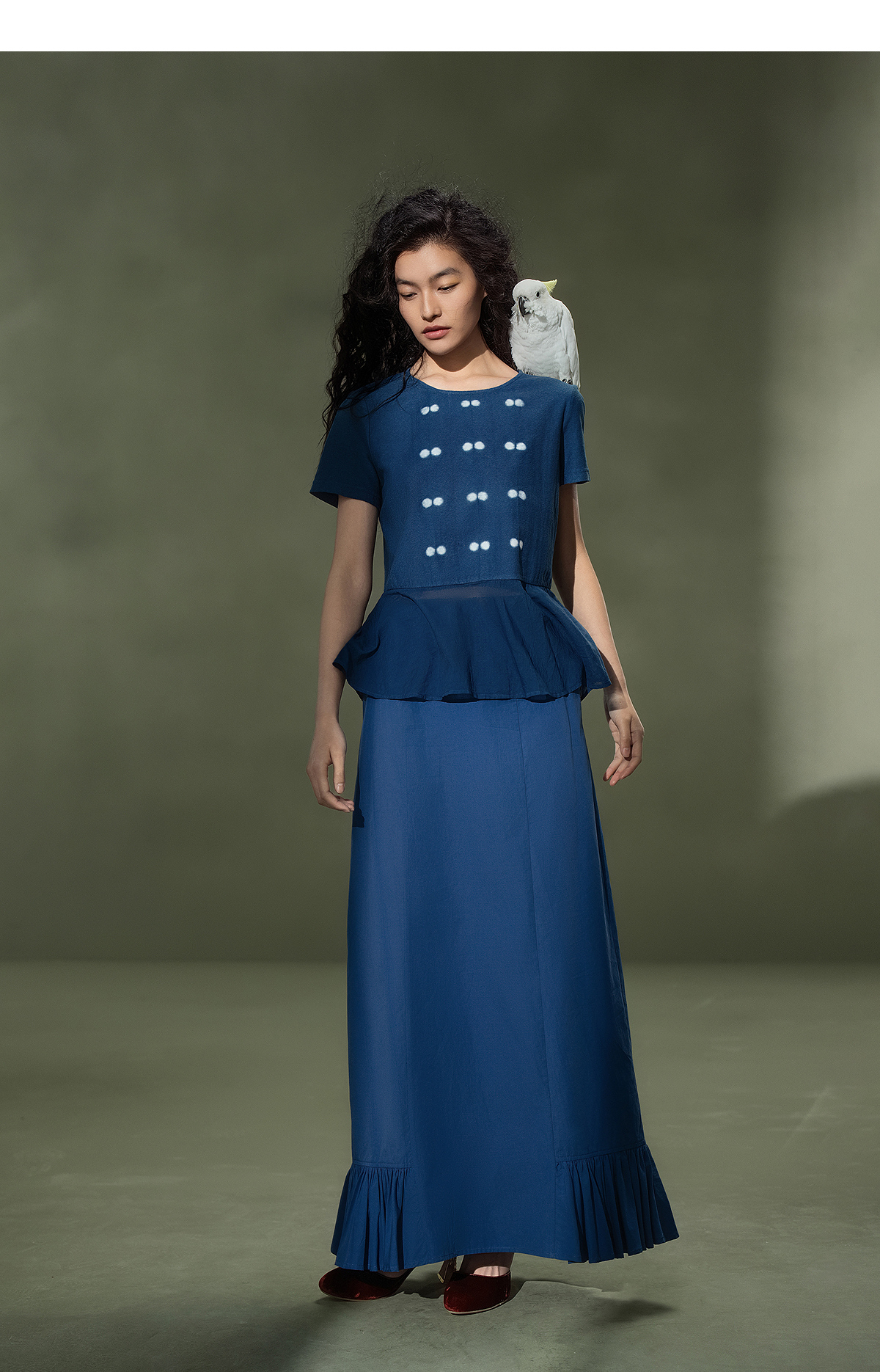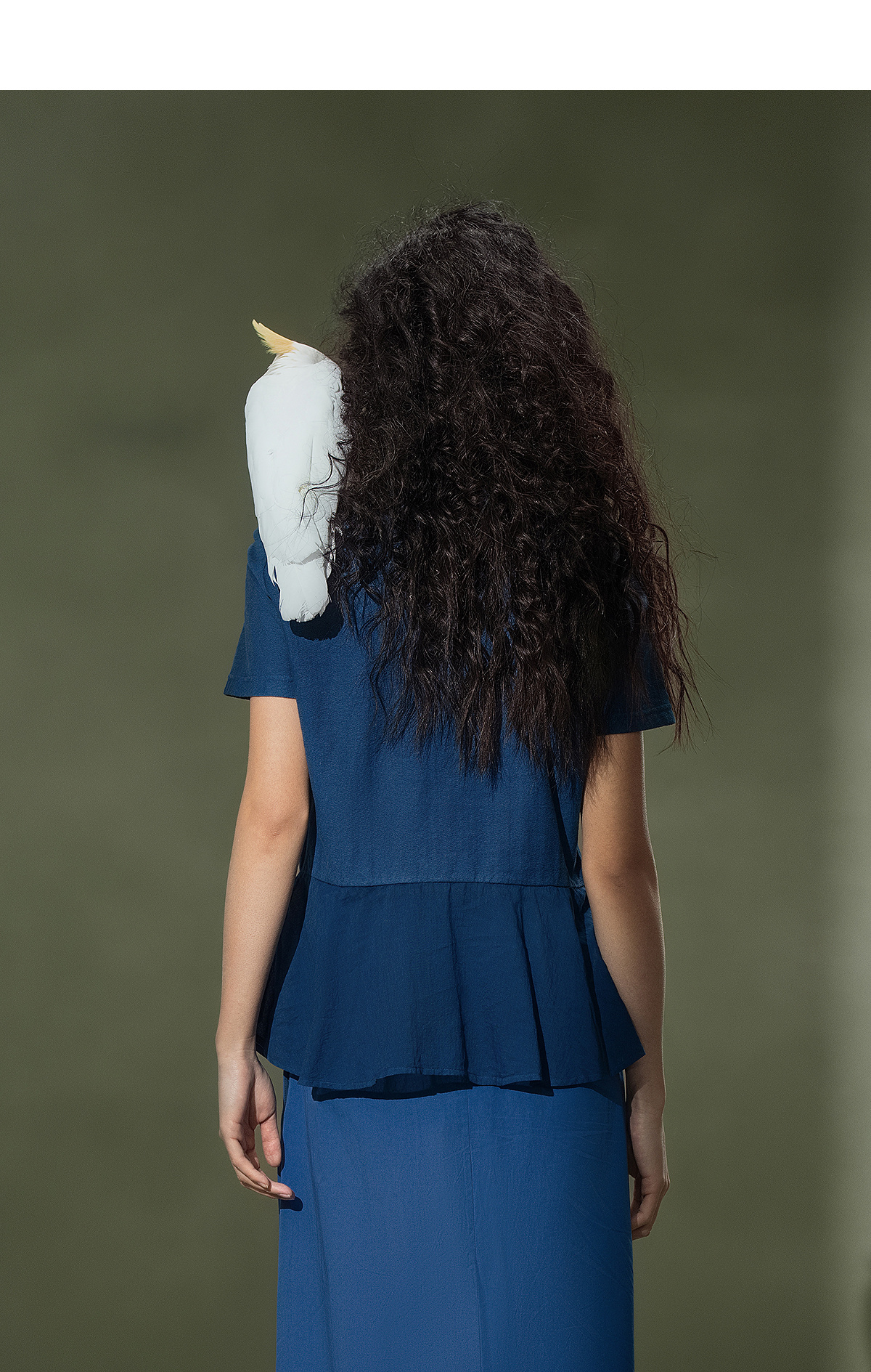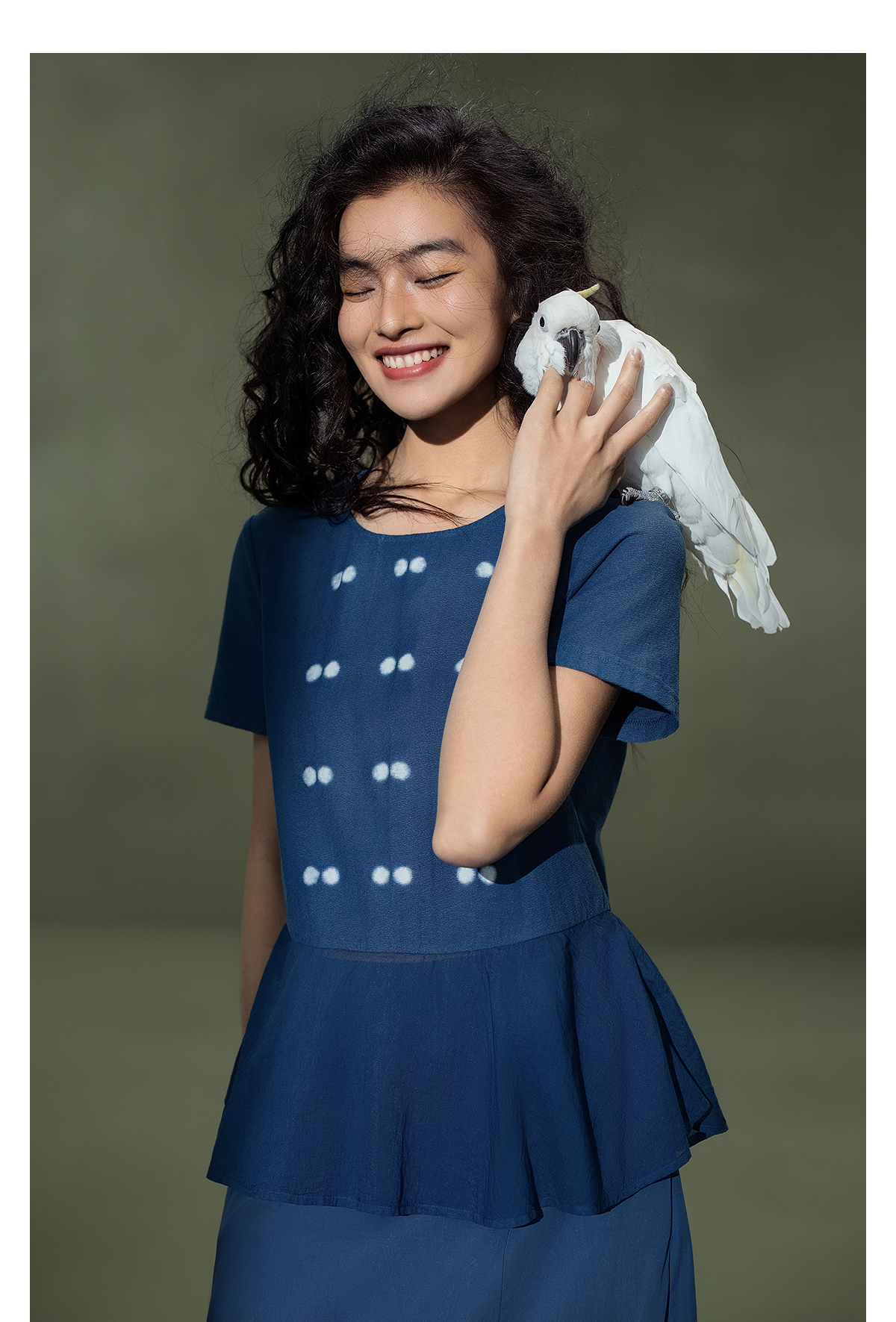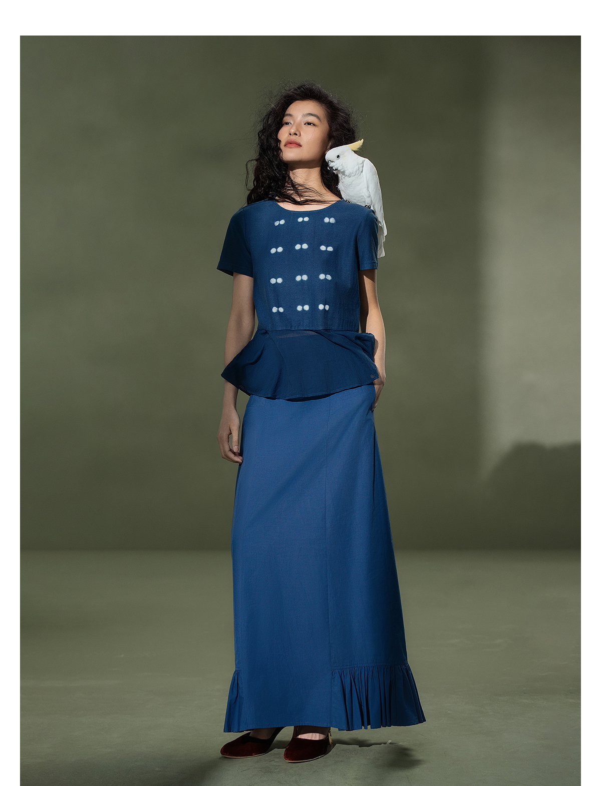 【林栖设计小店】植物染色|手工植物蓝萤虫绞婴儿棉荷叶边2026夏新款T恤1962022