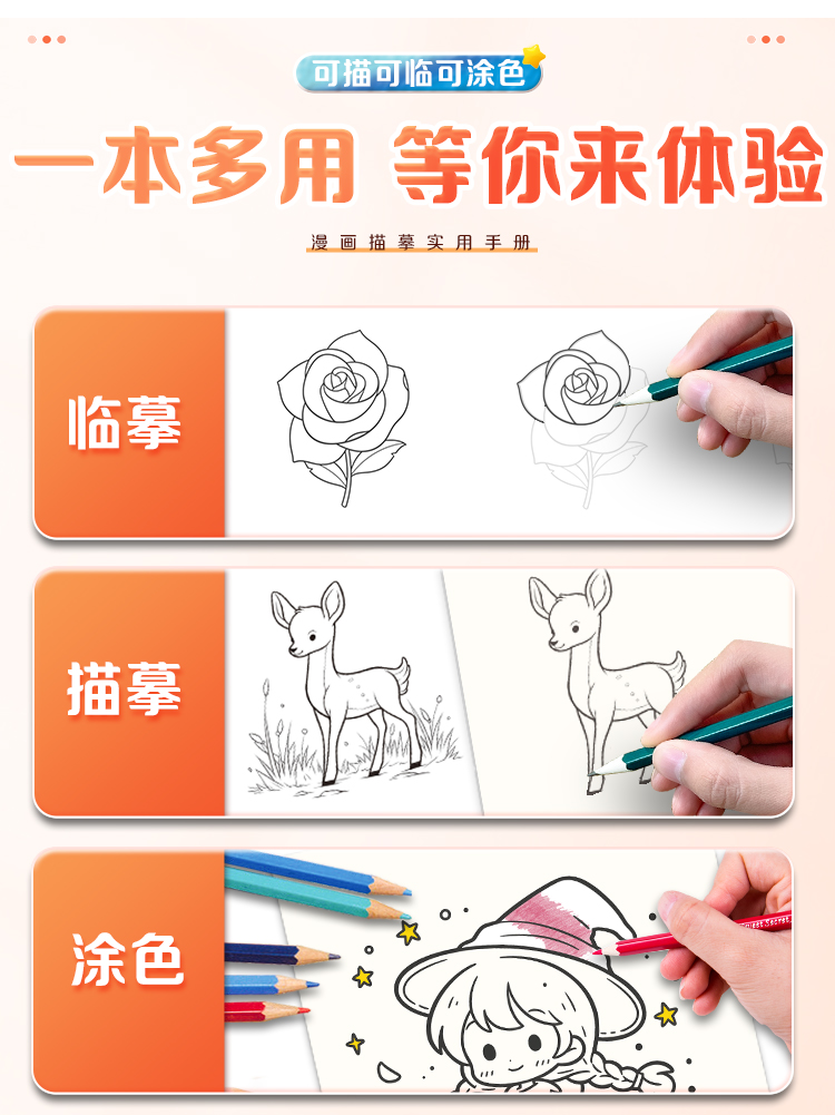 墨点美术 漫画描摹实用手册 全套10册可选手绘动漫古风练习新手入门零基础