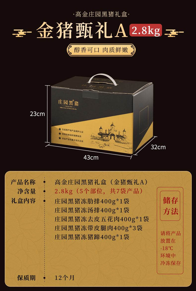 庄园黑猪金猪甄礼A(488元)【分仓直发,72小时发货,周末节假日不发货】